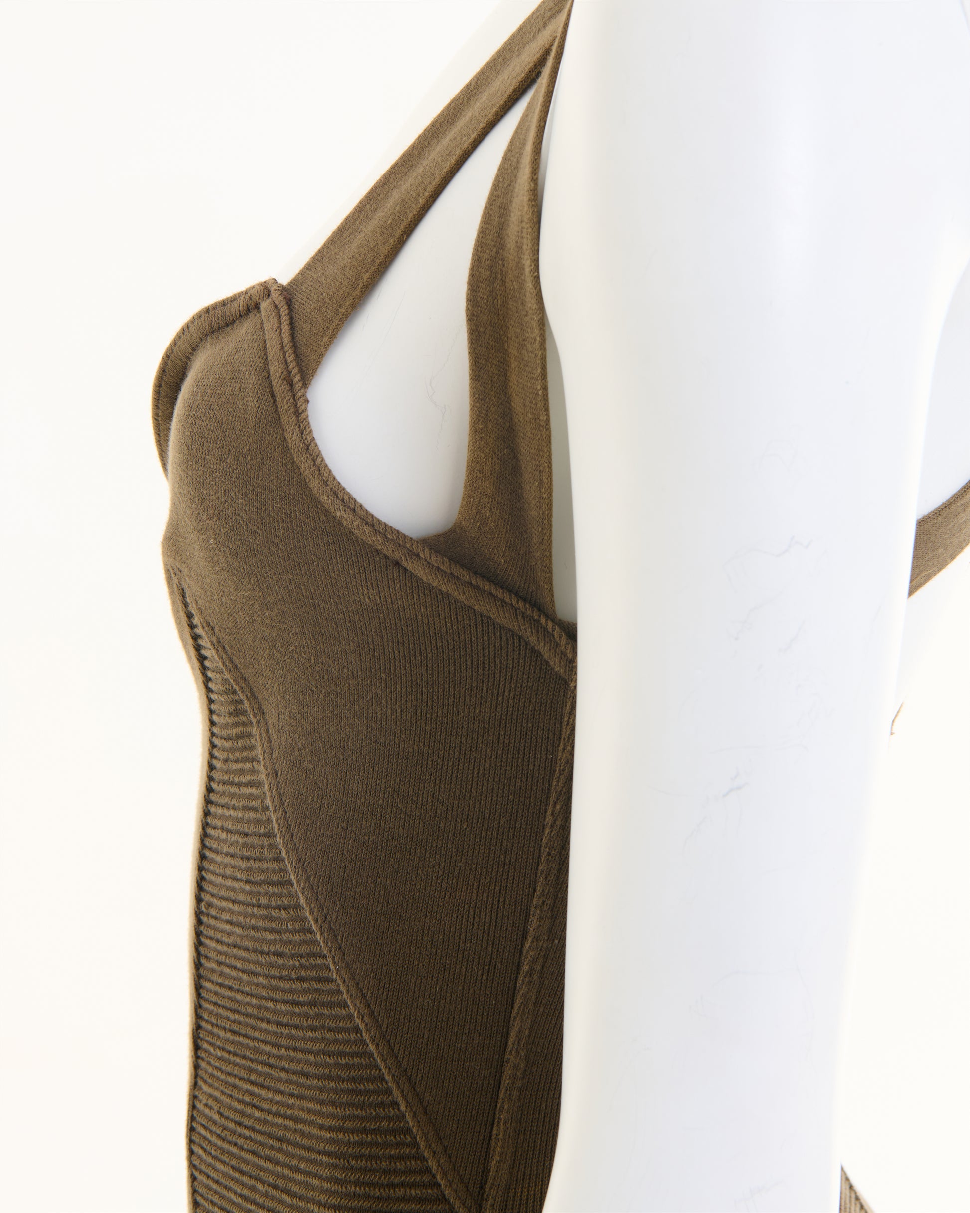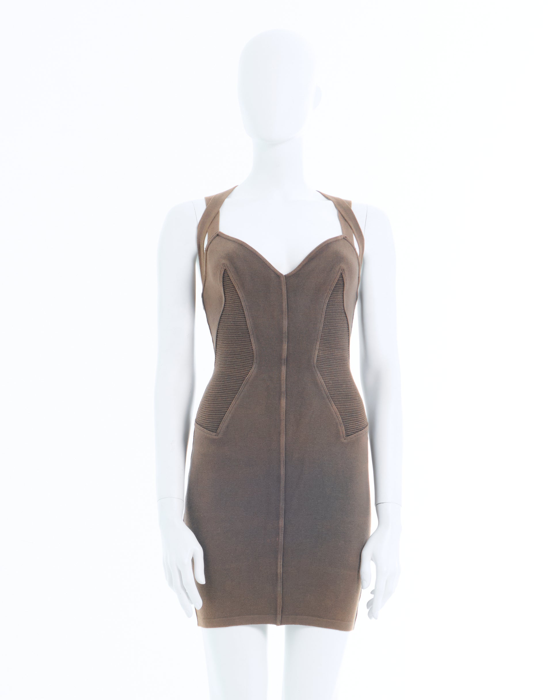 - Features a figure-hugging silhouette with sculpted panel detailing