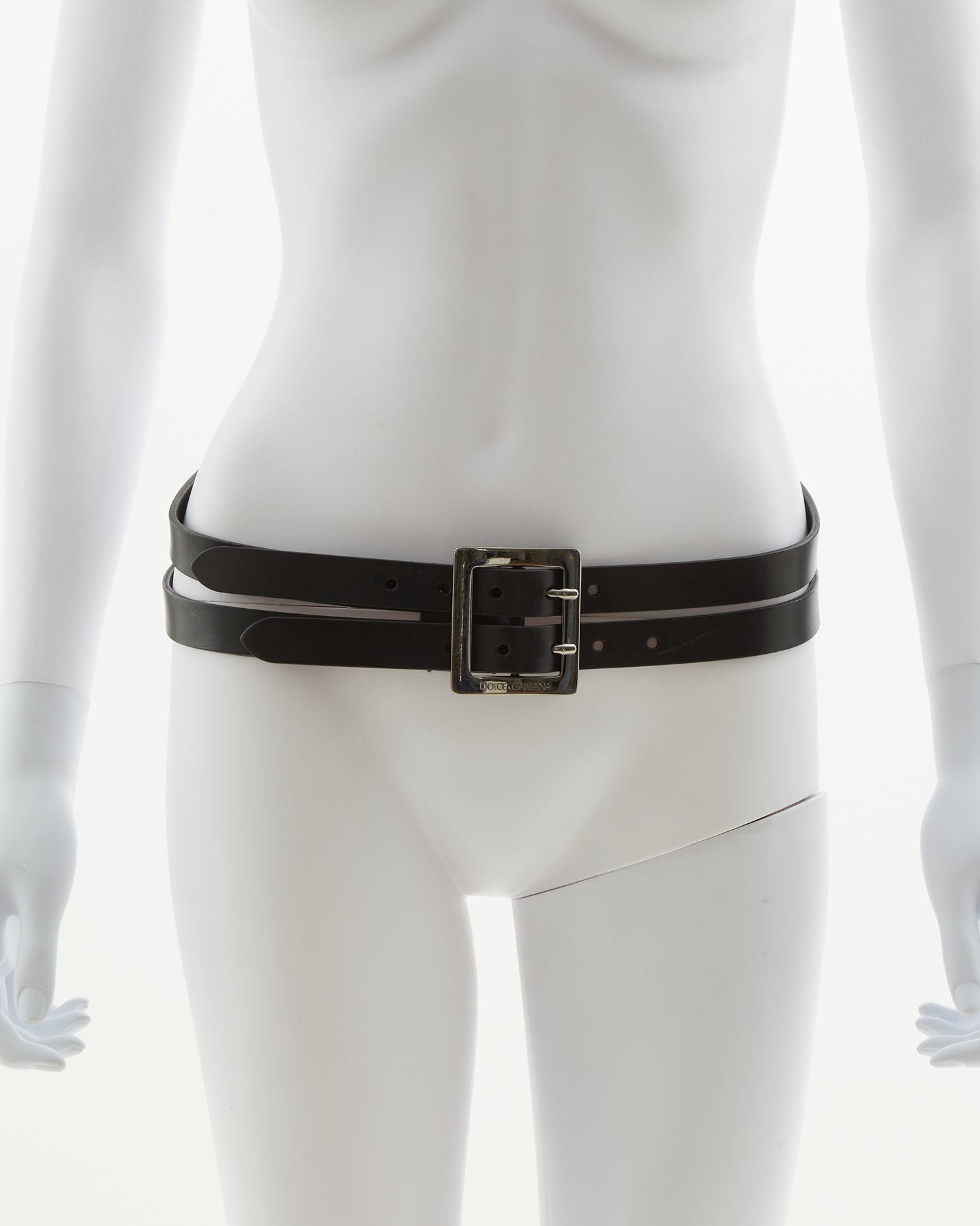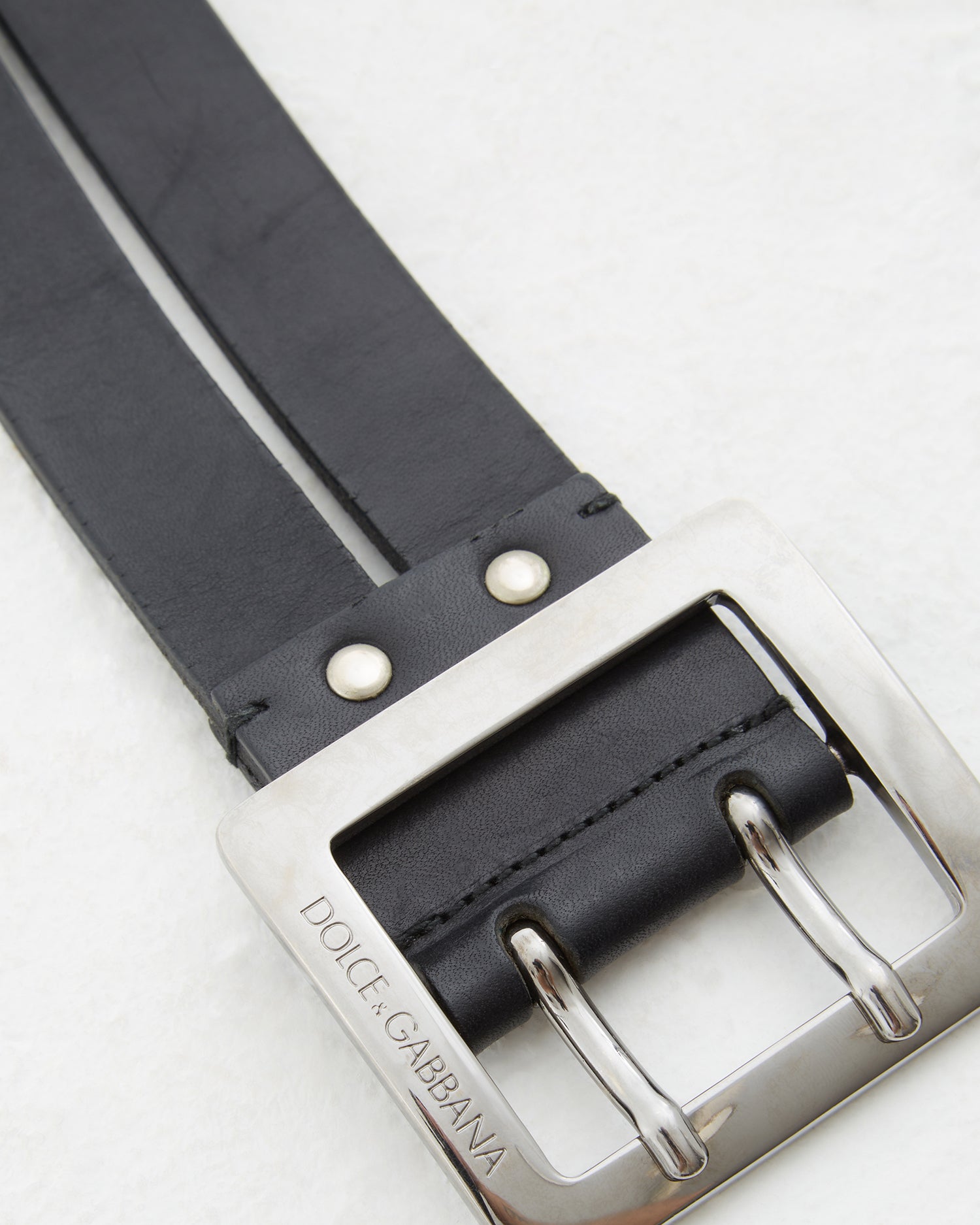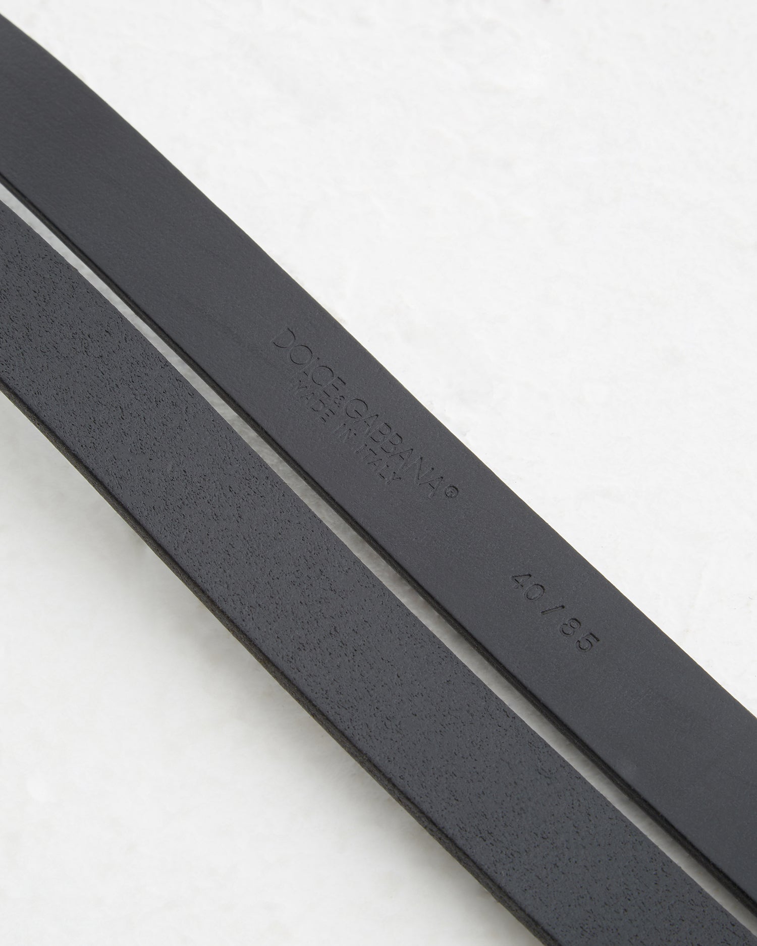 - Silver-tone single buckle closure with “Dolce & Gabbana” logo engraved