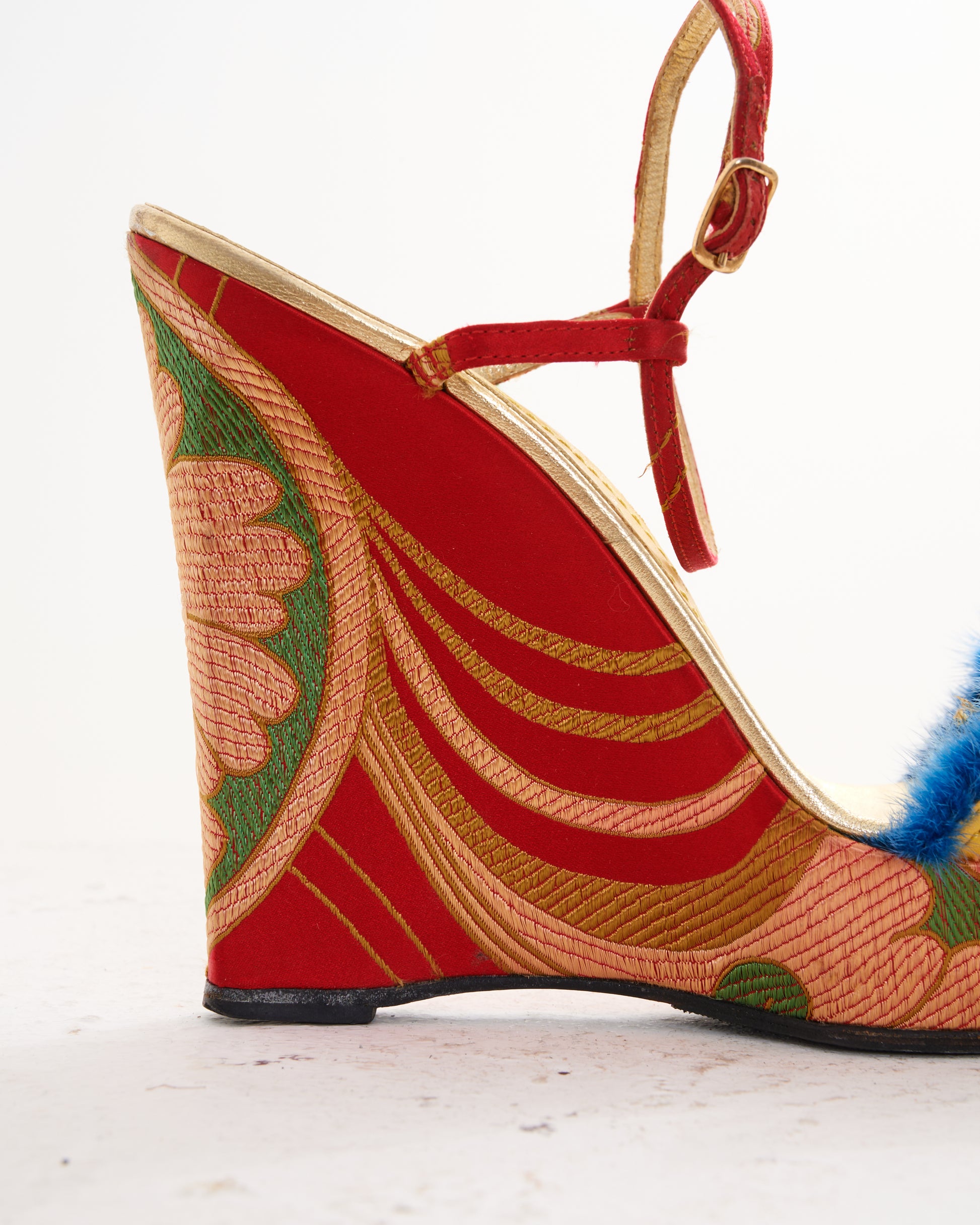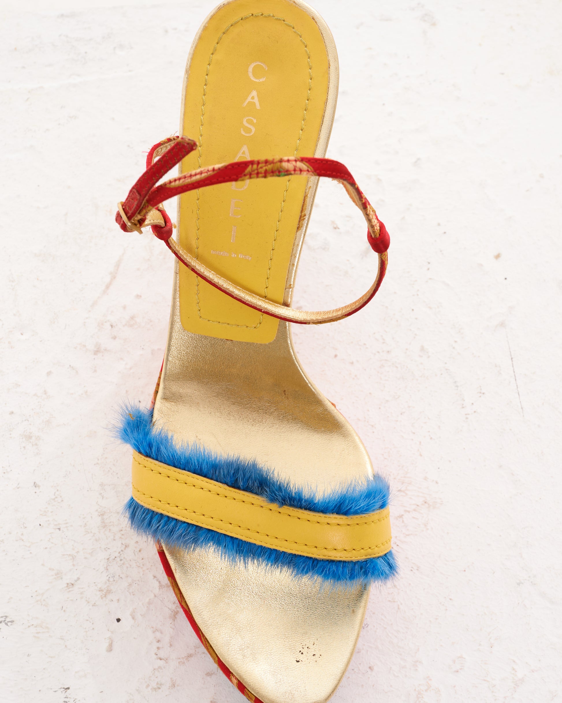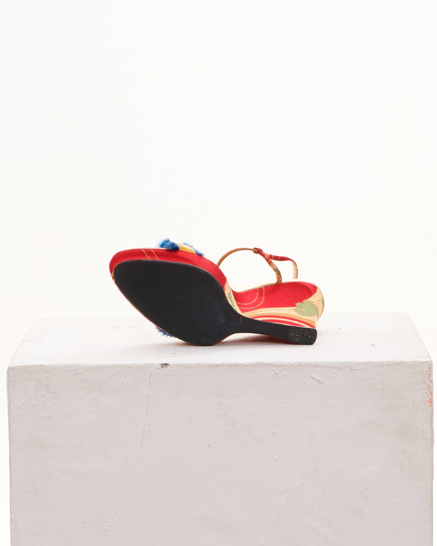 - Adjustable ankle strap with a buckle closure