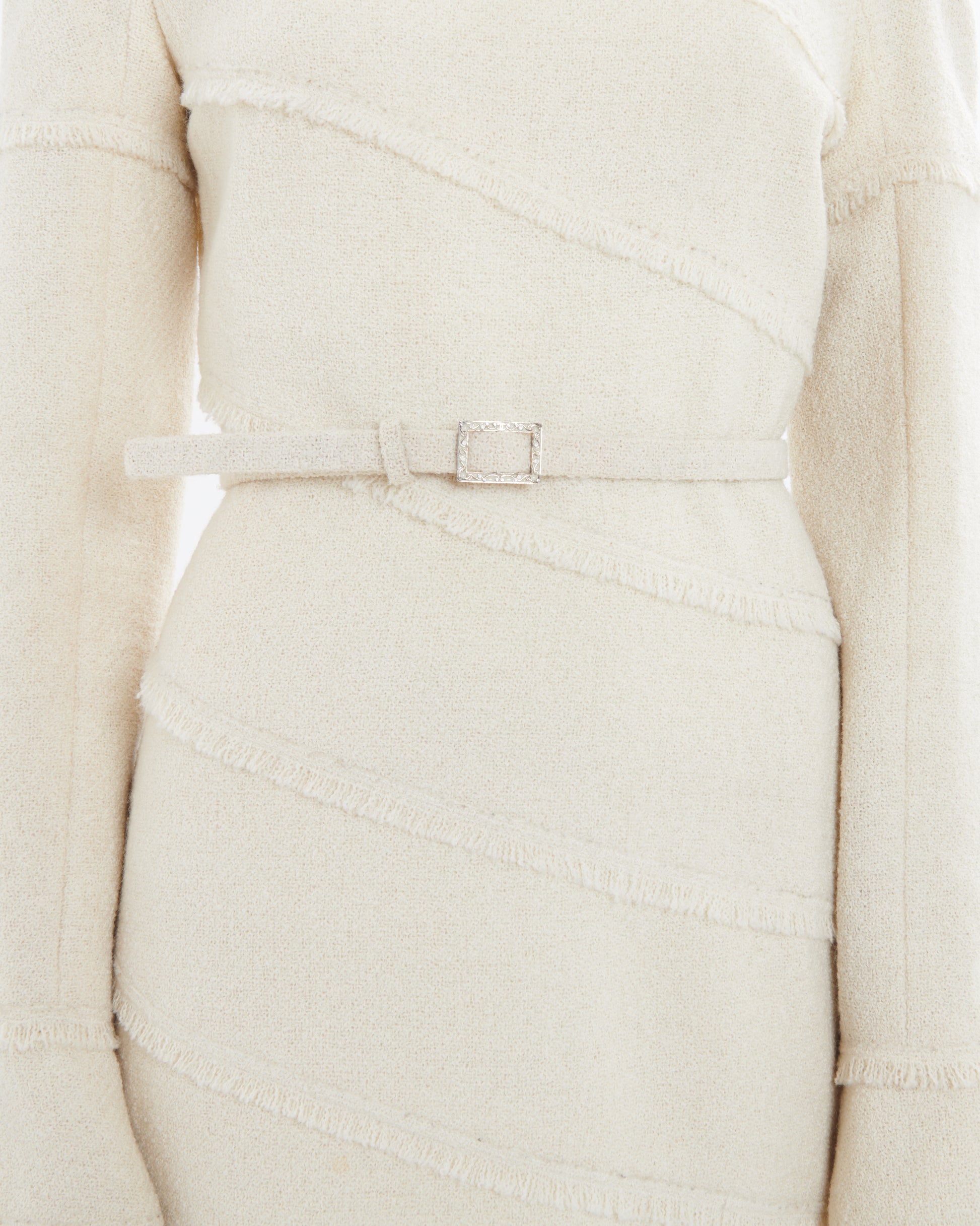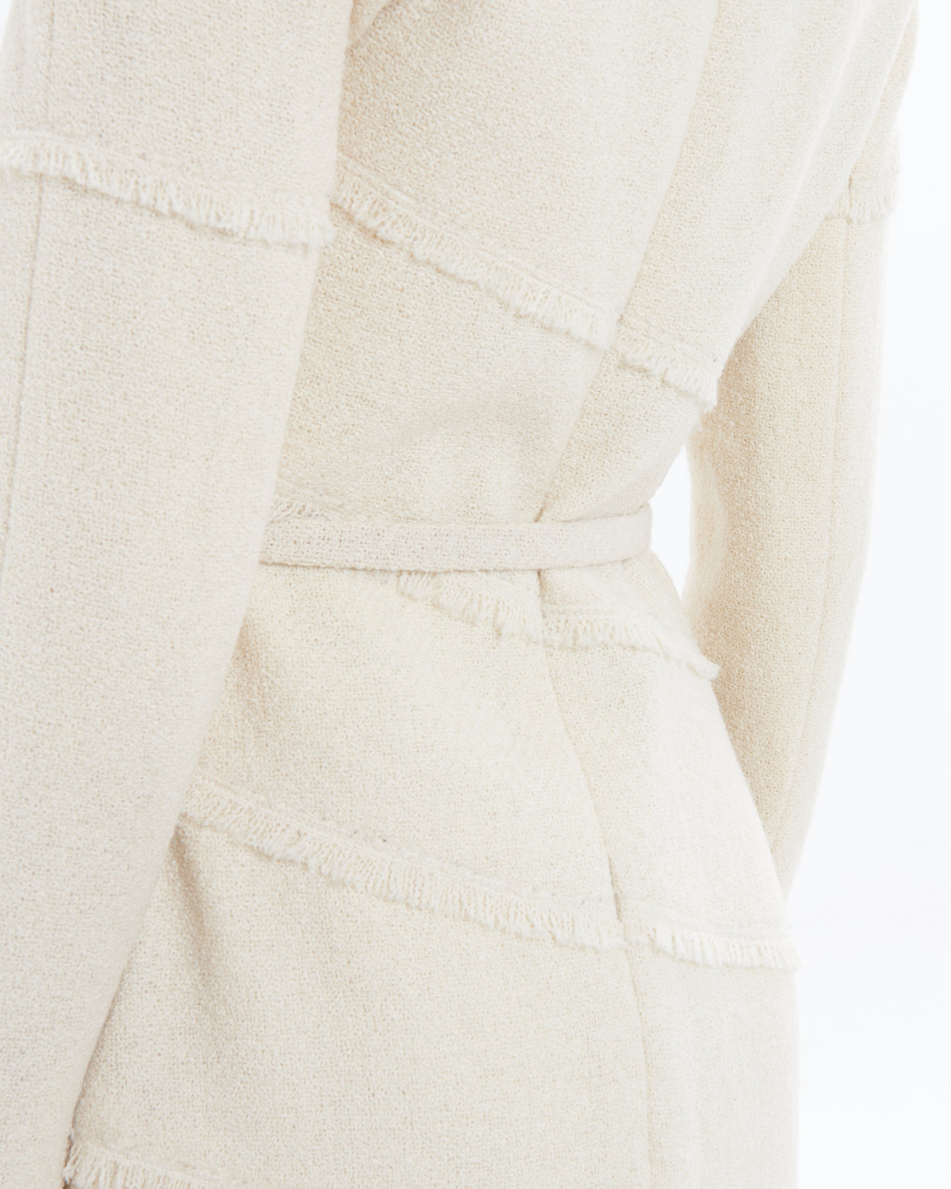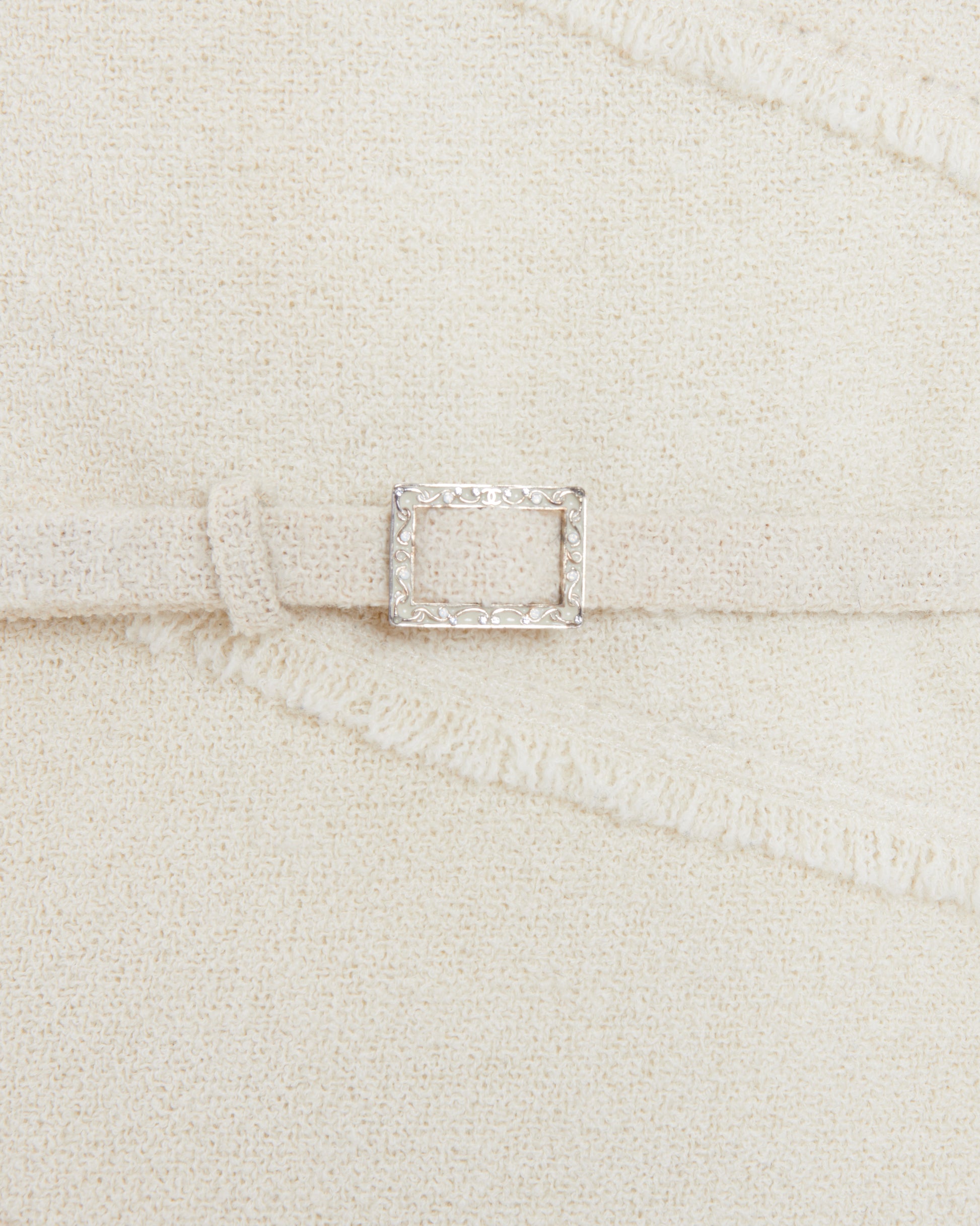 - Crafted from fringe white tweed