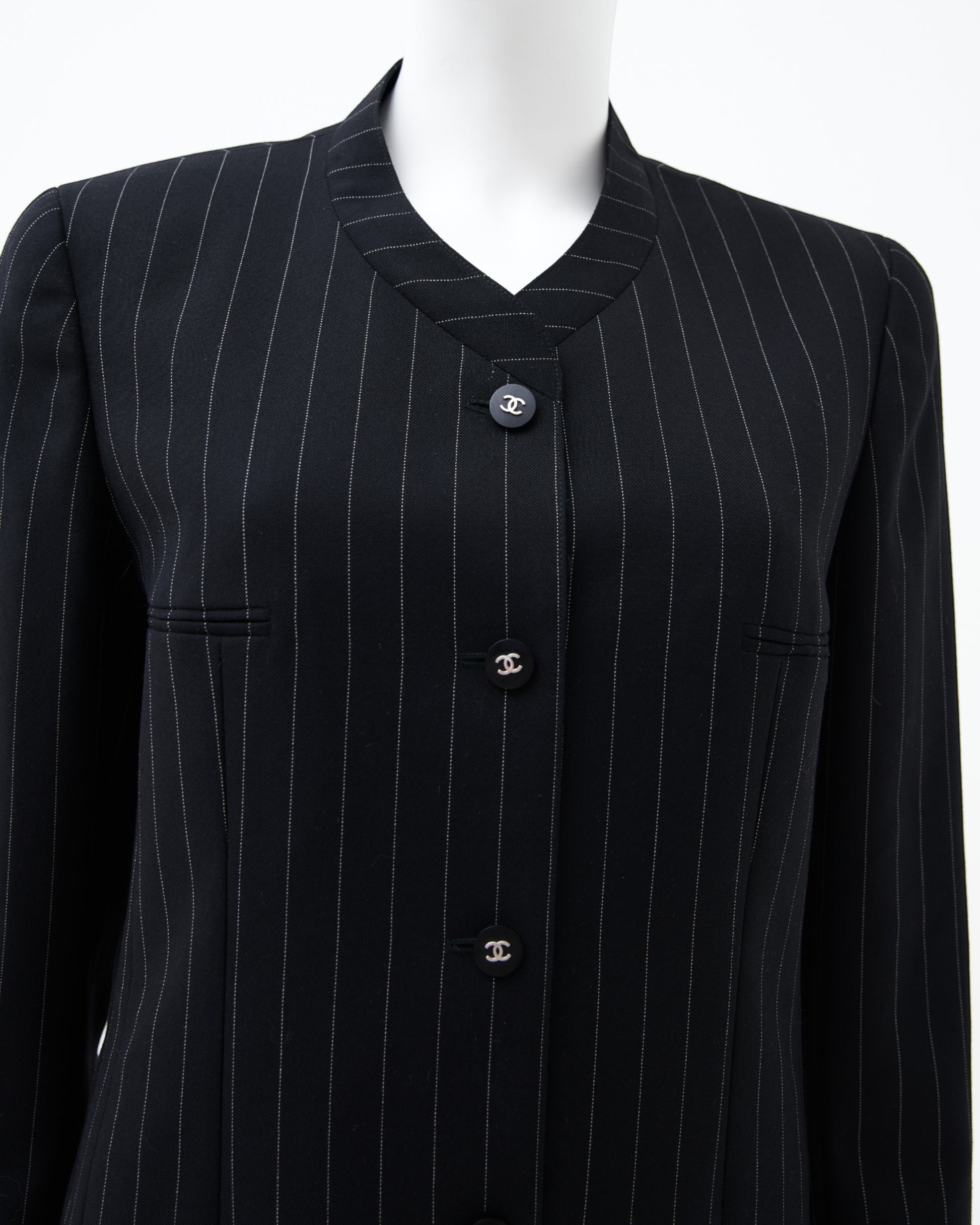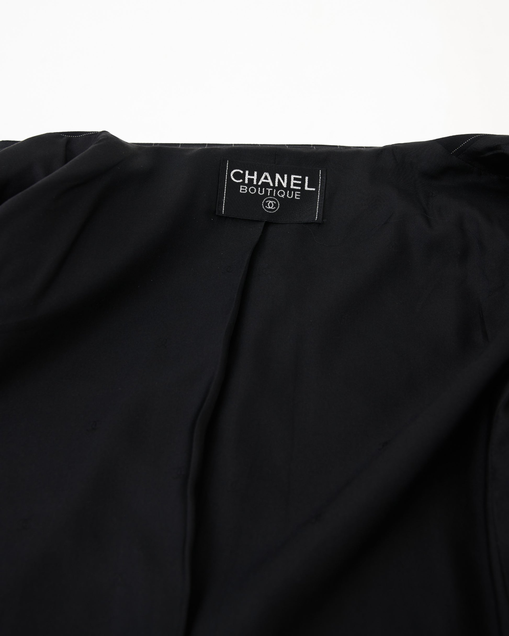 - Front closure buttons featuring the iconic Chanel CC logo emblem