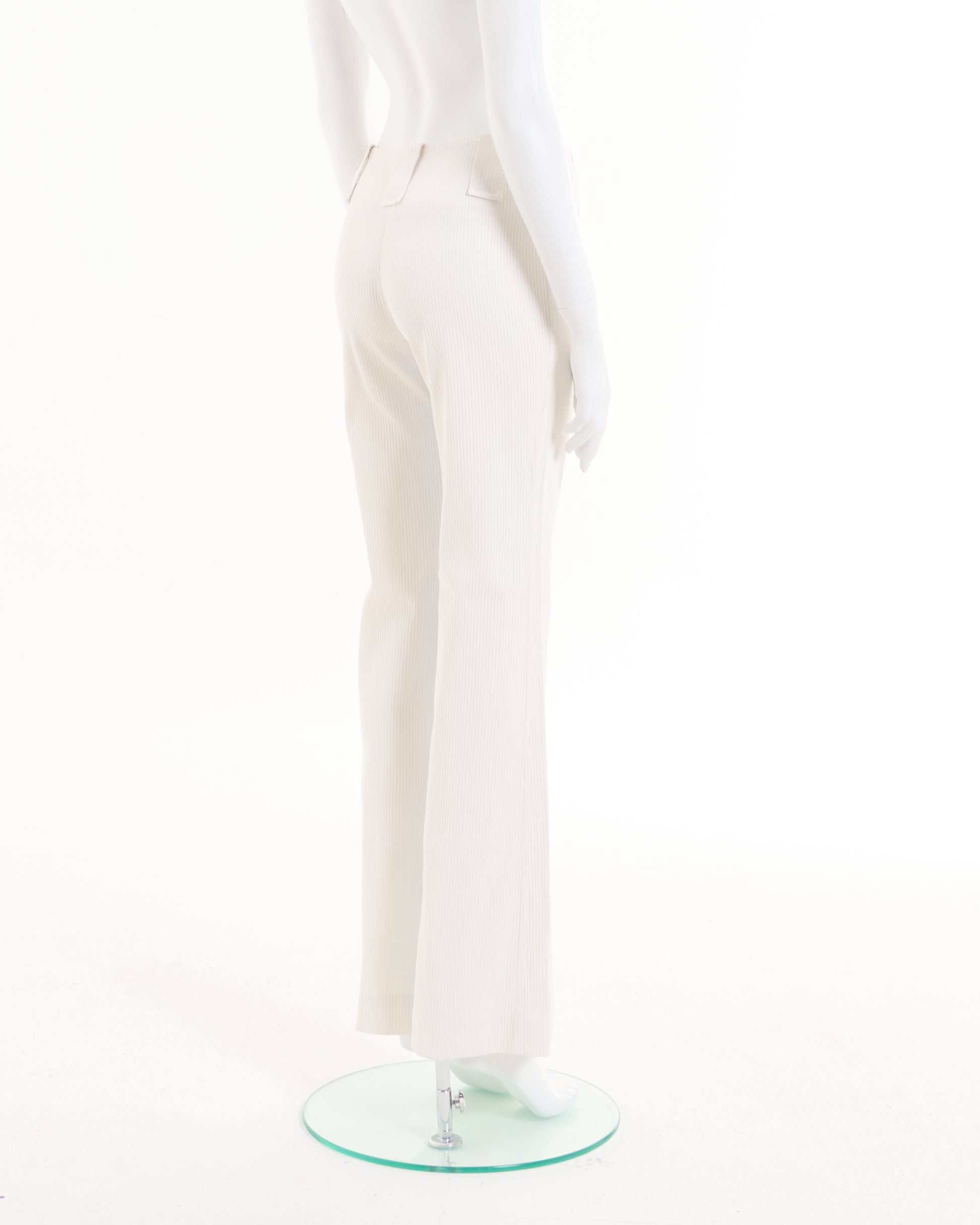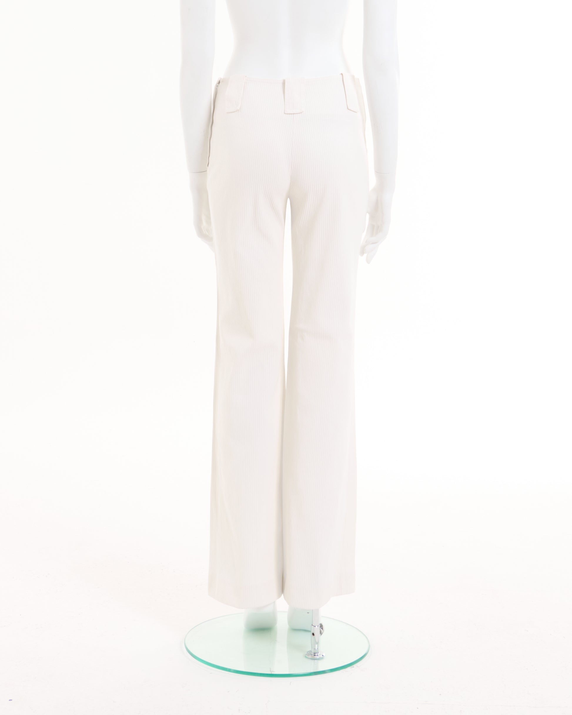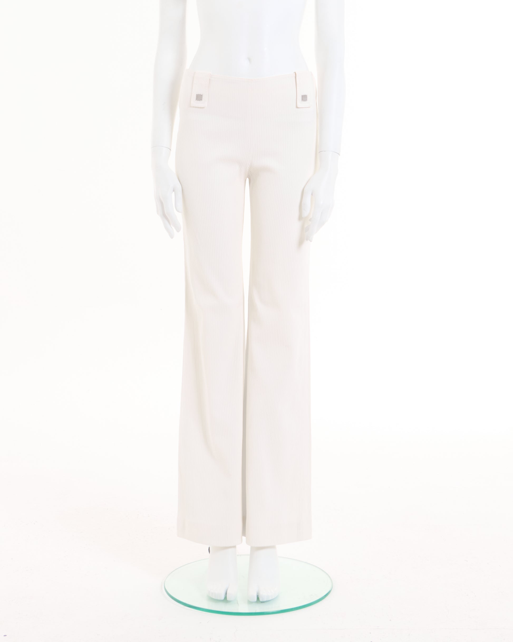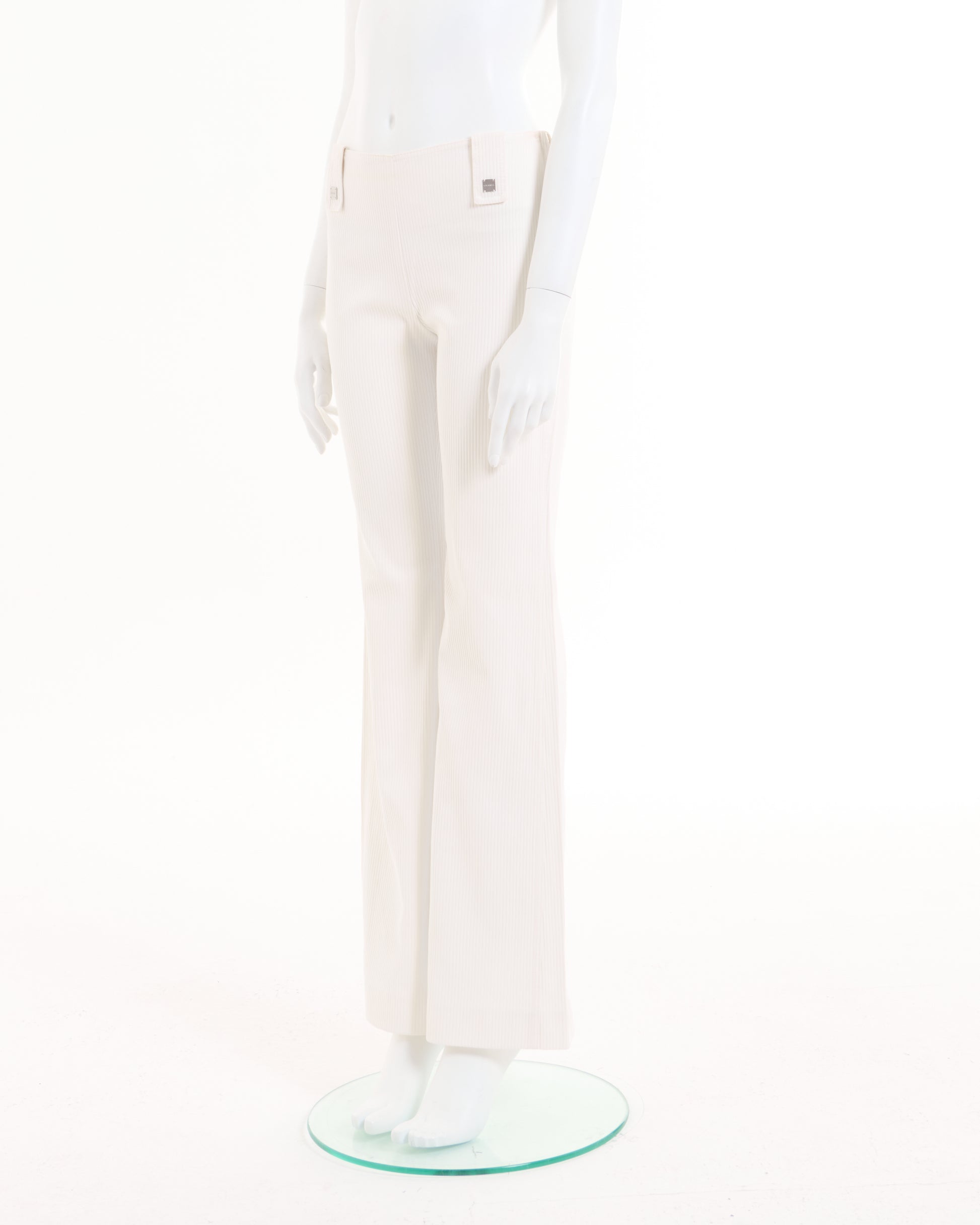 - Chanel White ribbed cotton flare pants