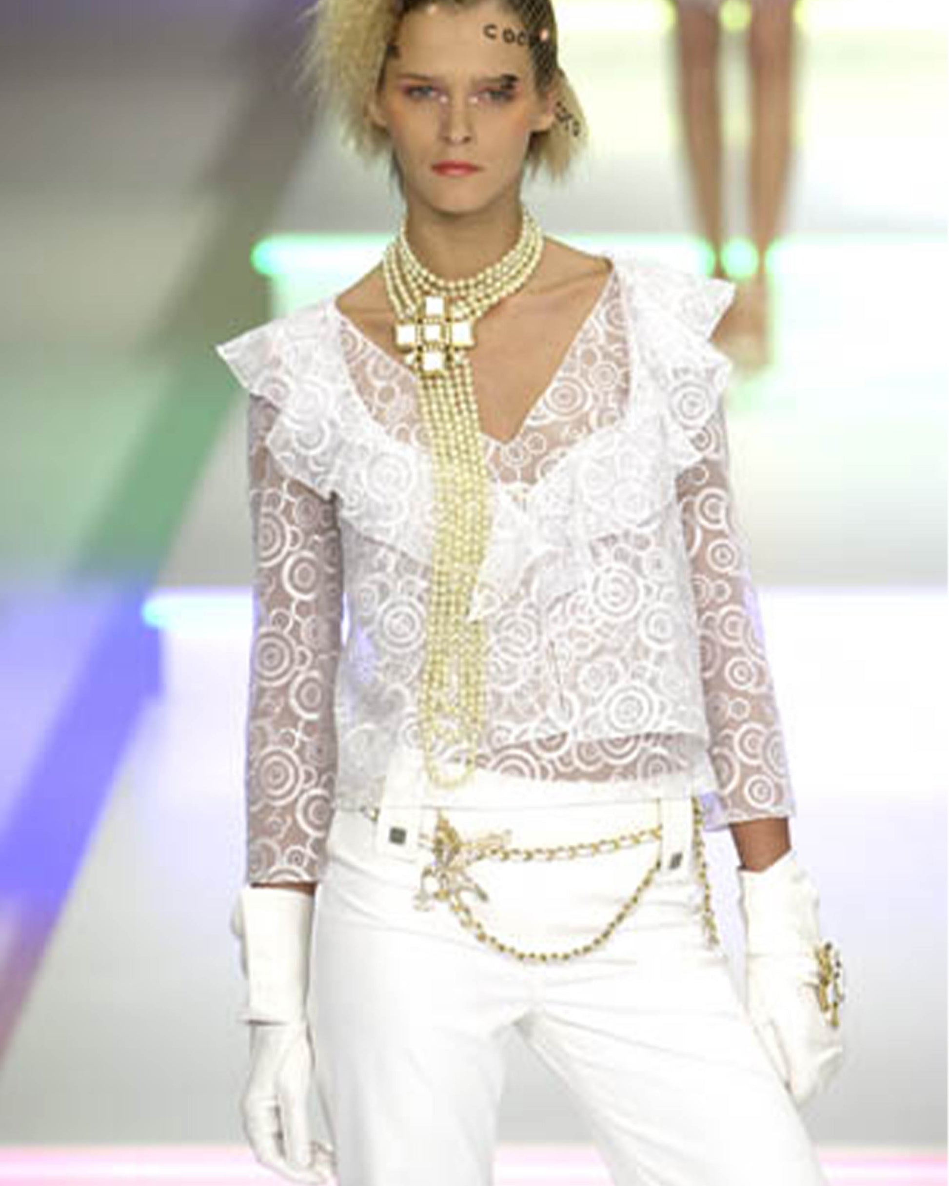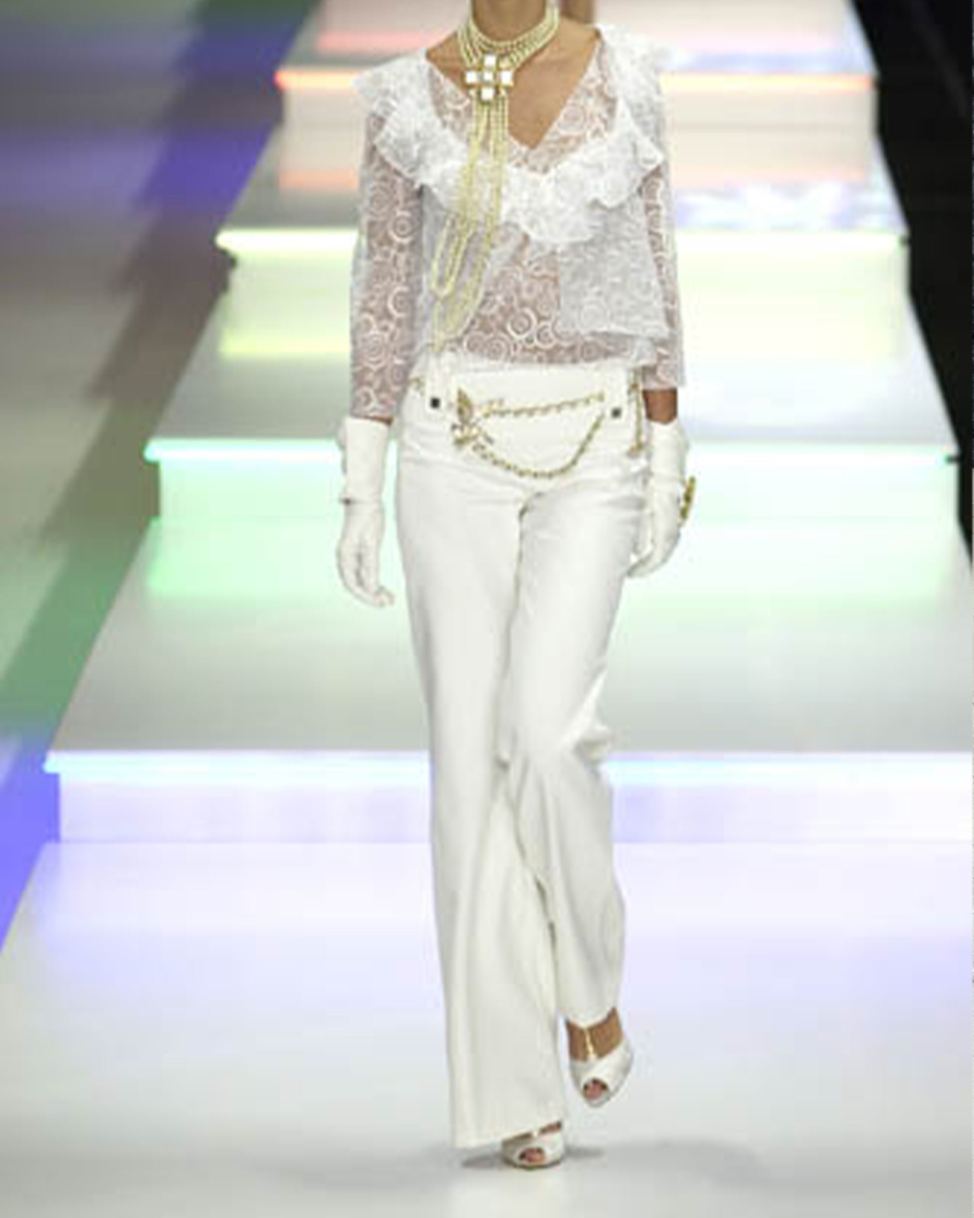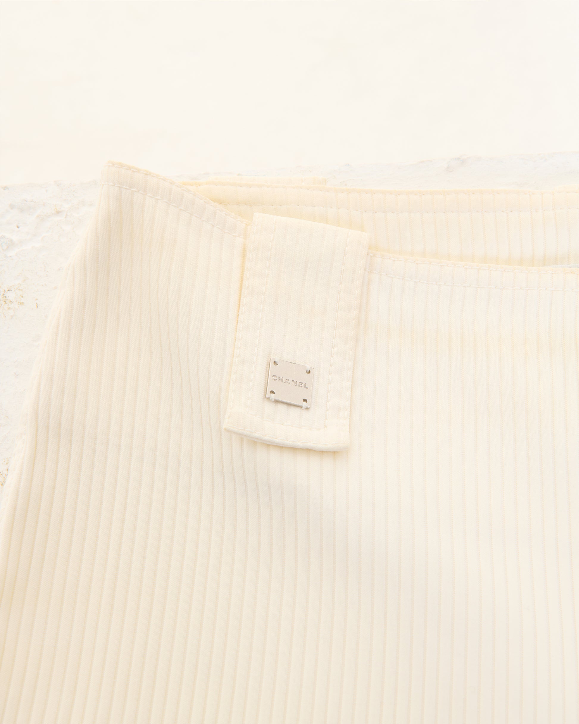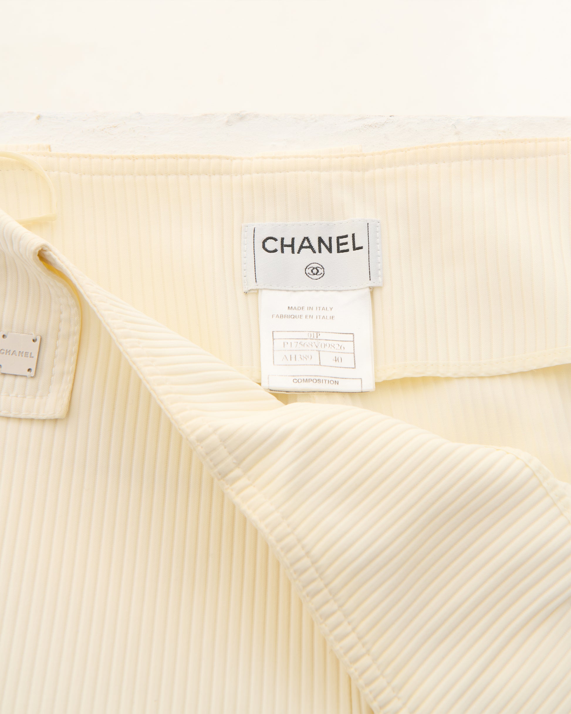 - Chanel White ribbed cotton flare pants