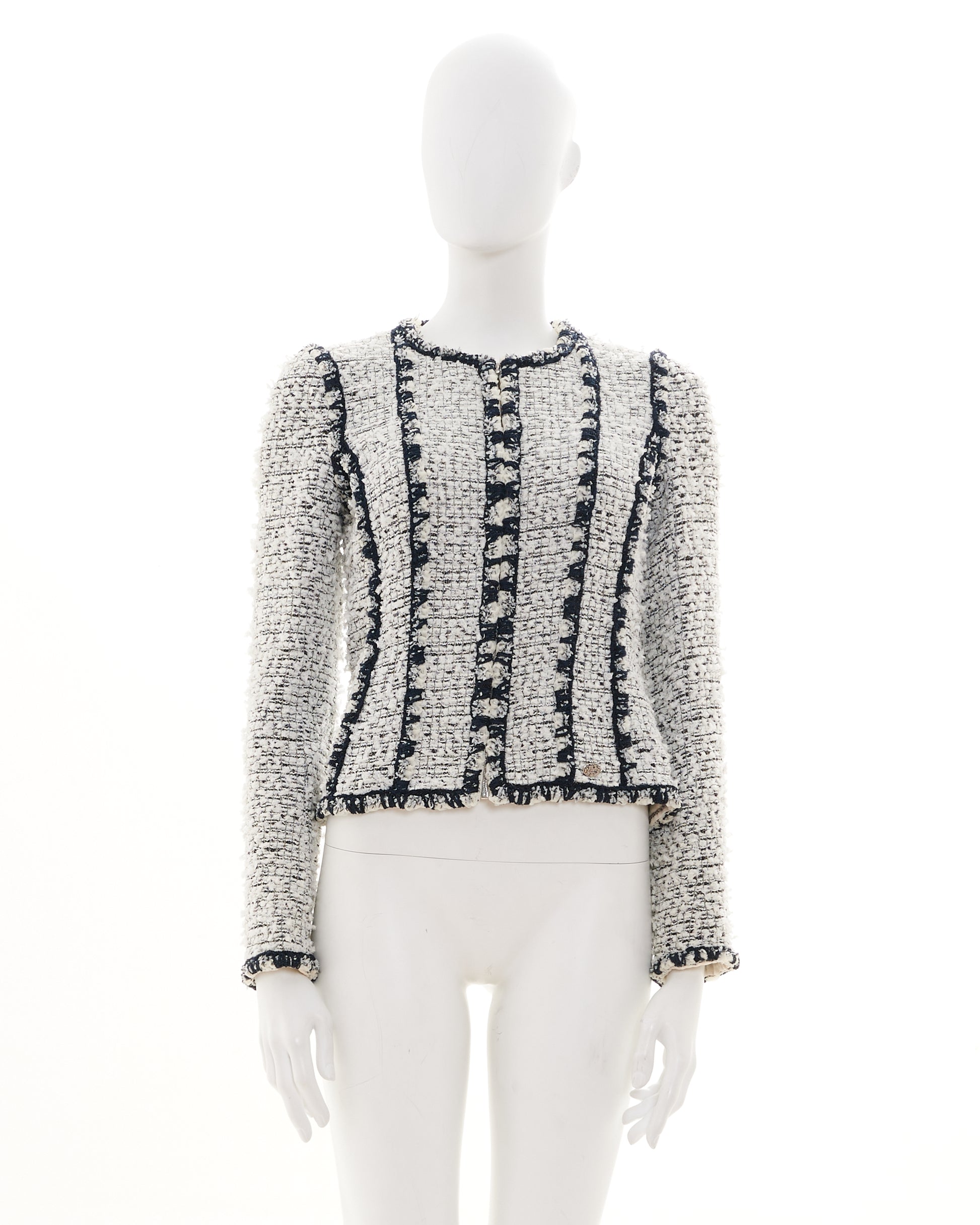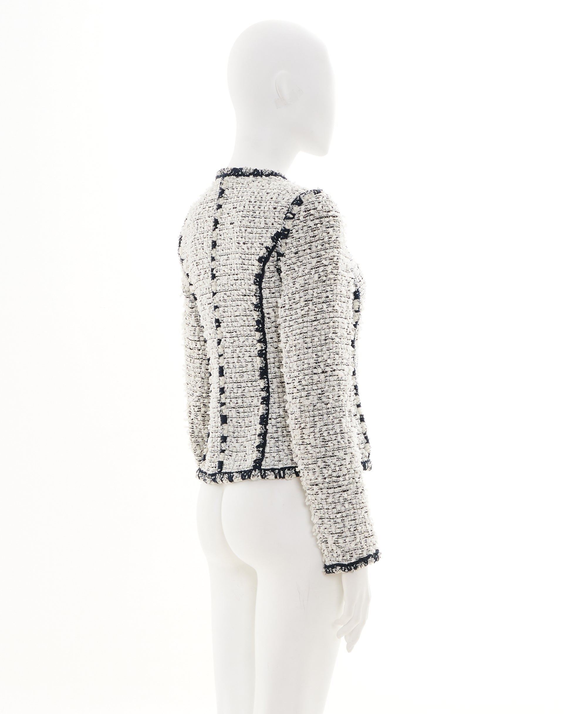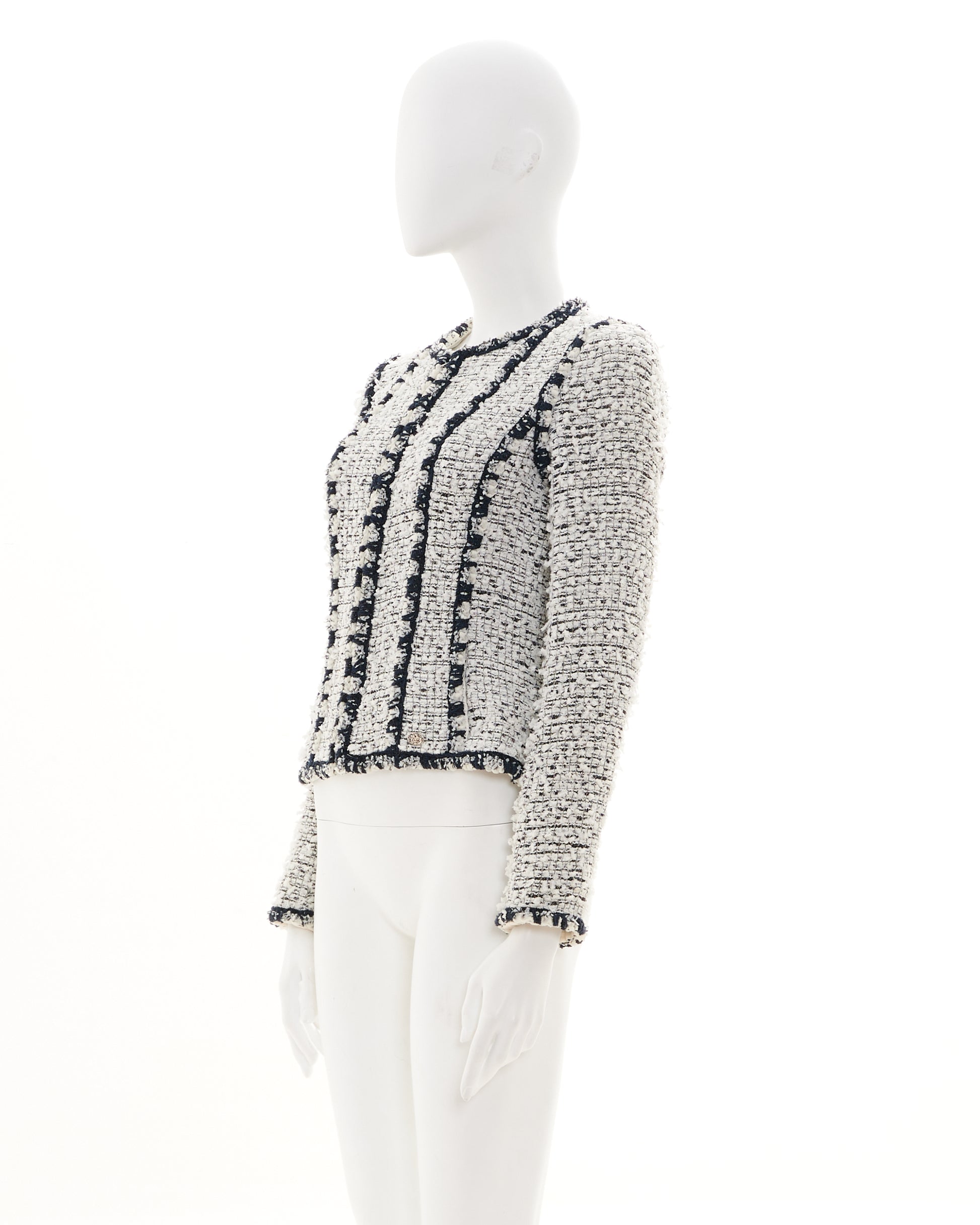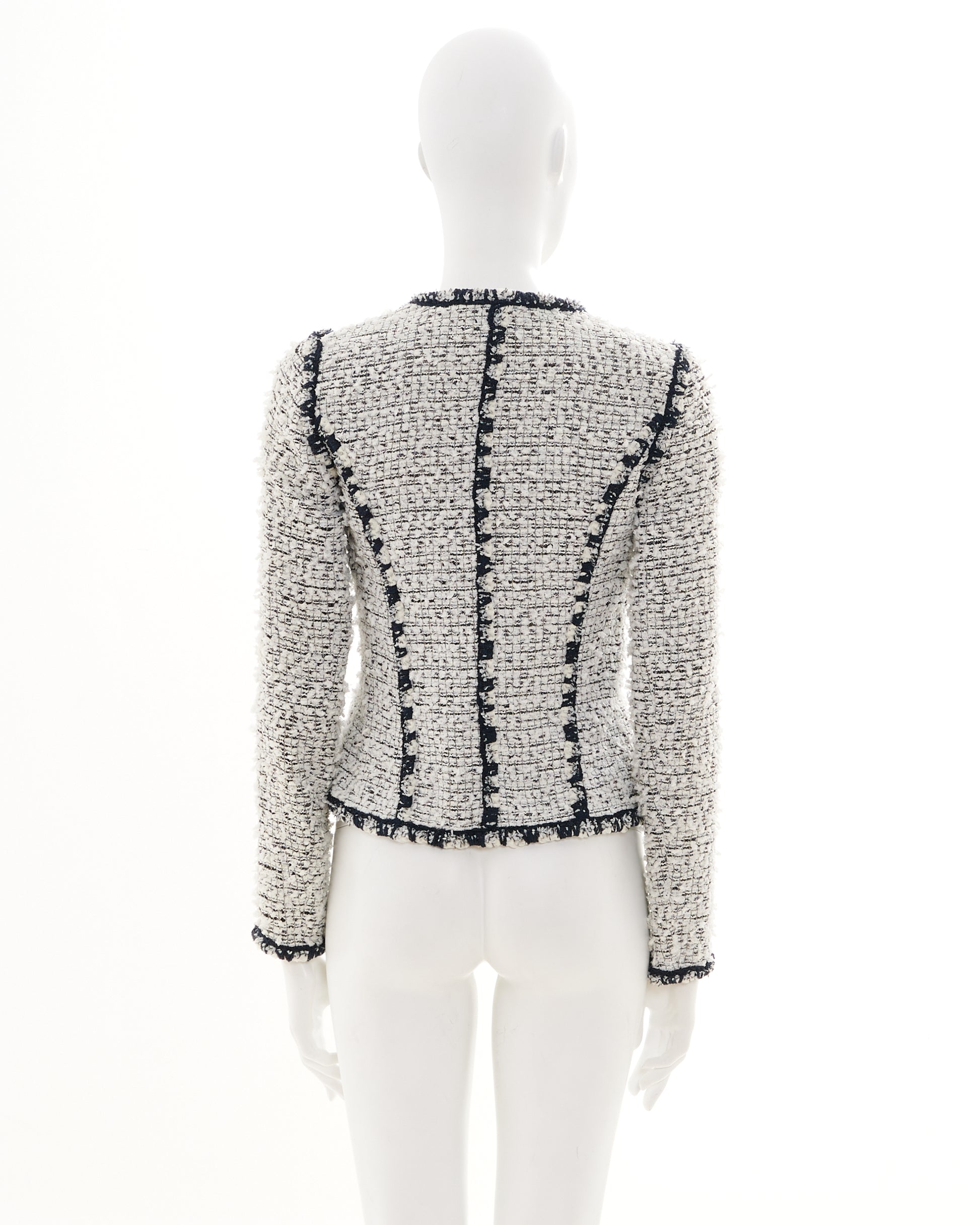 - Black and white tweed striped boucle jacket