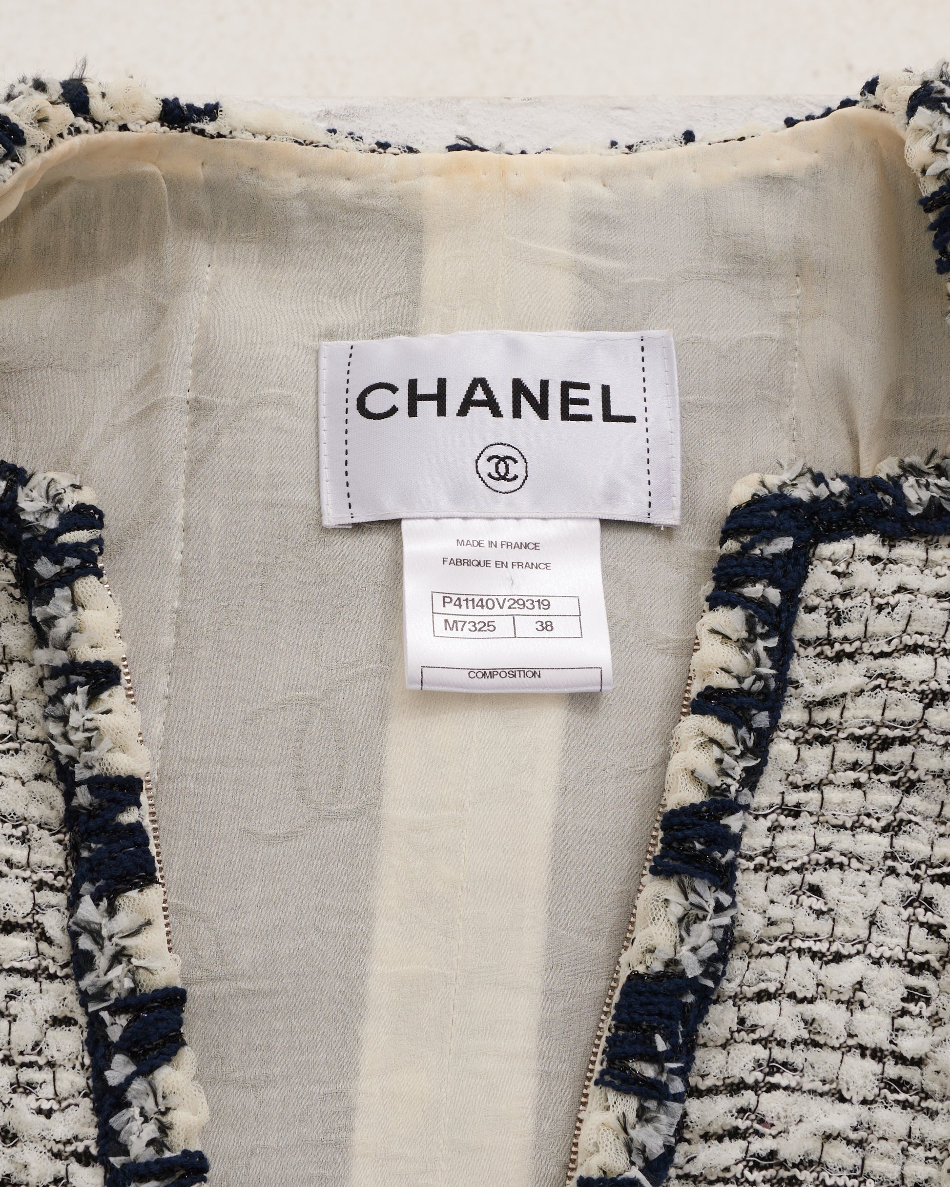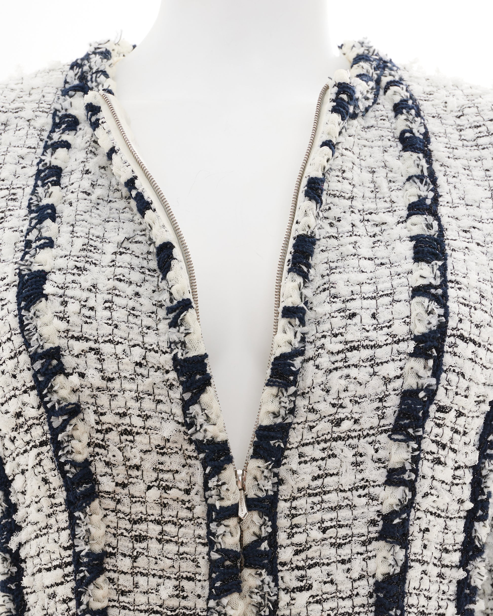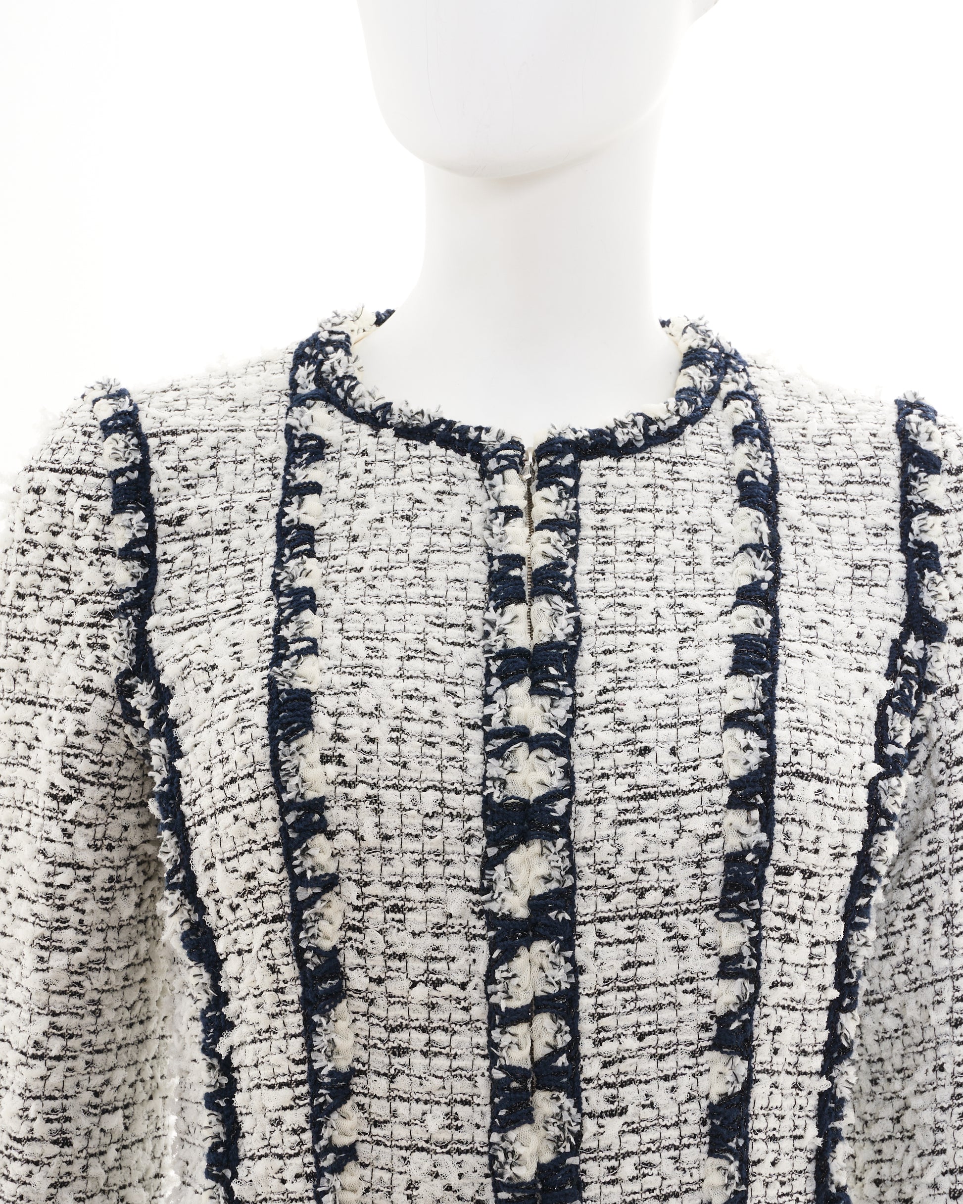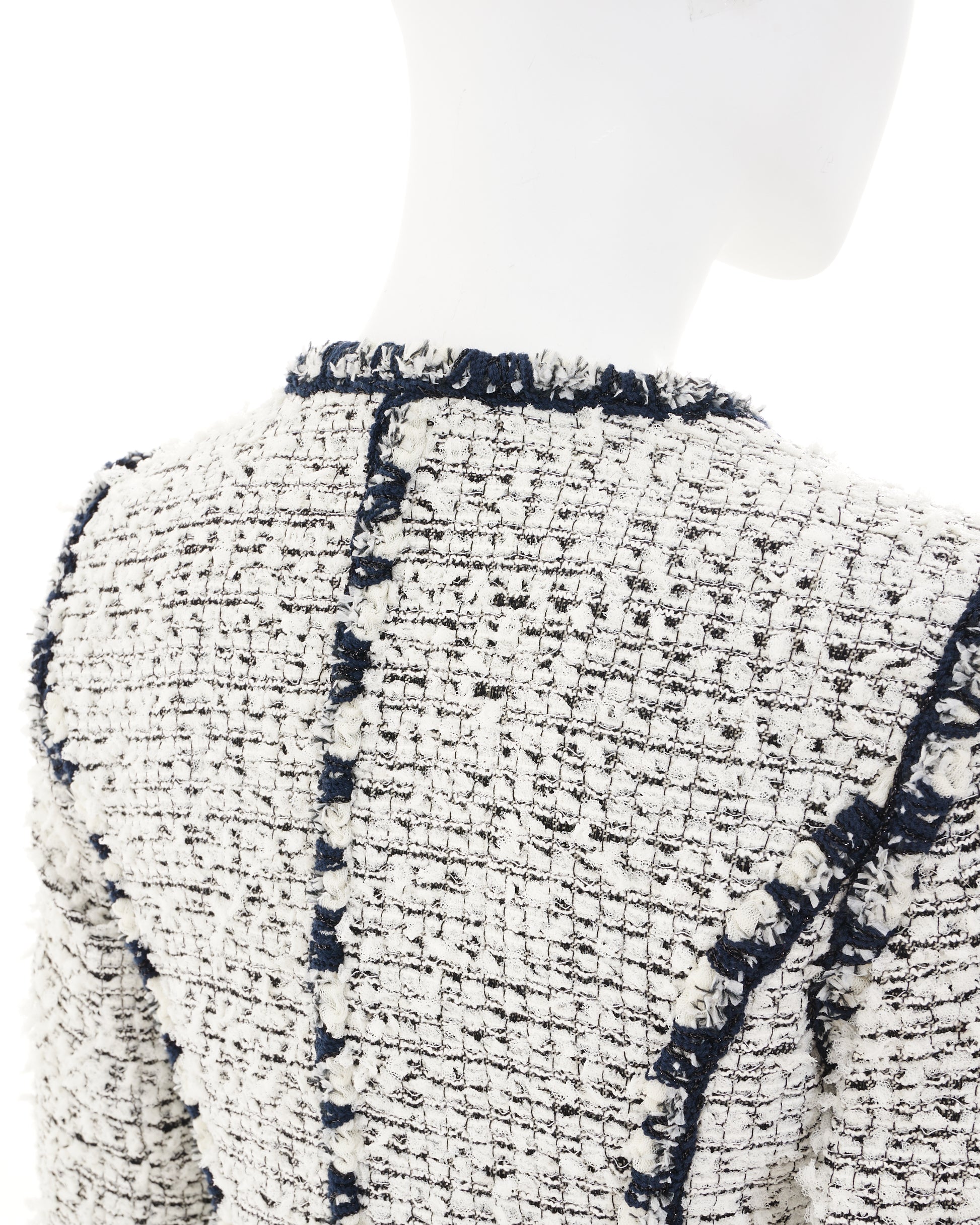 - Black and white tweed striped boucle jacket