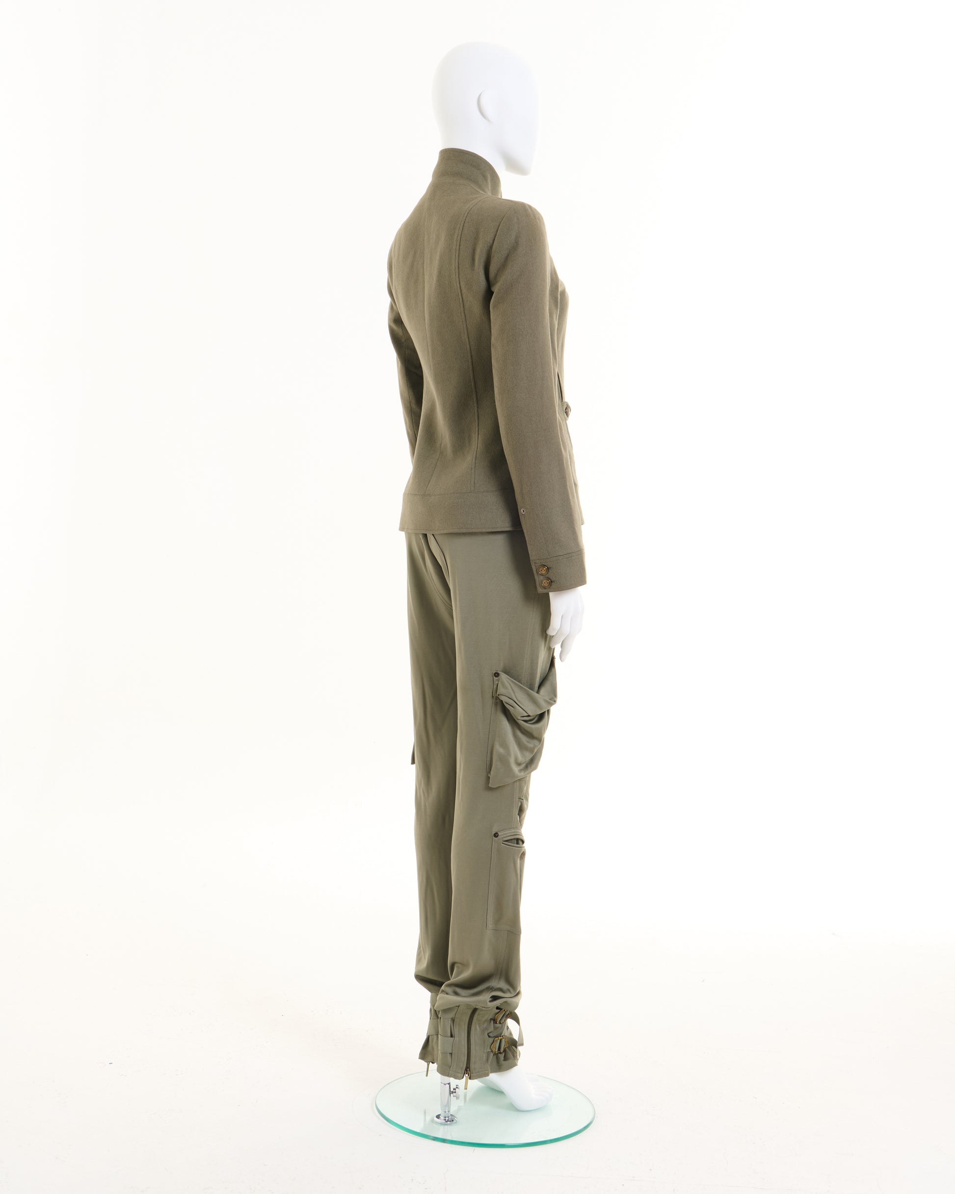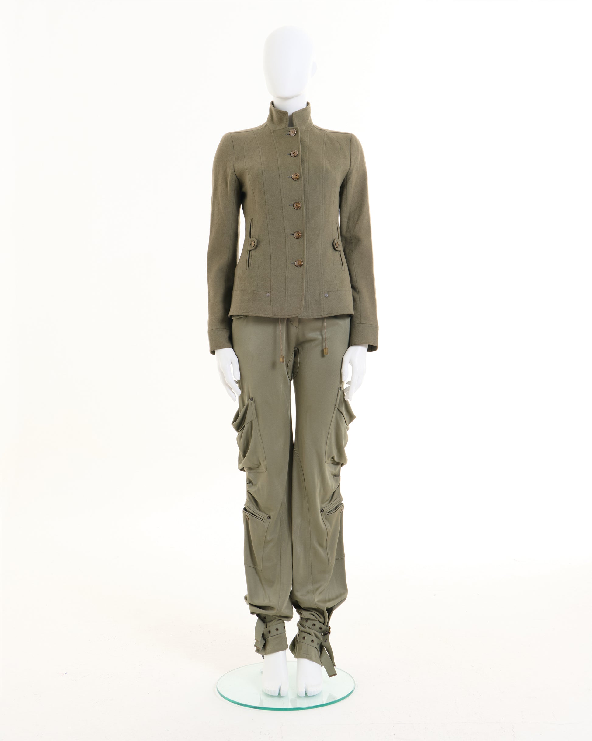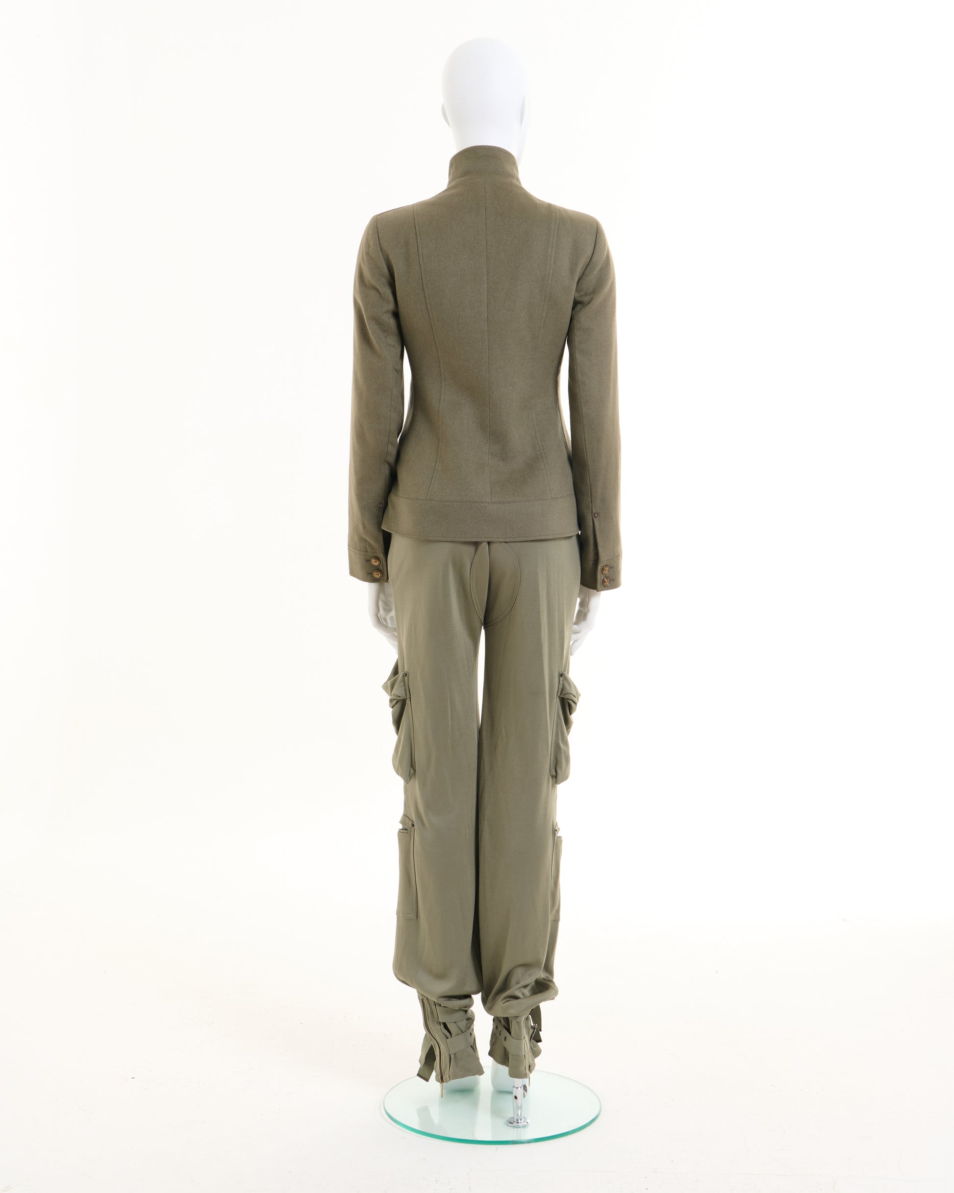 - Christian Dior Khaki Cashmere Military Jacket and Cargo Pants Set