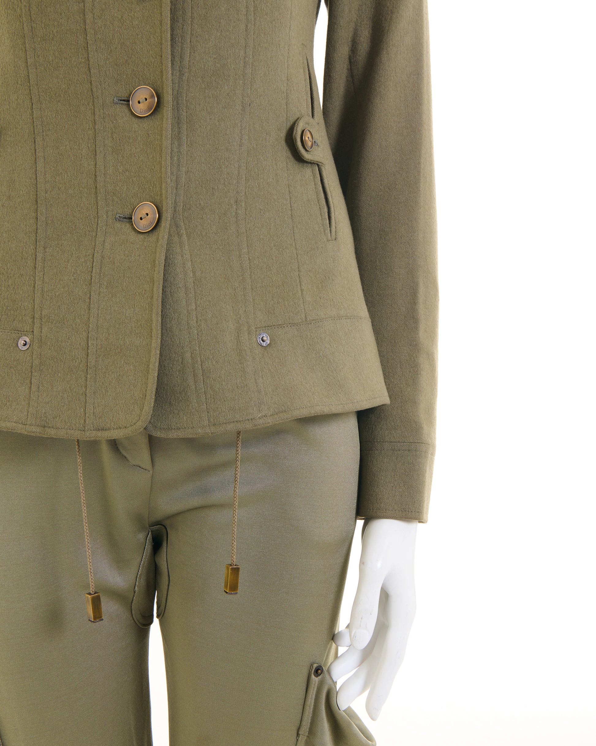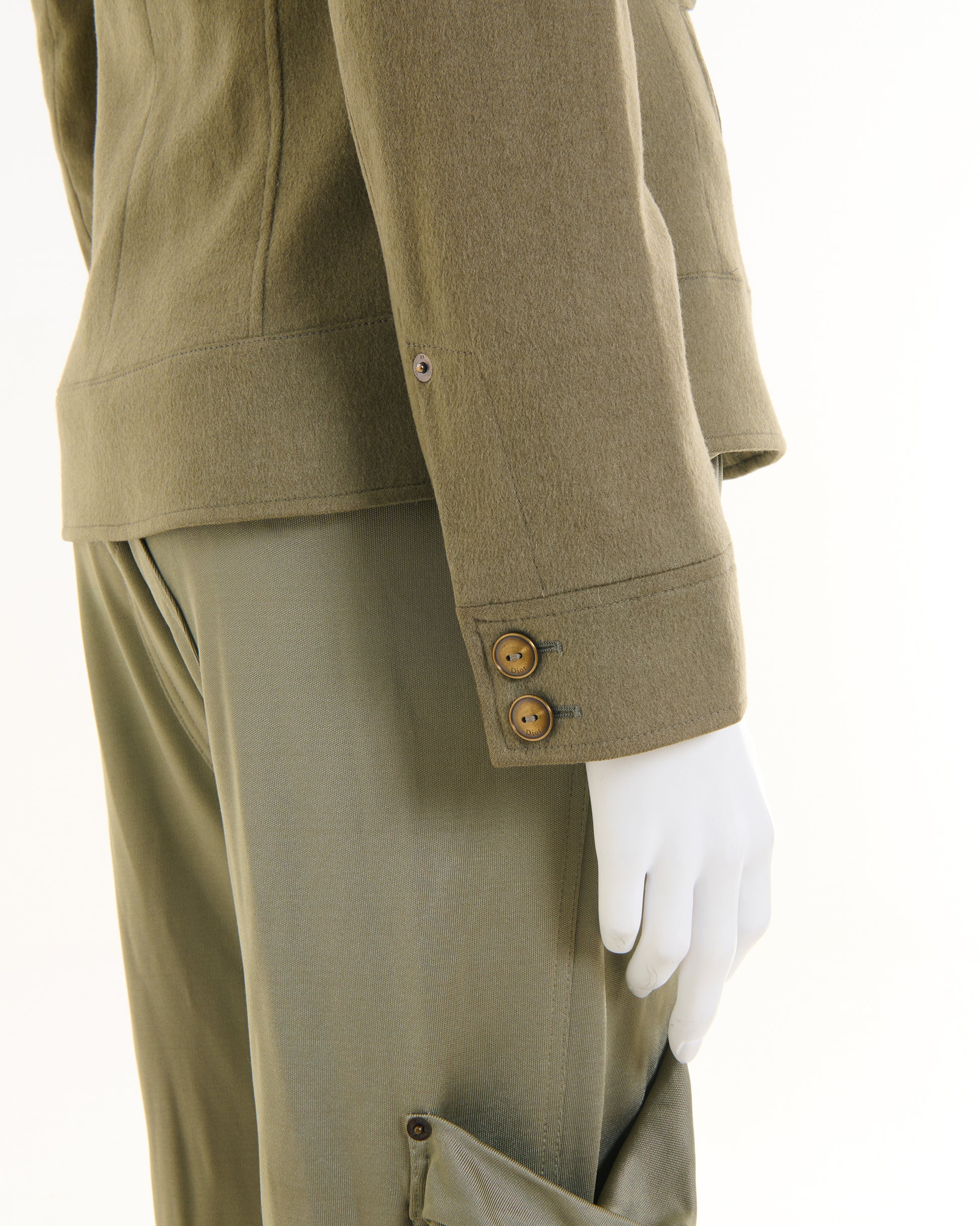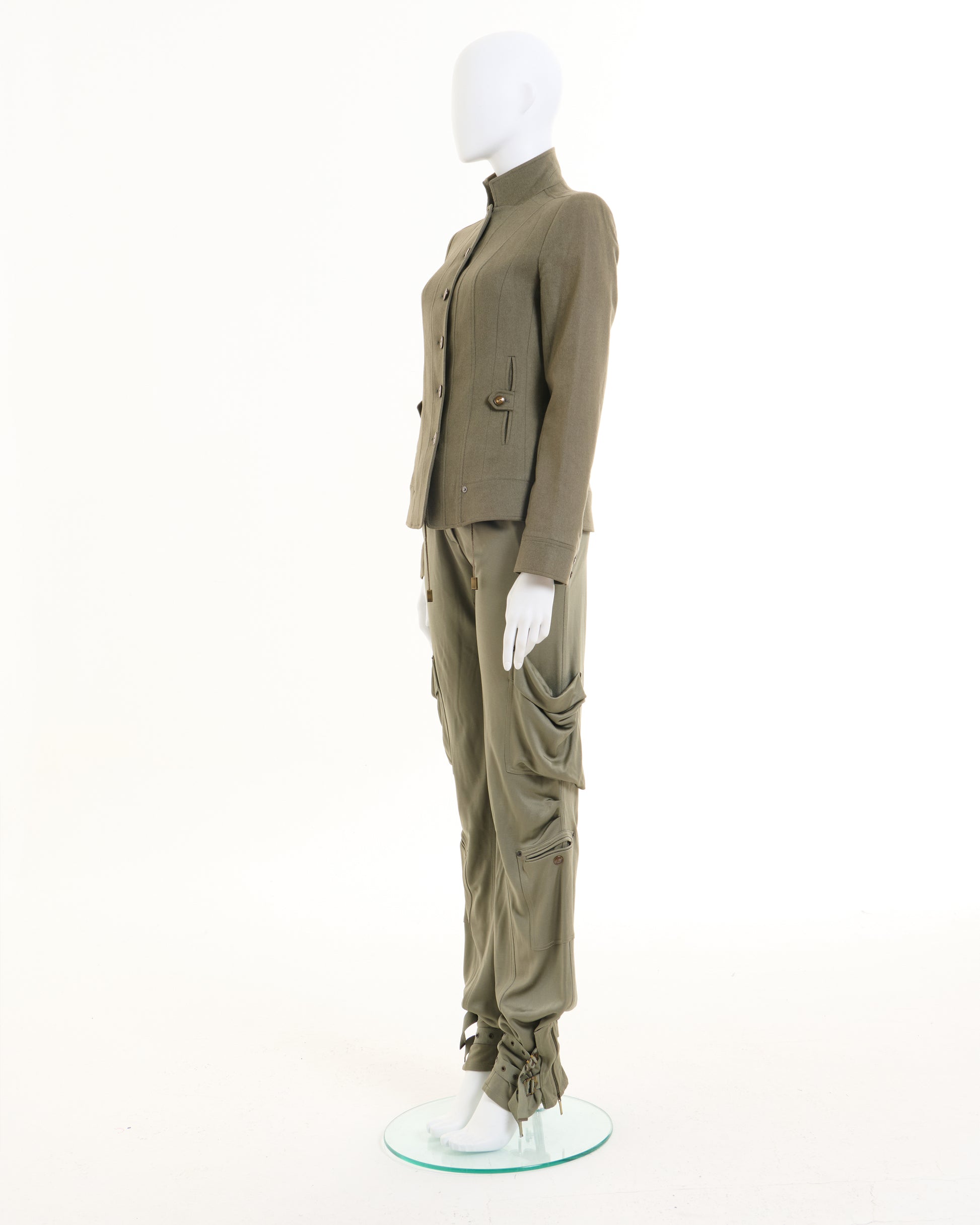 - Christian Dior Khaki Cashmere Military Jacket and Cargo Pants Set