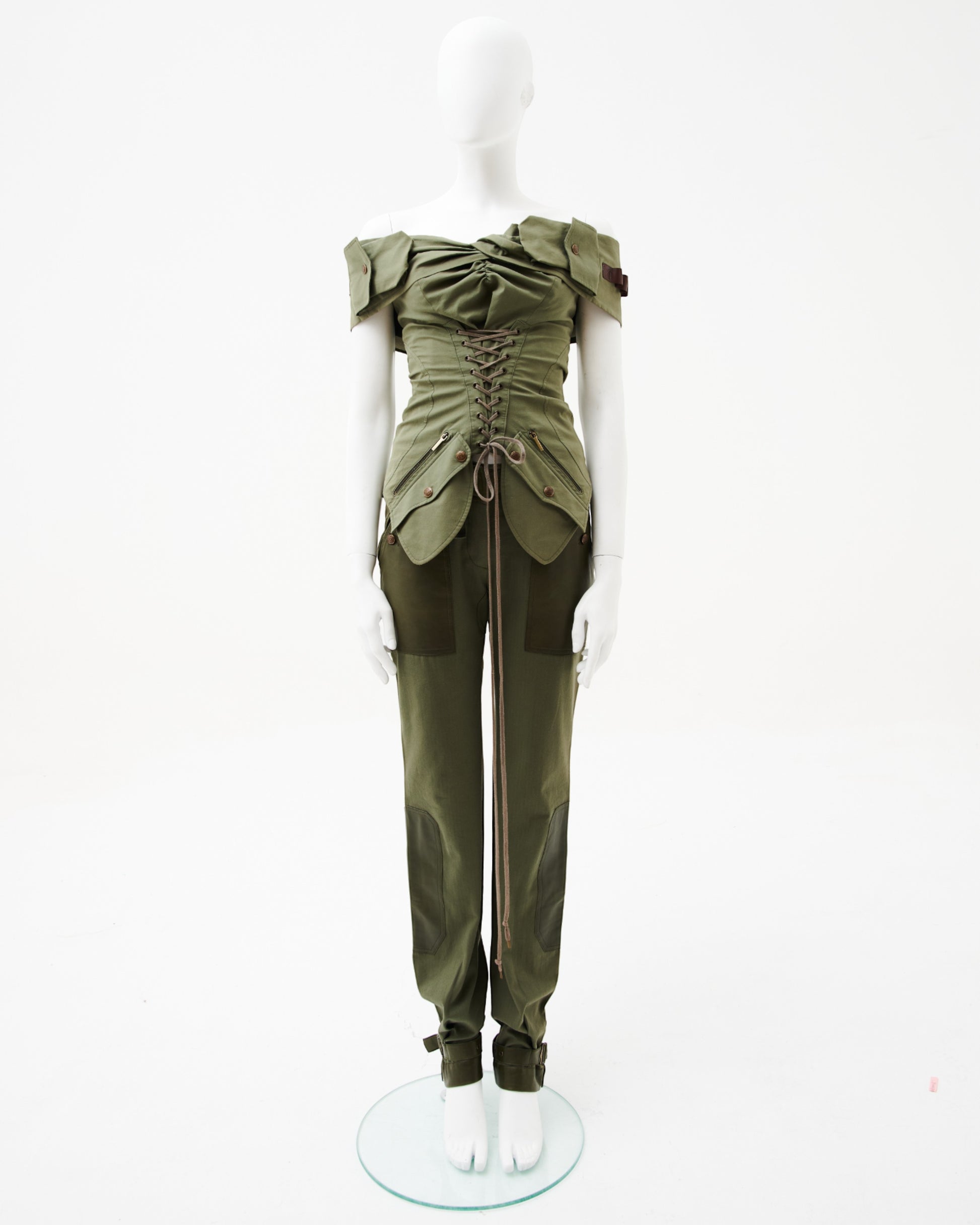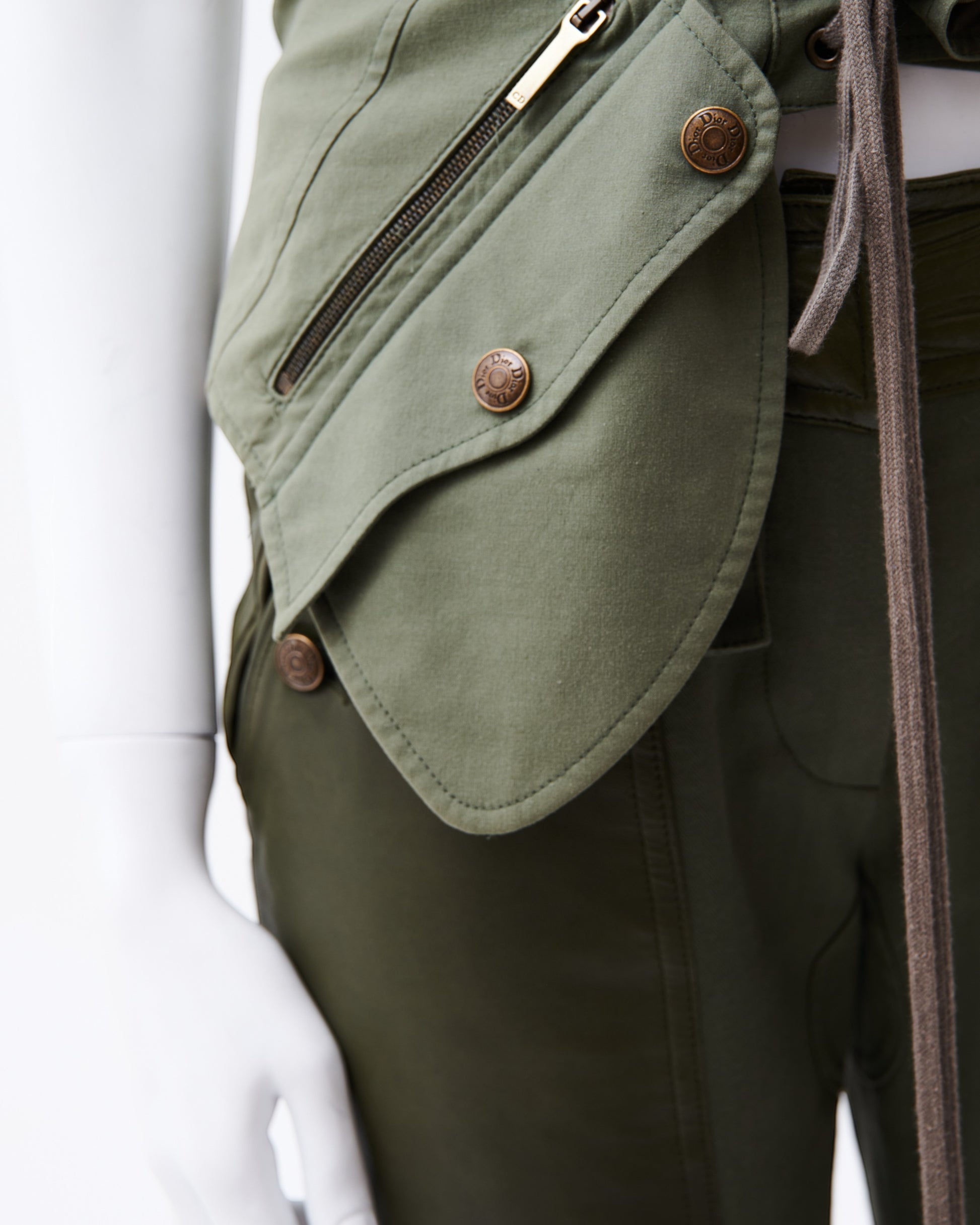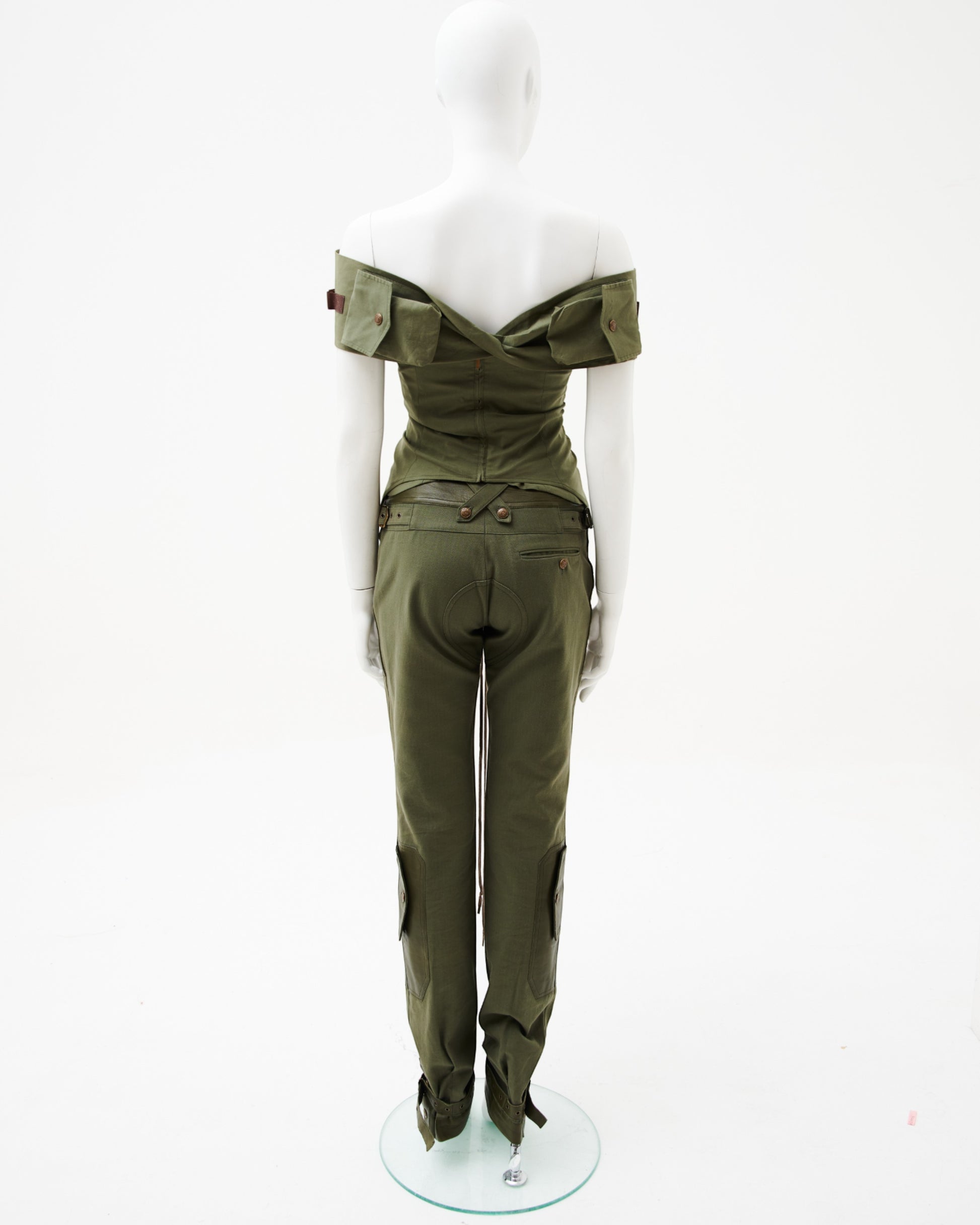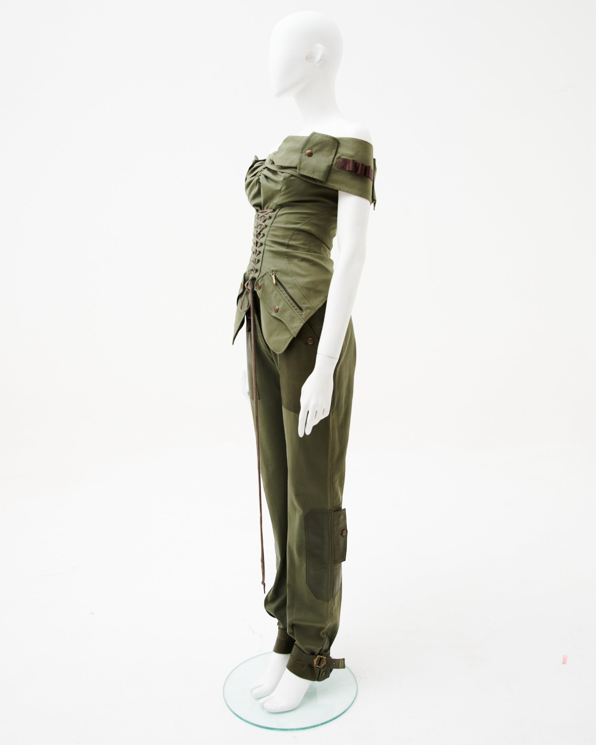 - Off-shoulder corseted top with functional cargo pockets on the shoulders and front panels