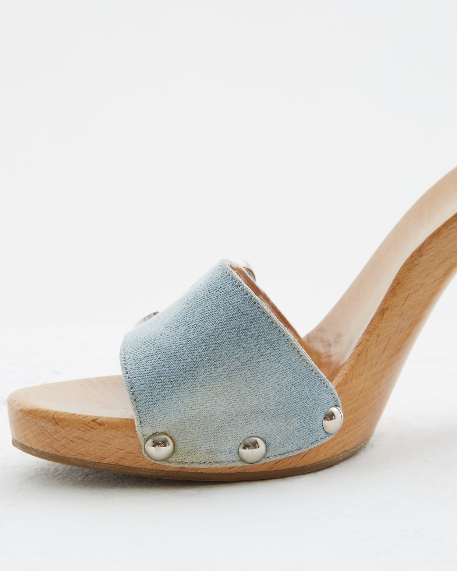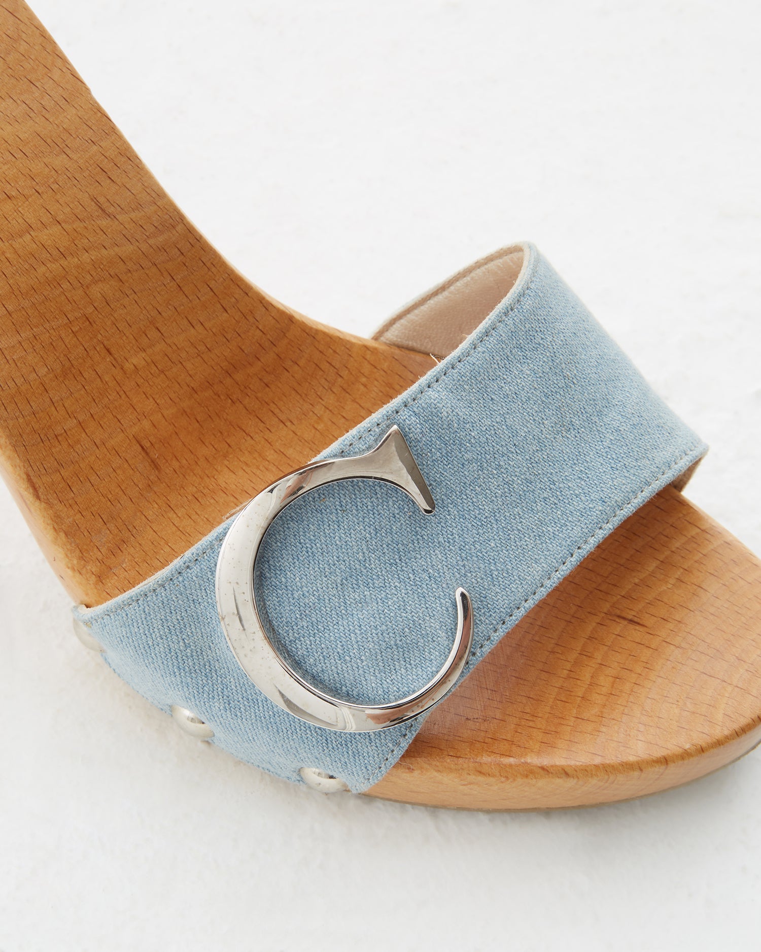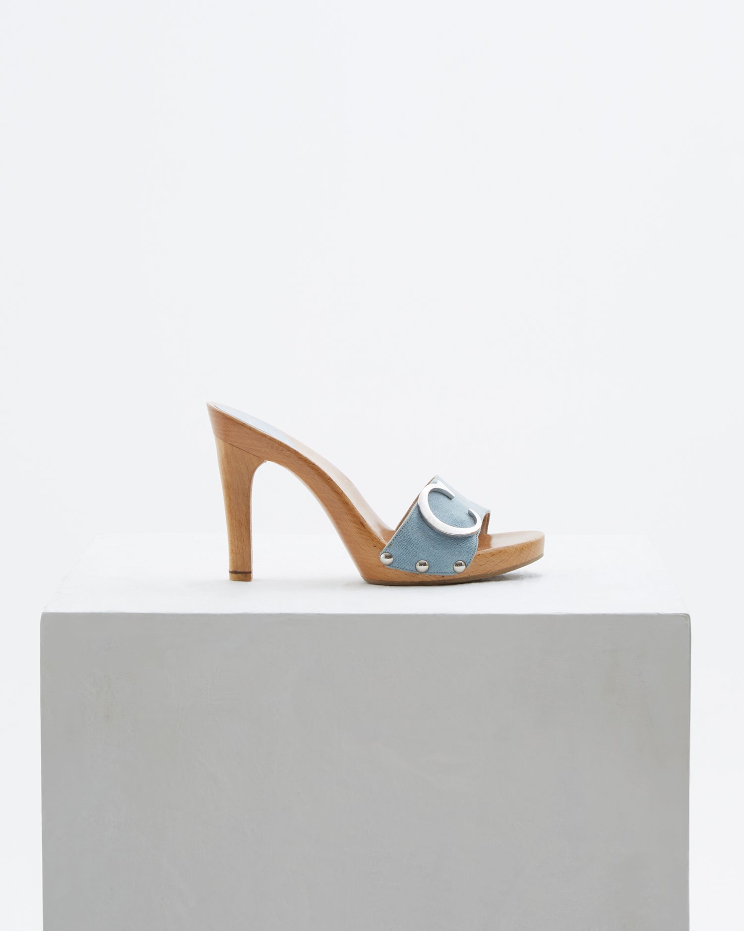 - High caramel color platform and soles with embossed rubber grips and bottom soles - Le iniziali del logo in tonalità argento su ogni scarpa, "C" su una e "D" sull'altra, con borchie in tonalità argento ai lati.