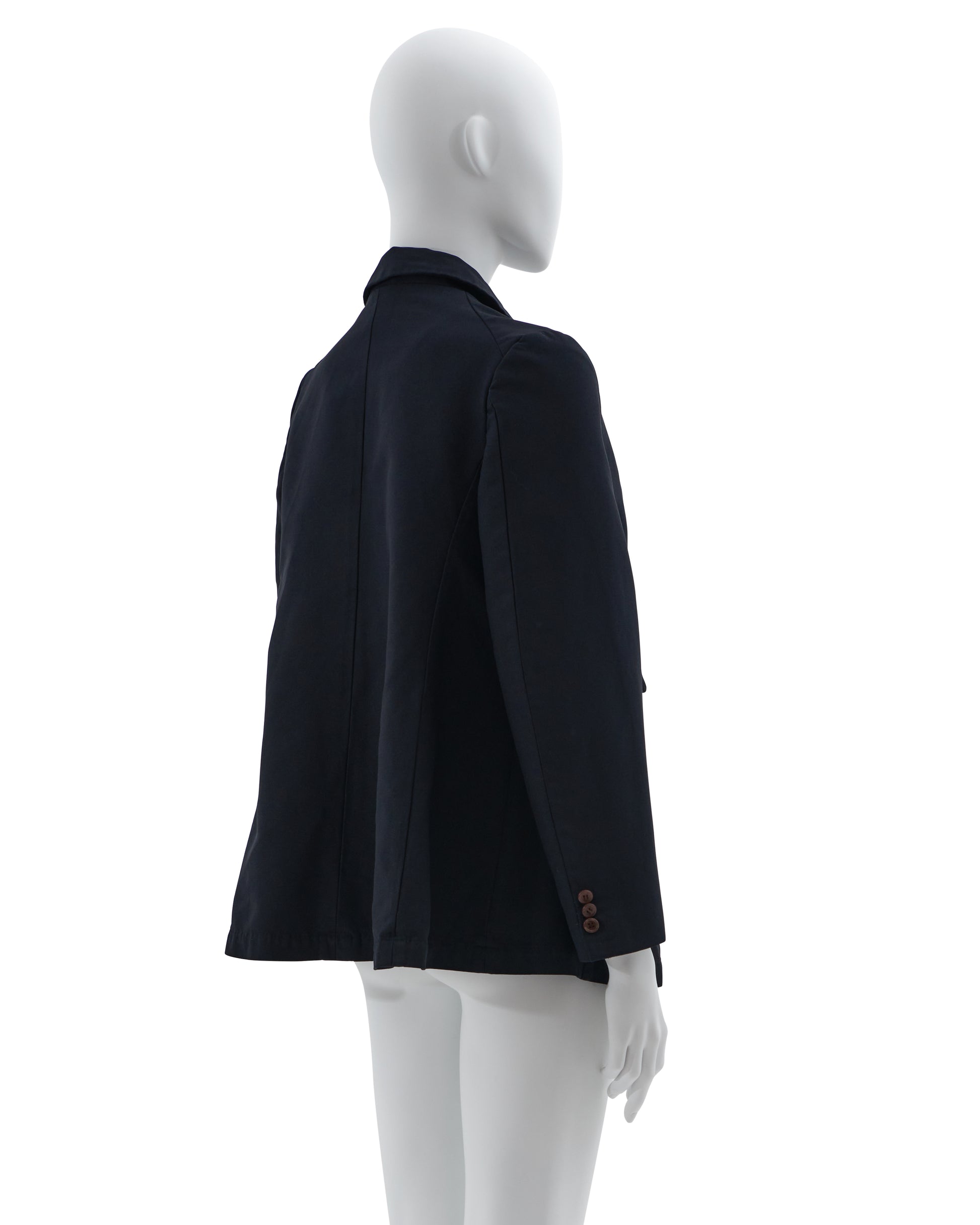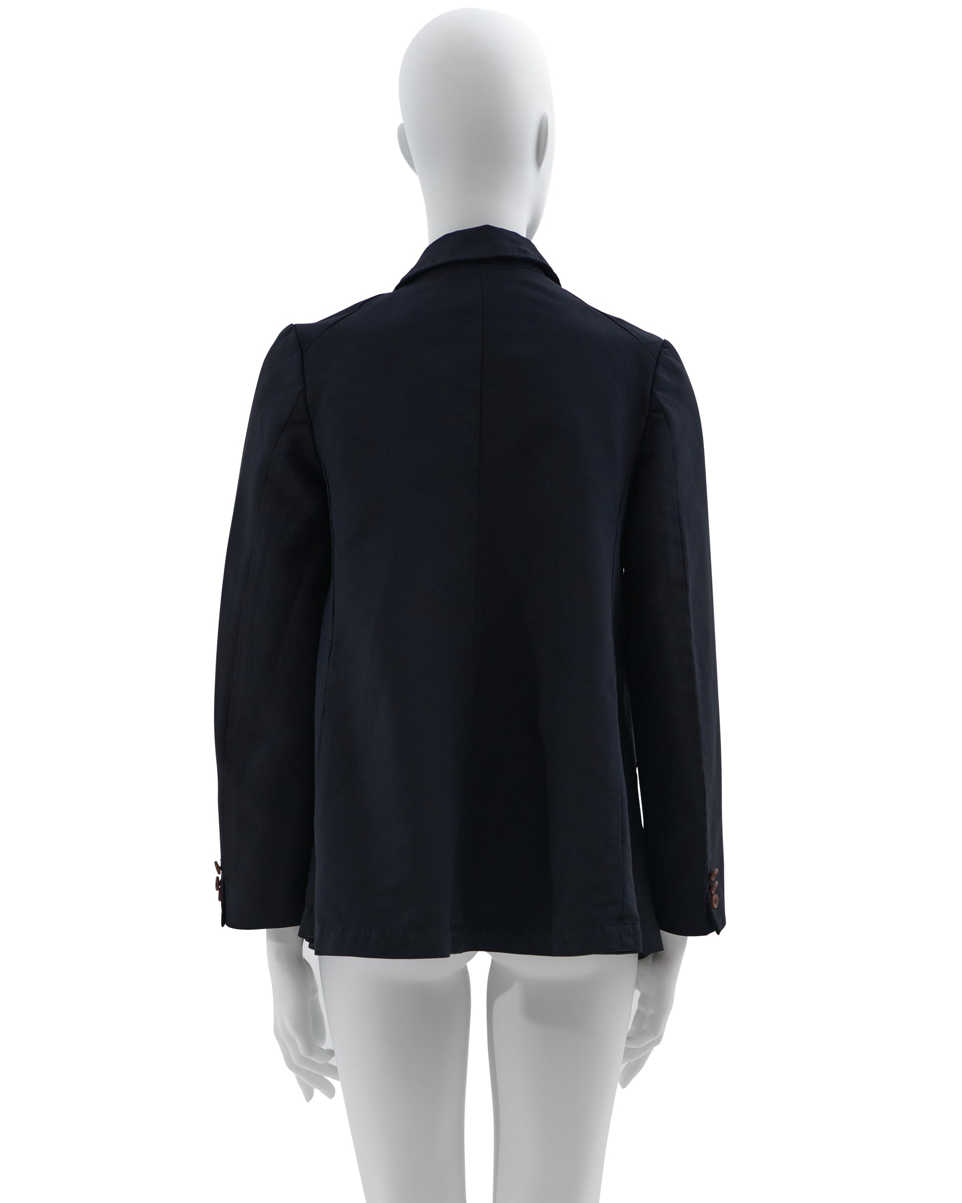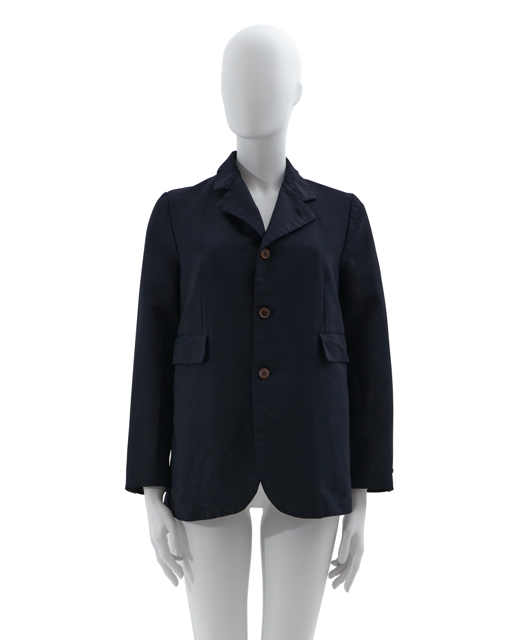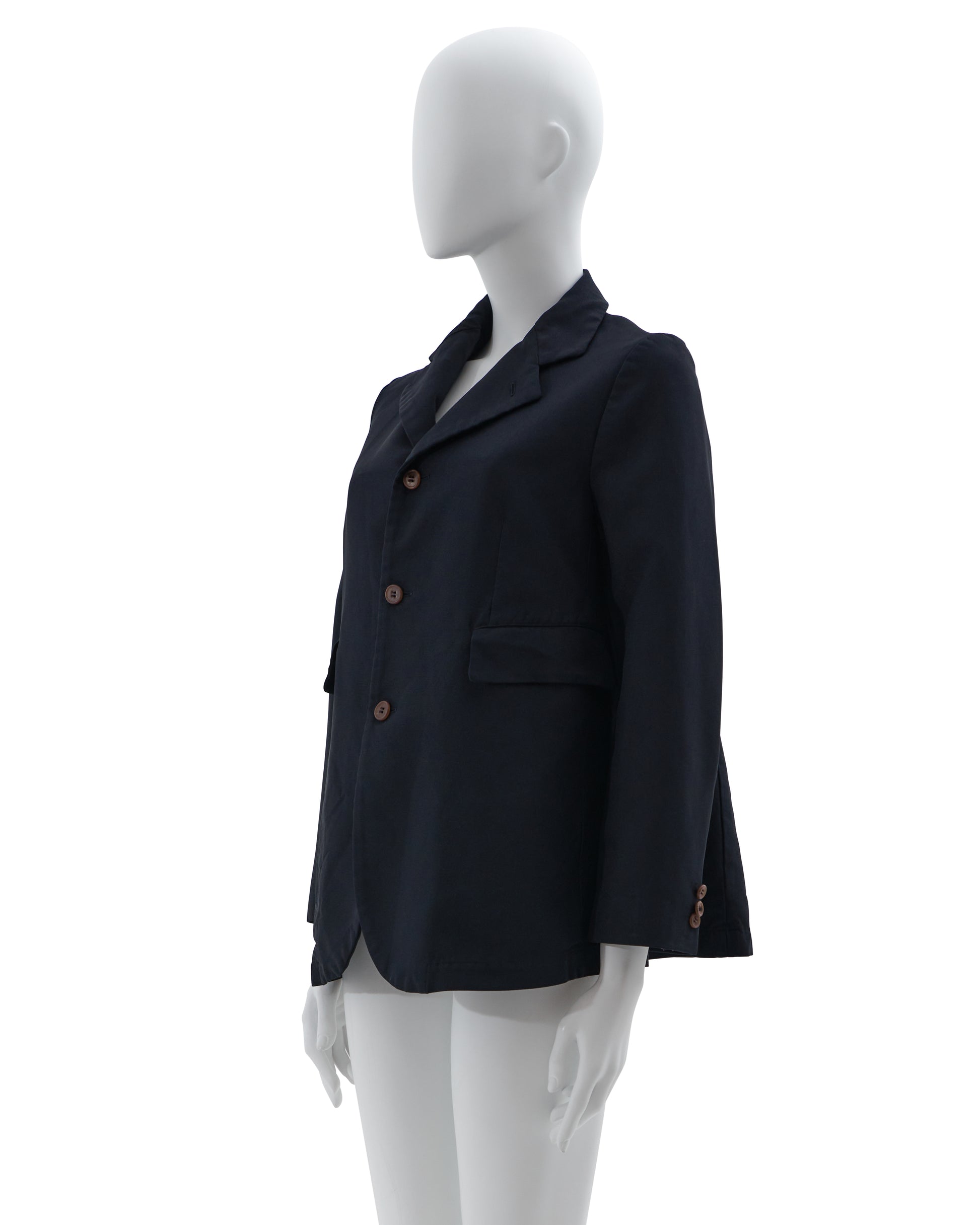 - Sport jacket comes in a black polyester twill woven material featuring a notch lapel