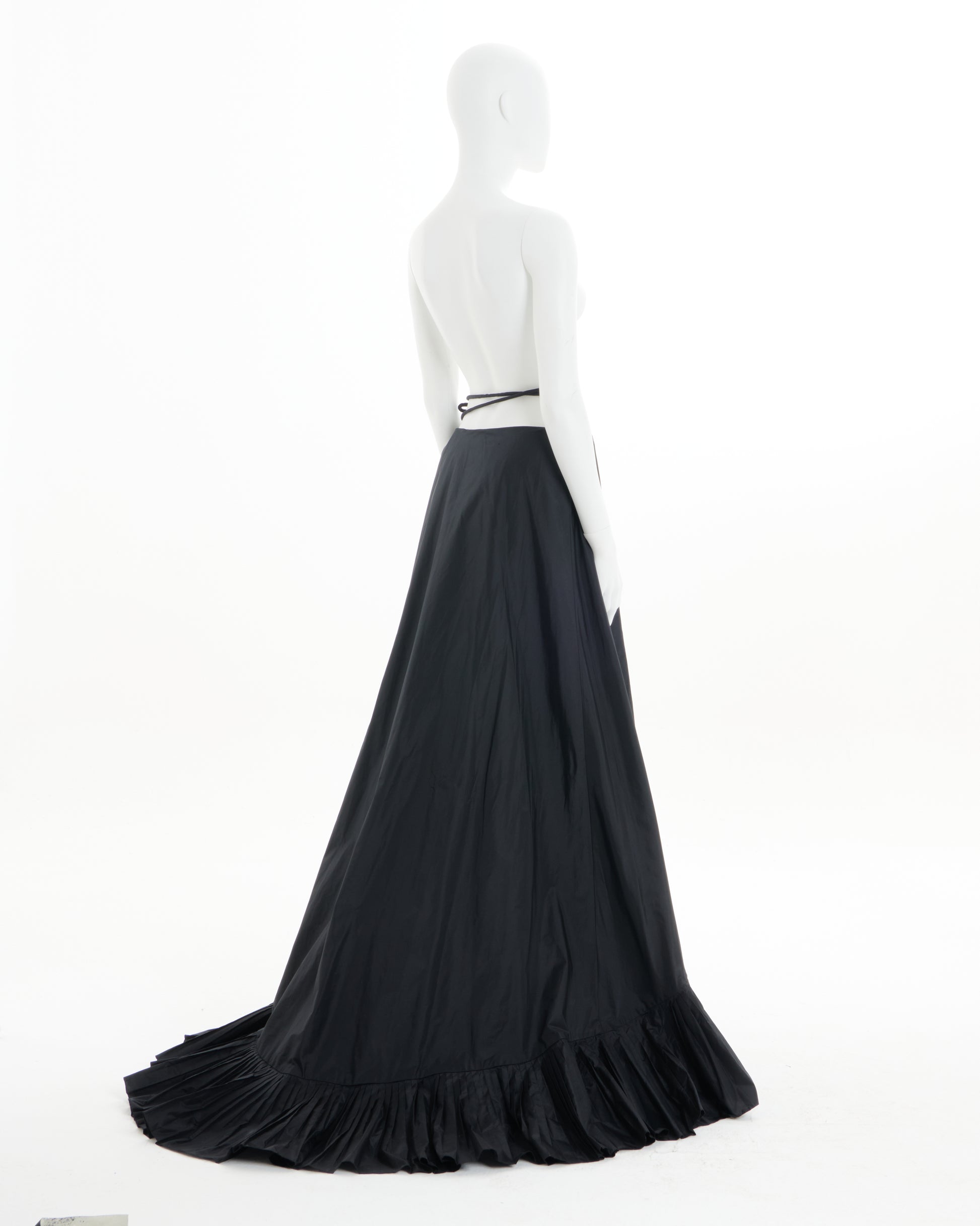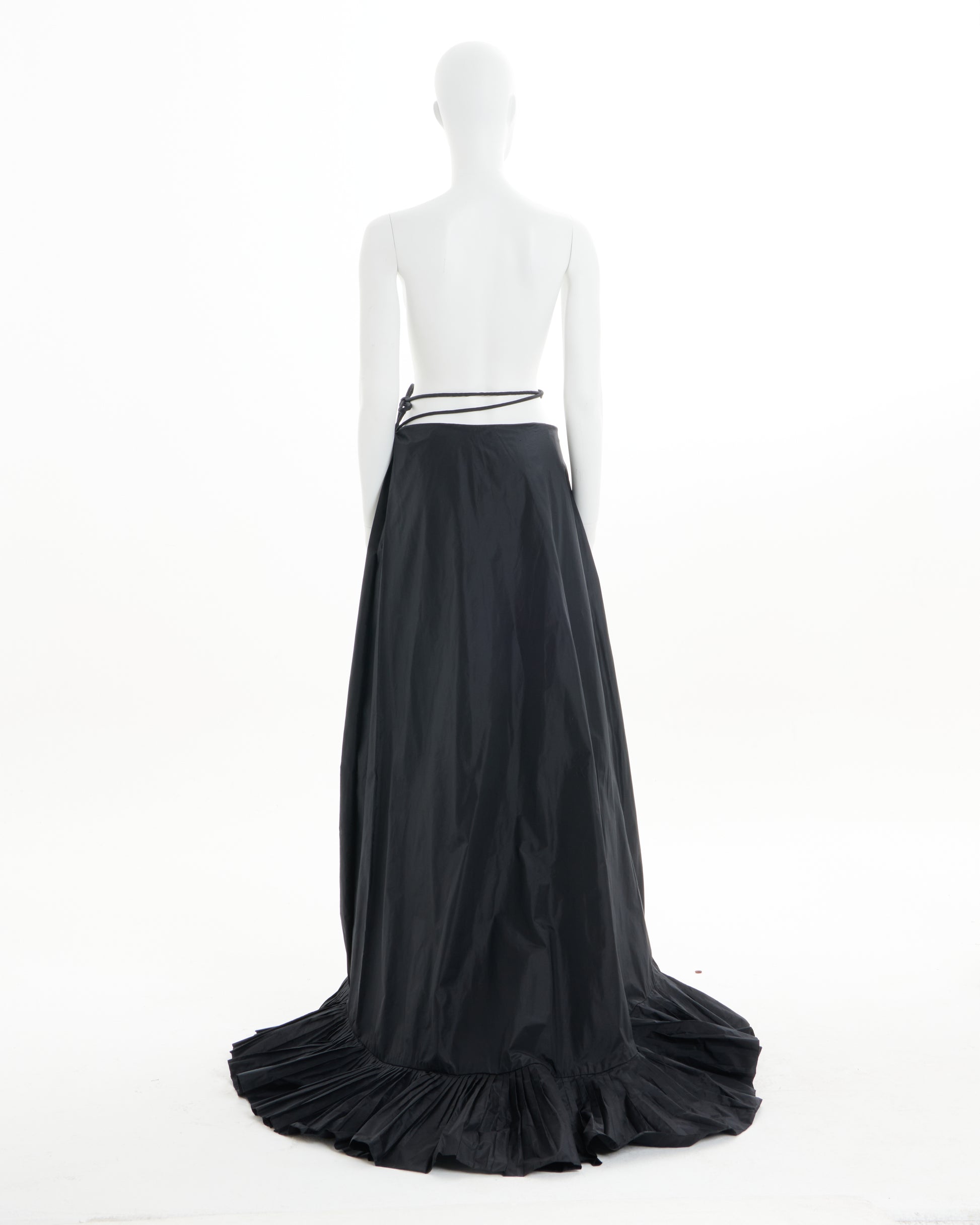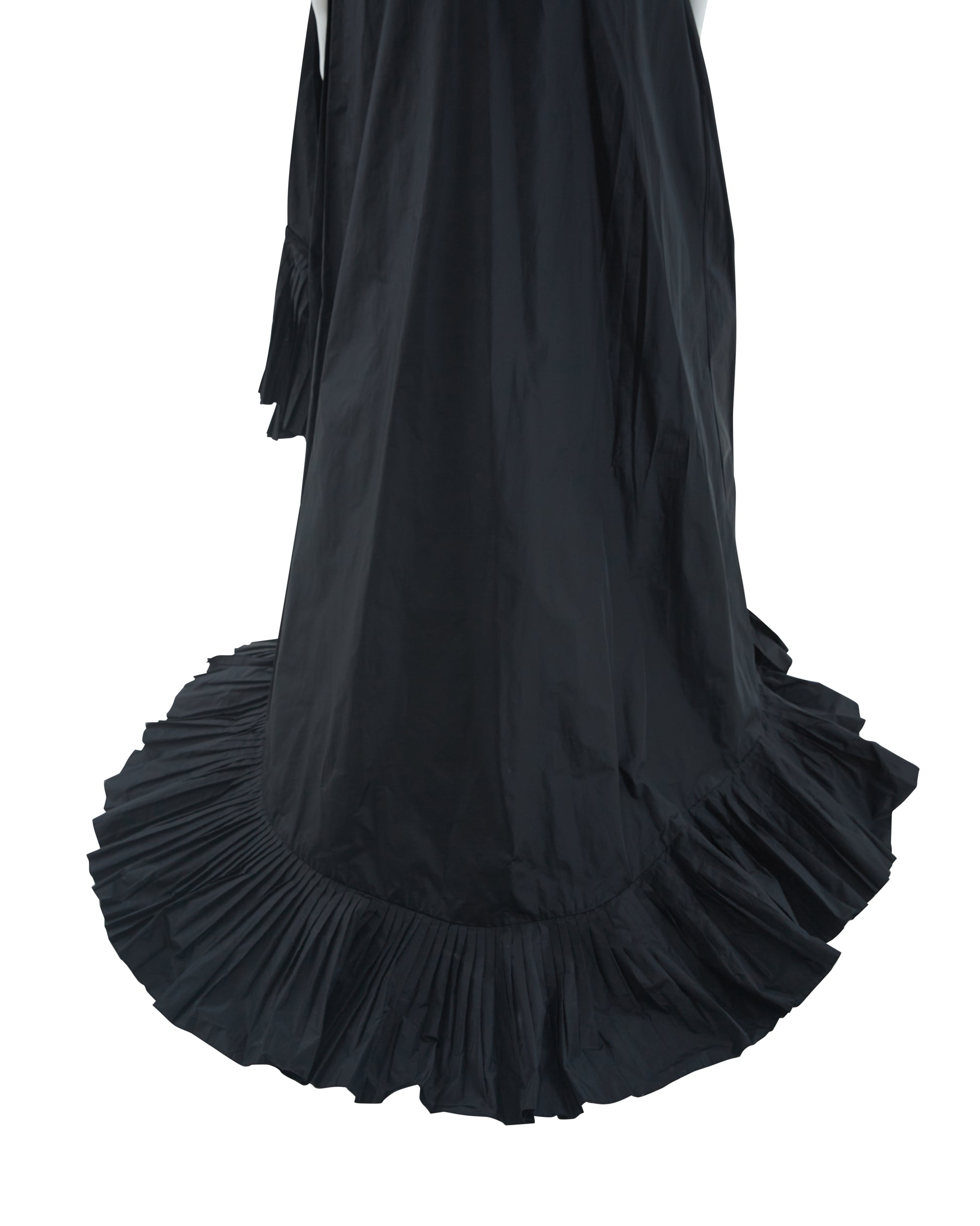 - Voluminous black silk taffeta skirt with dramatic train