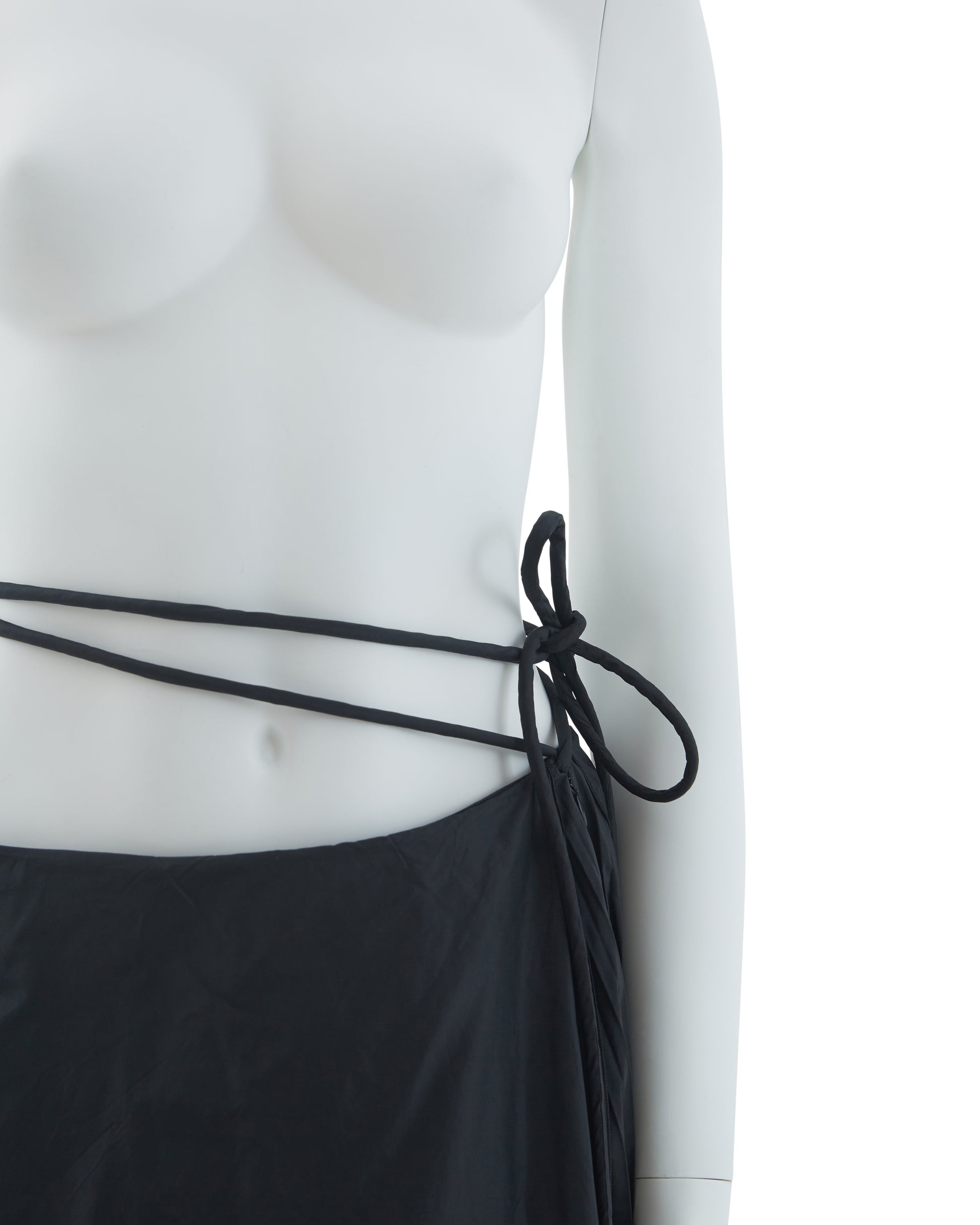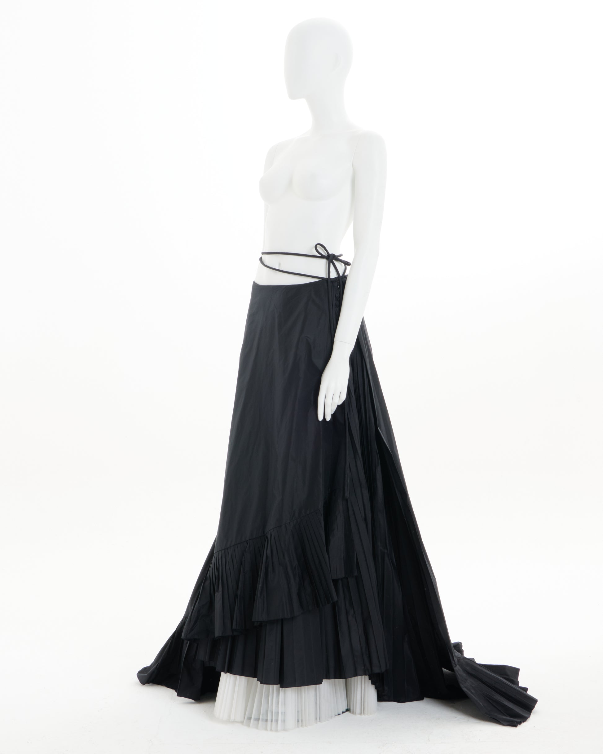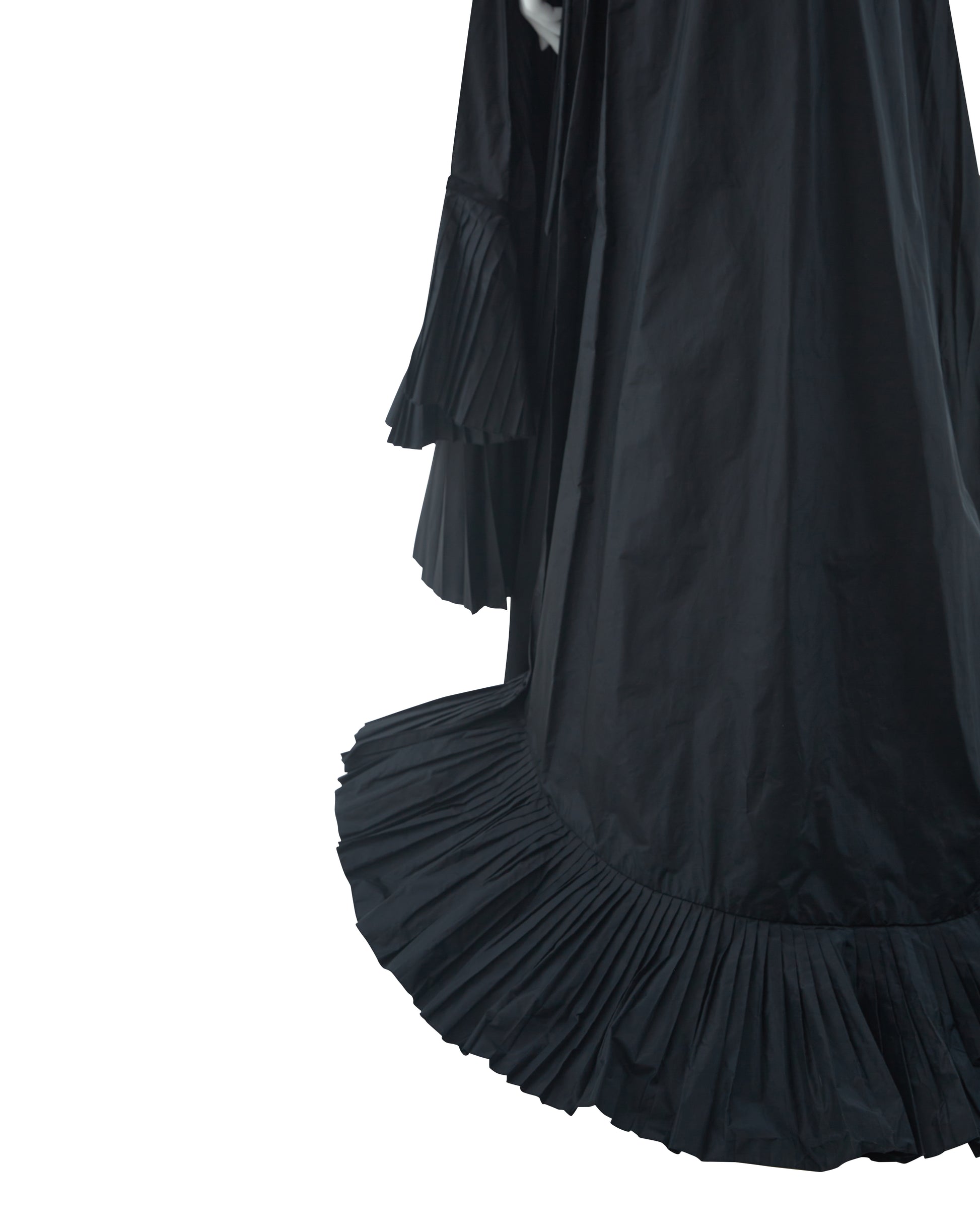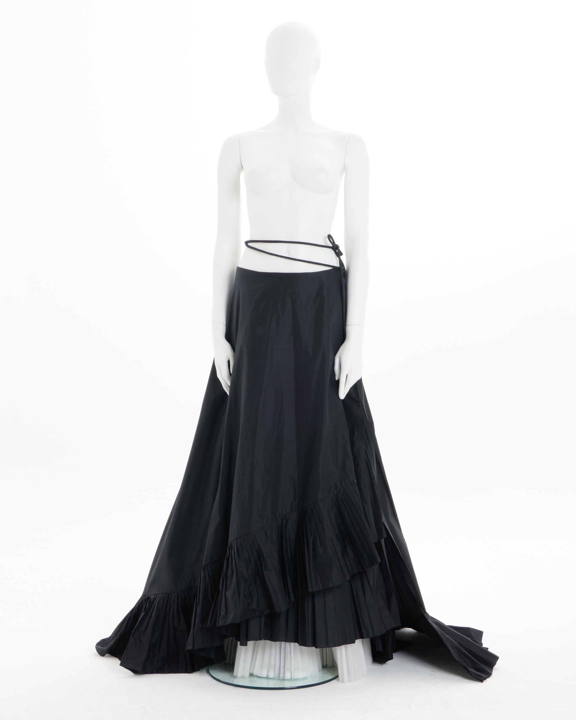 - Voluminous black silk taffeta skirt with dramatic train