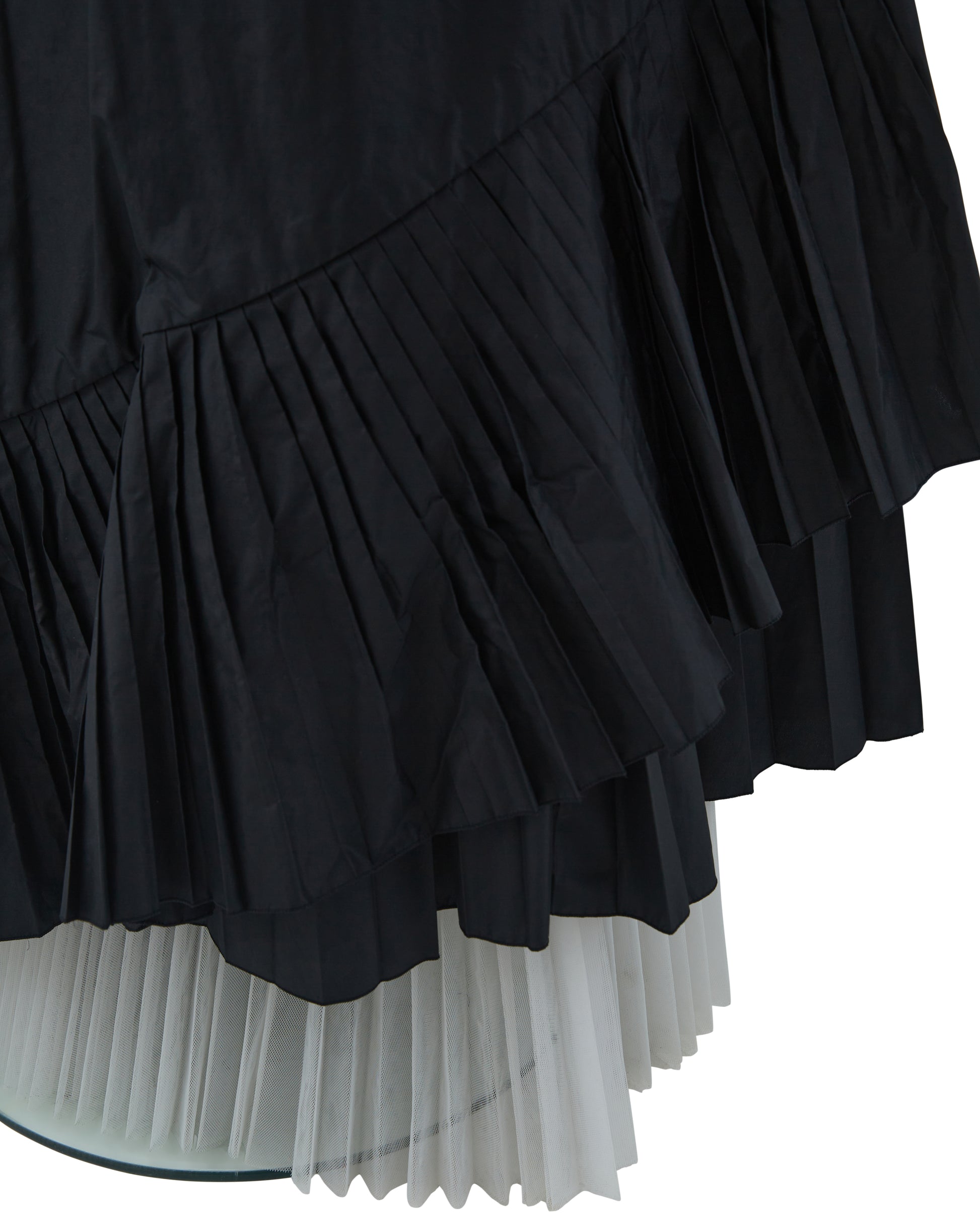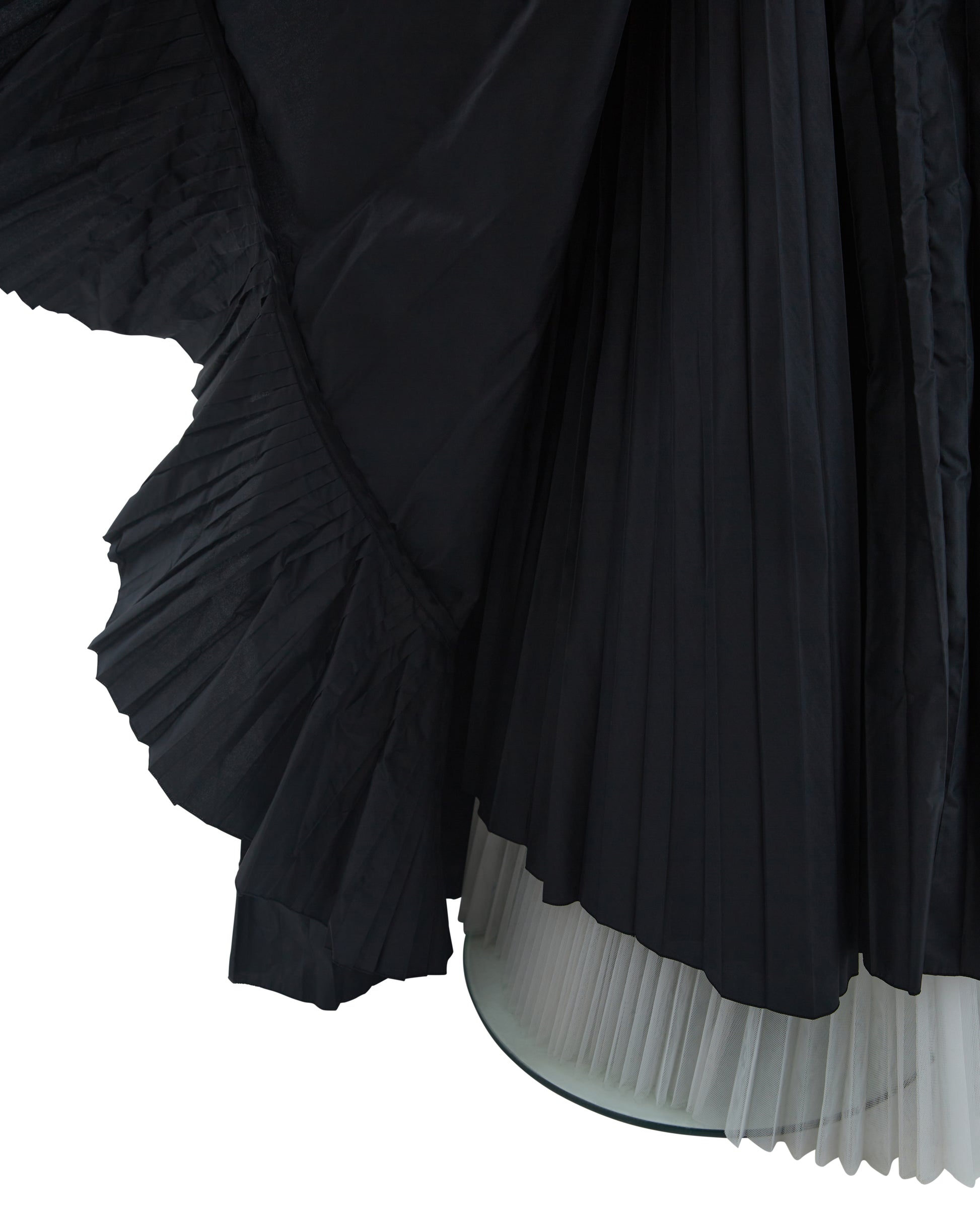 - Double layered skirt with white plated crinoline and ruffled and plated black taffeta silk
