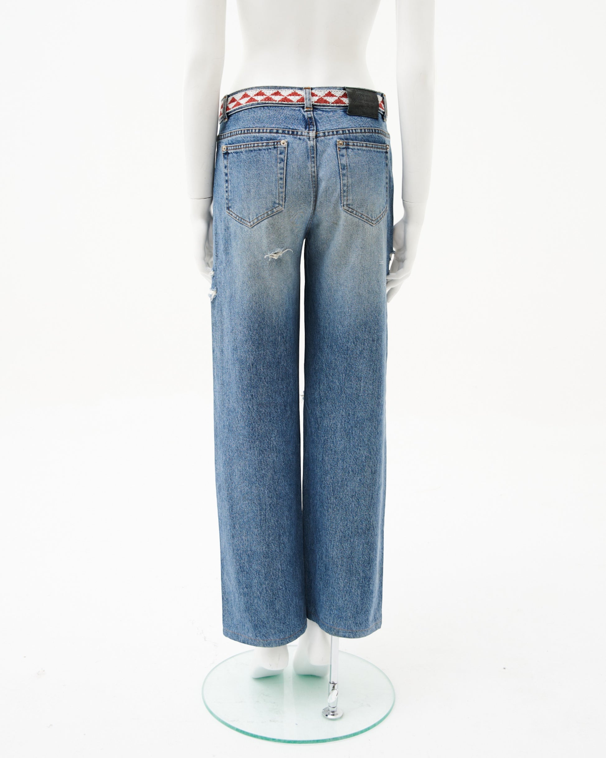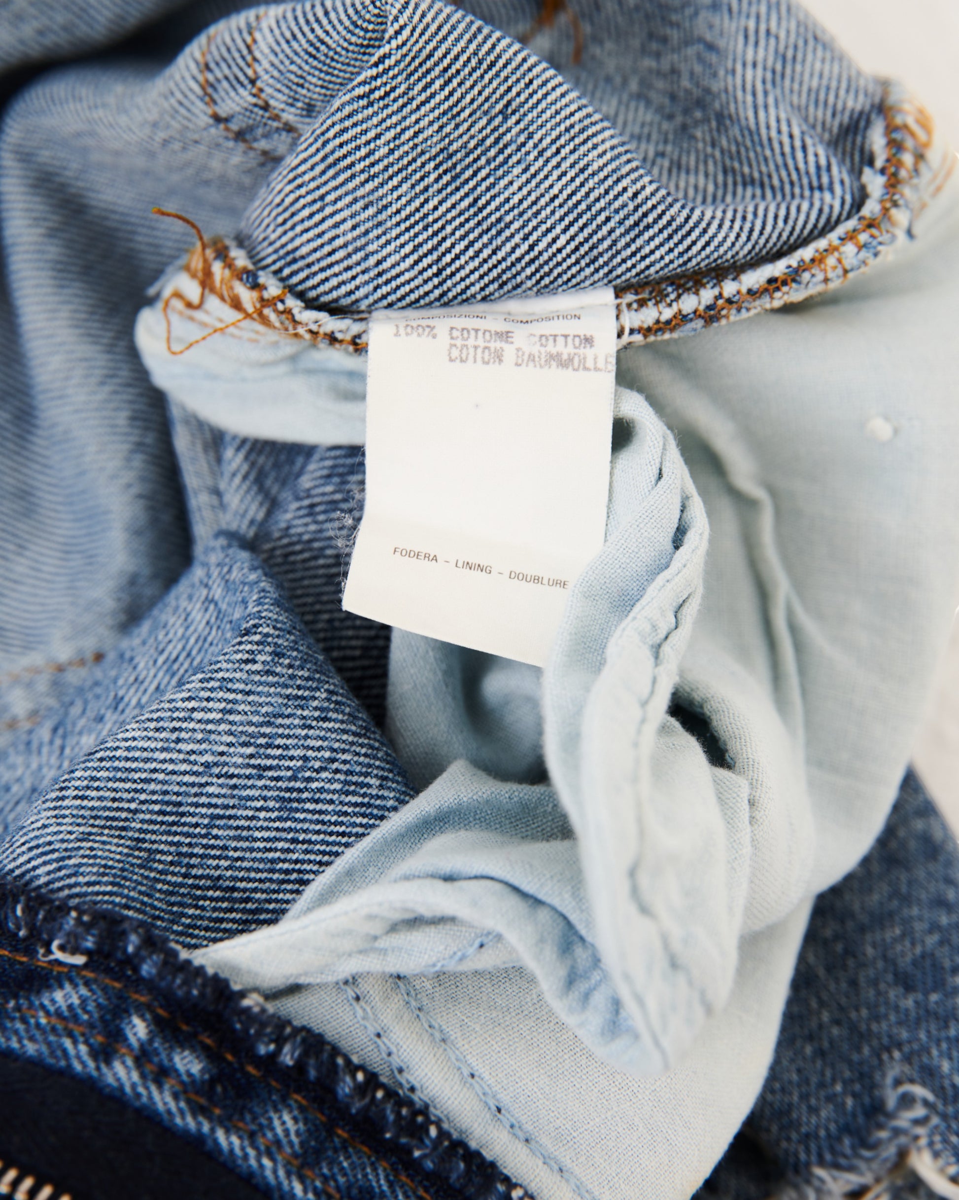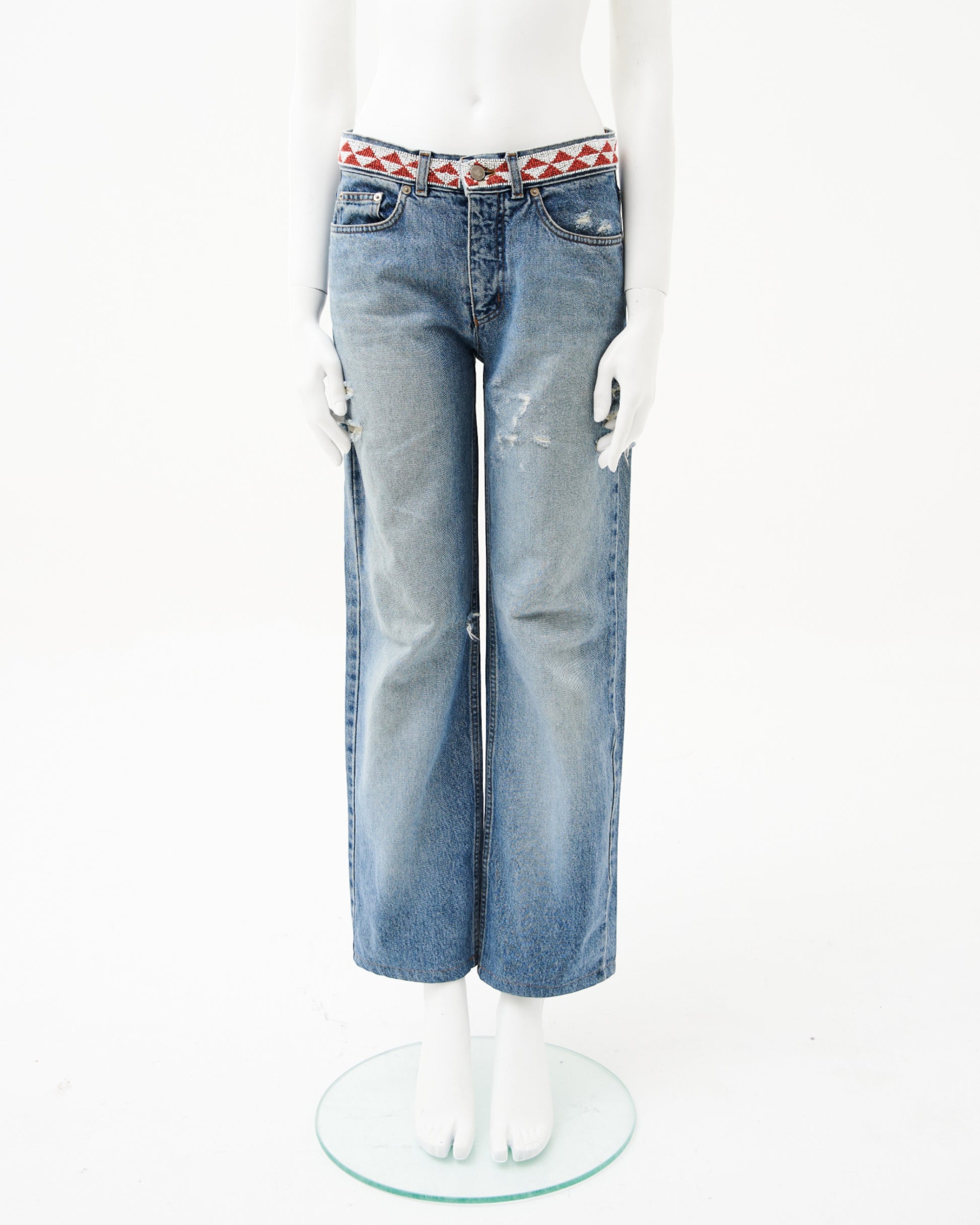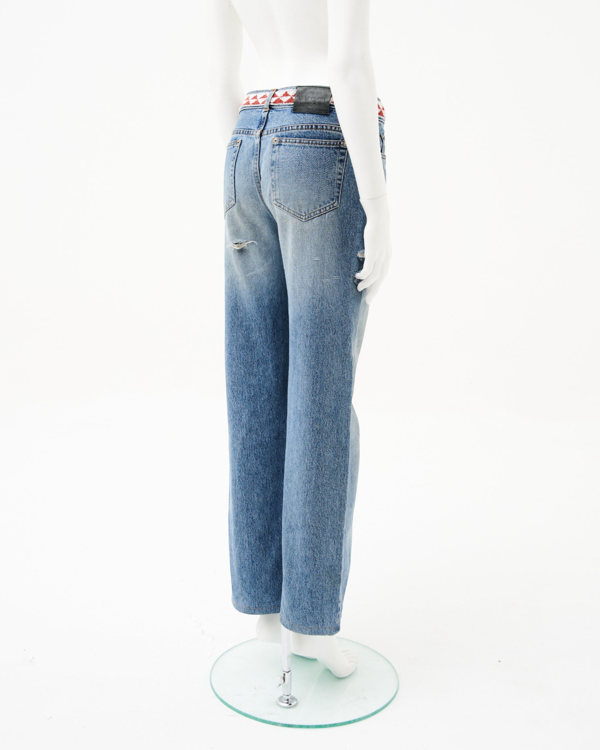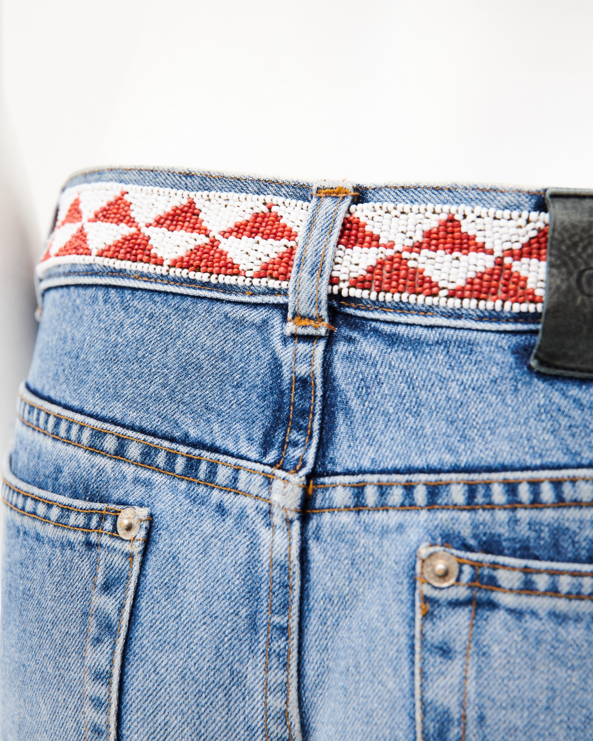 - Black leather Gucci patch on back waistband and engraved metal button closure