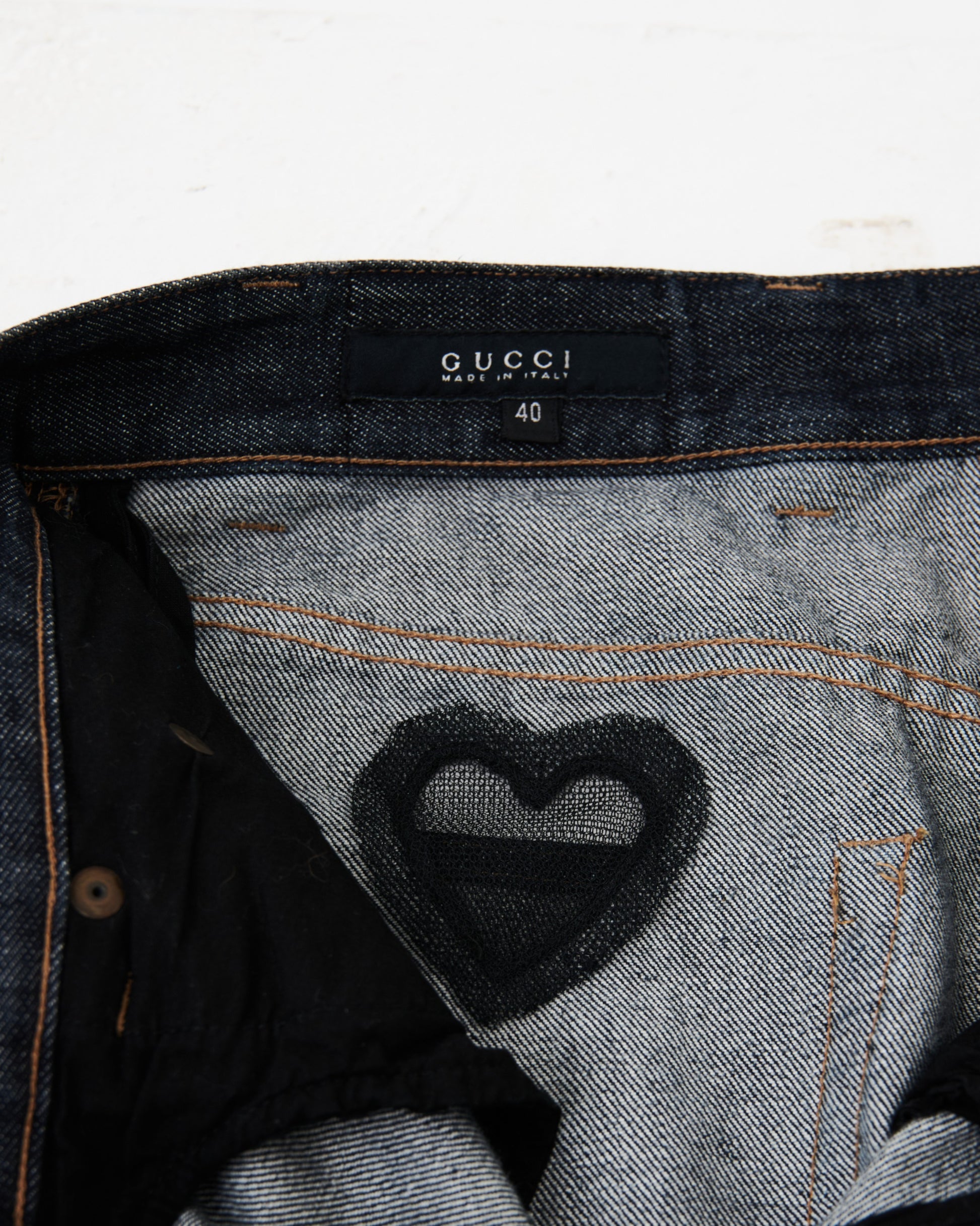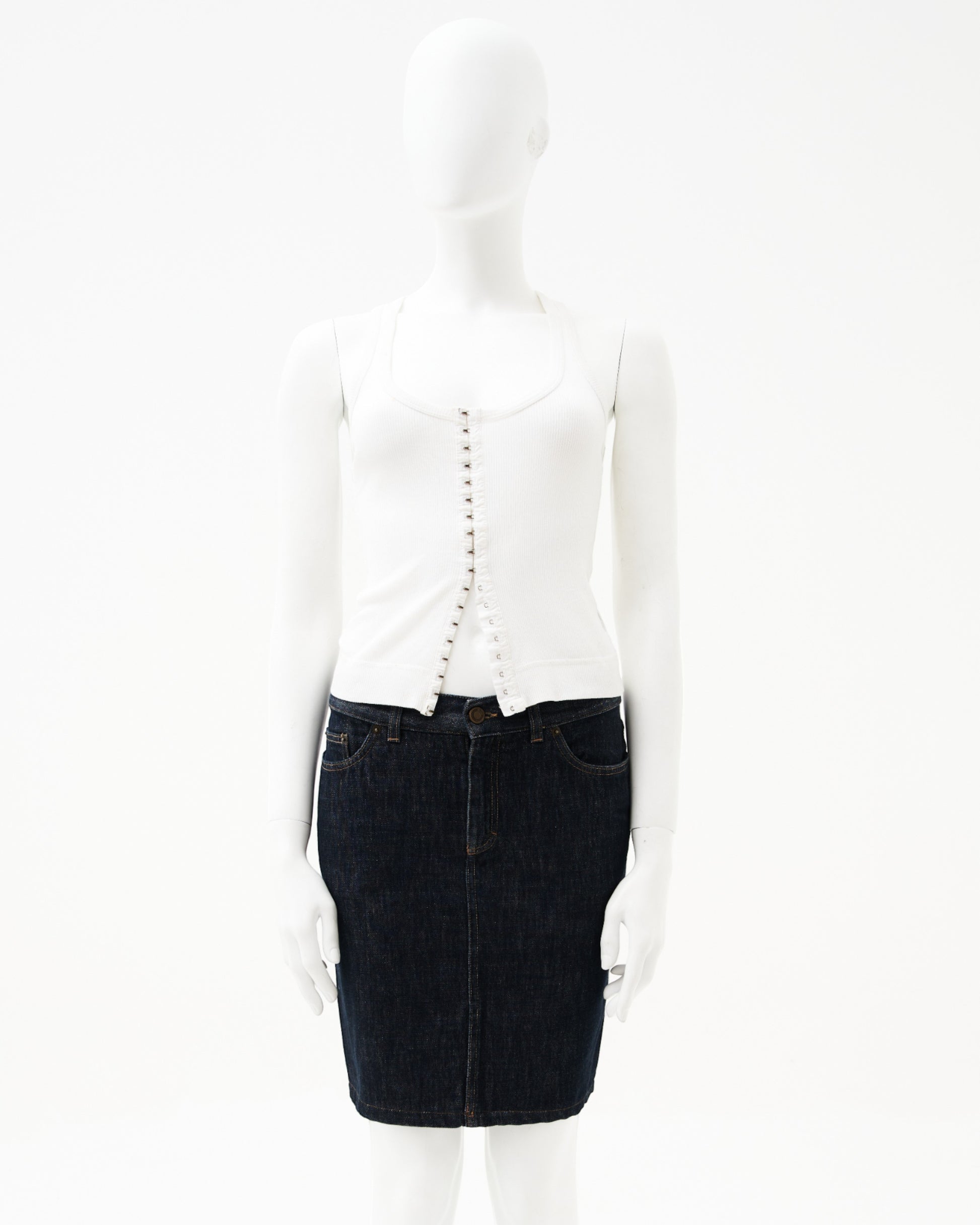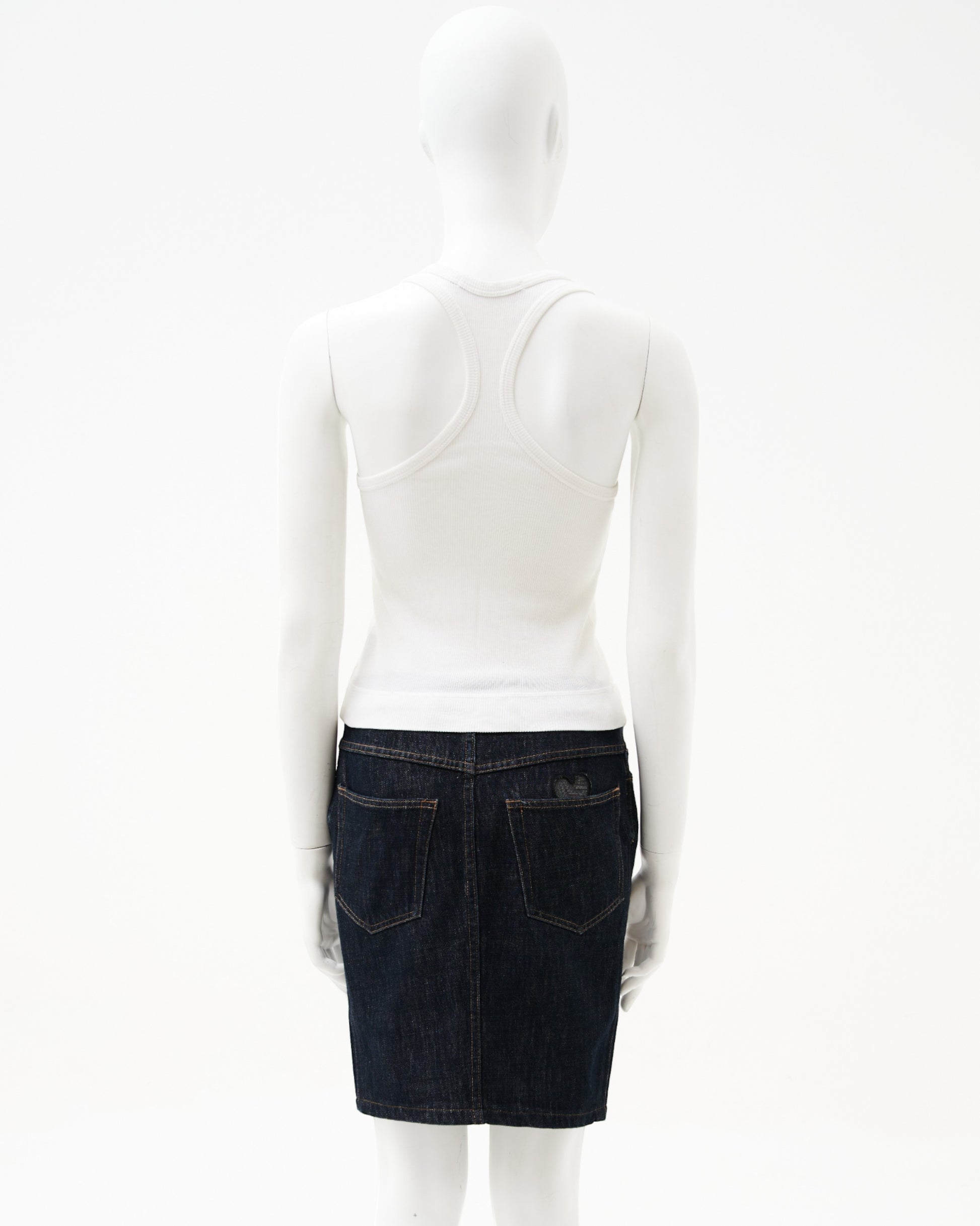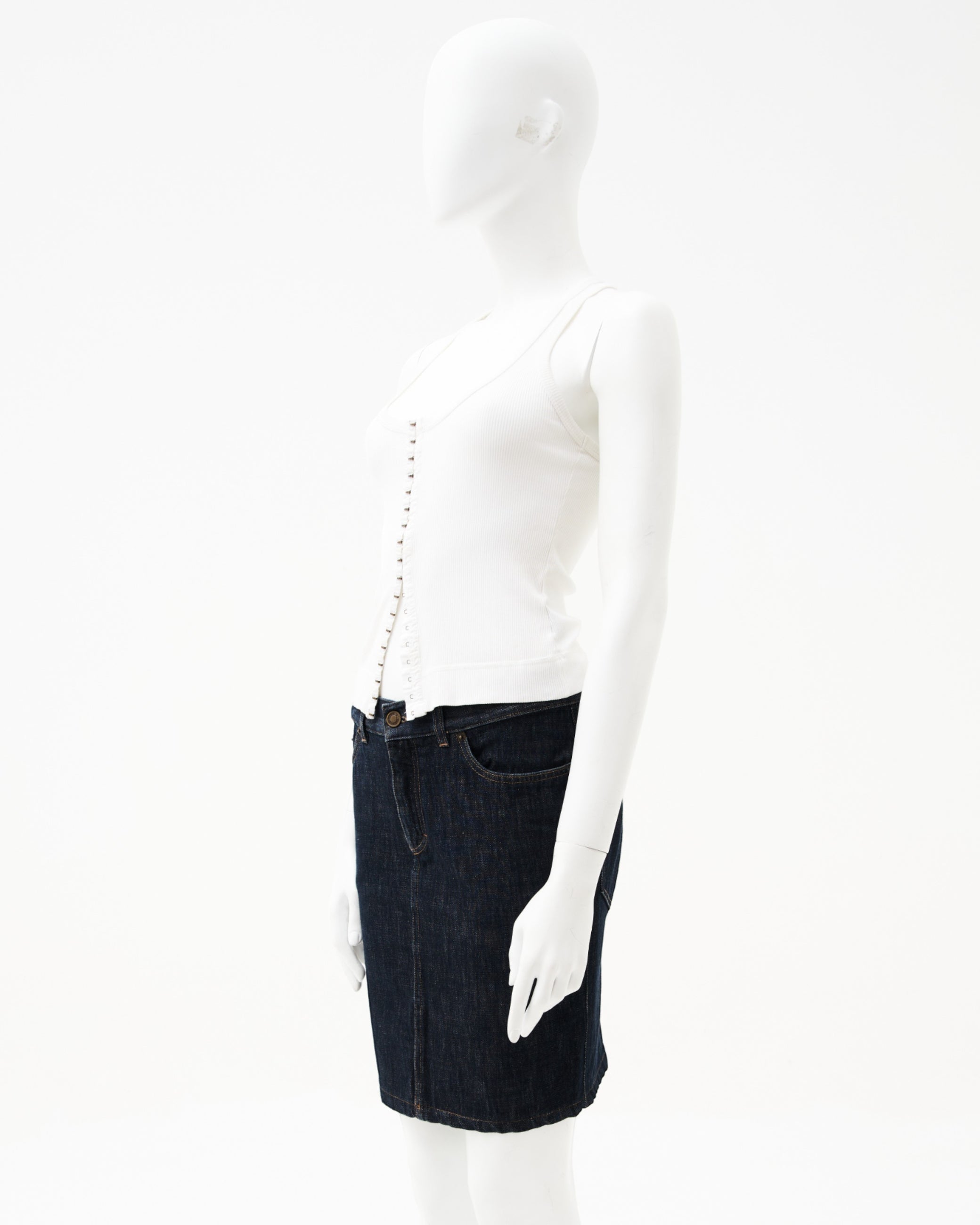 - Buttoned White Tank Top and Denim Hearts Skirt