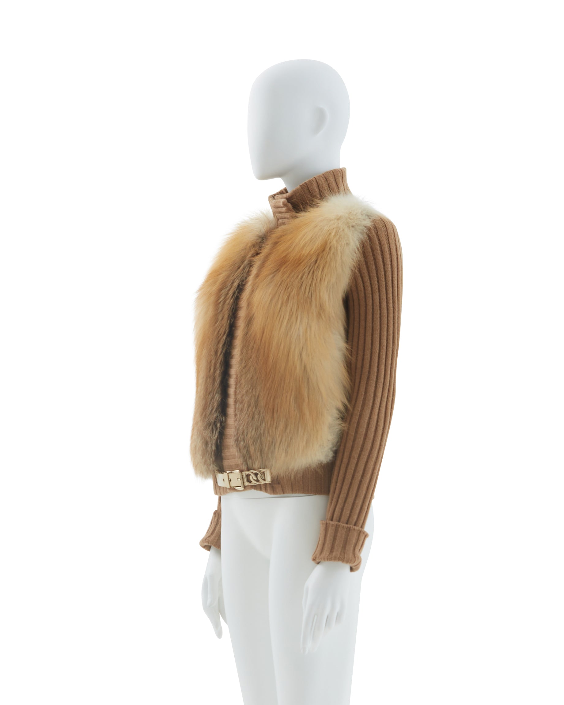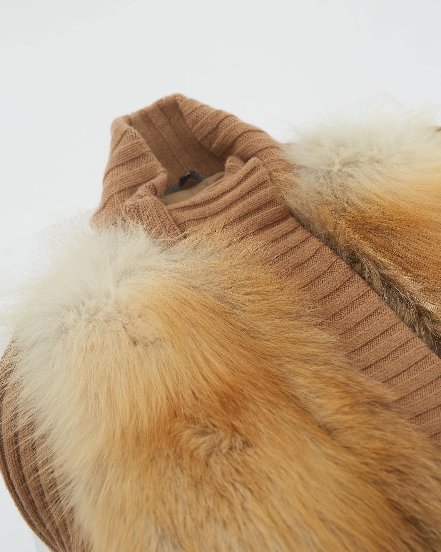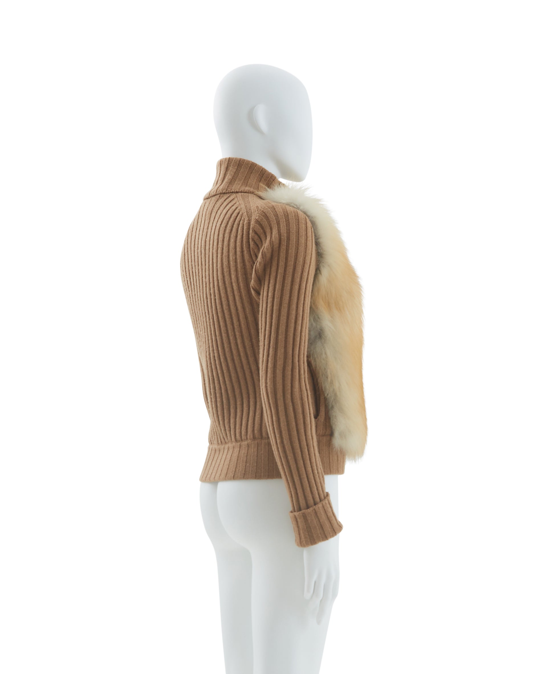 - Camel fox fur knitted cardigan