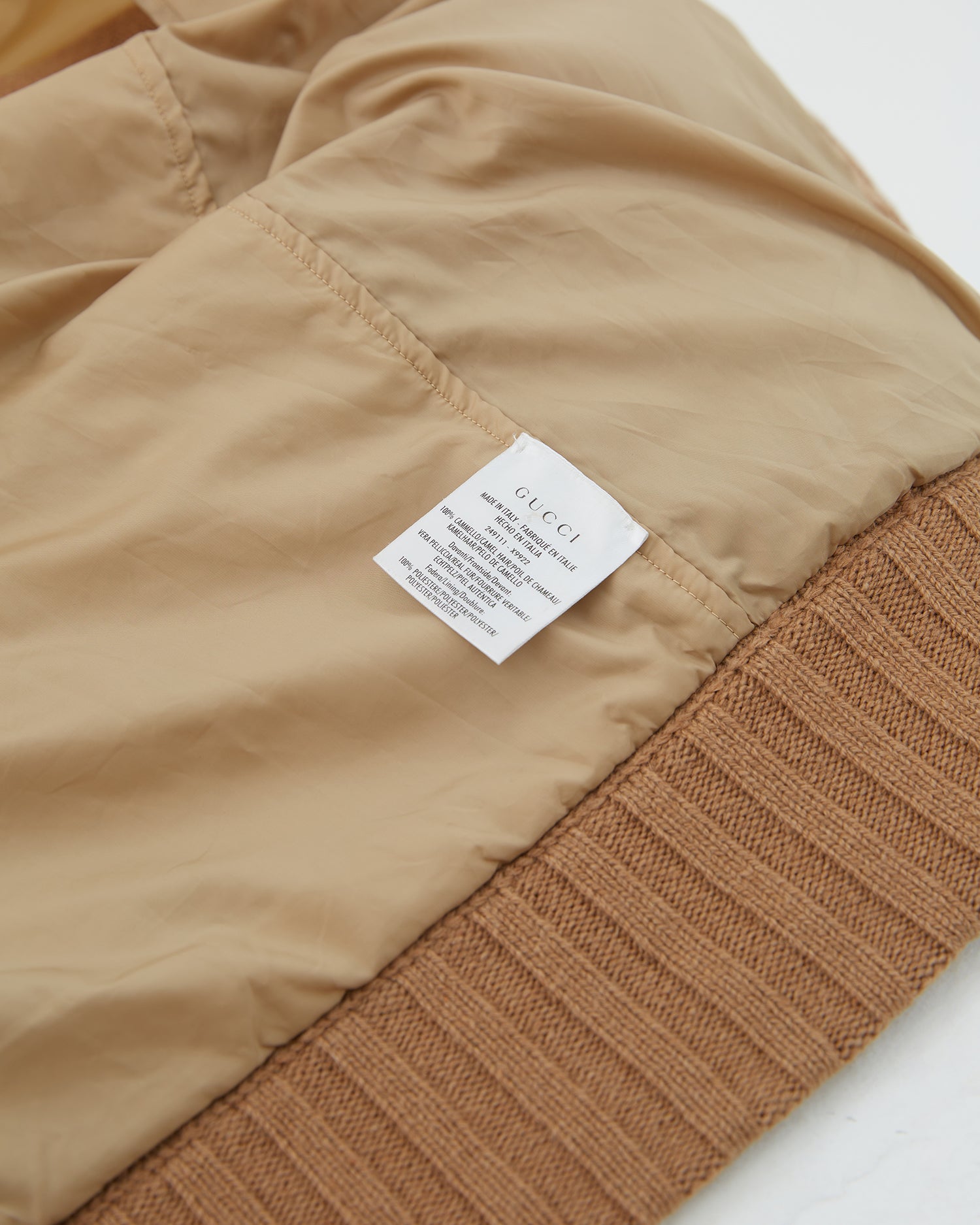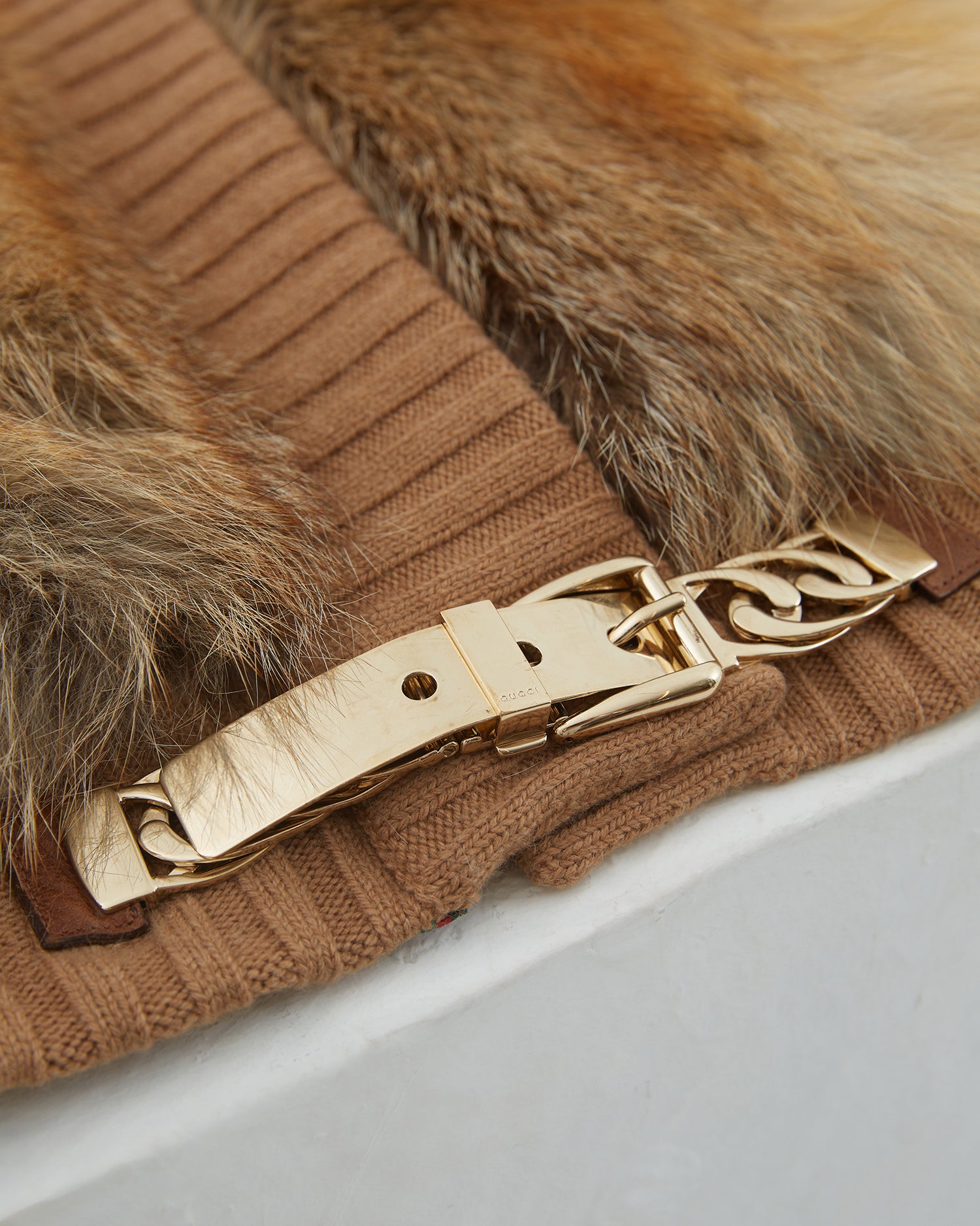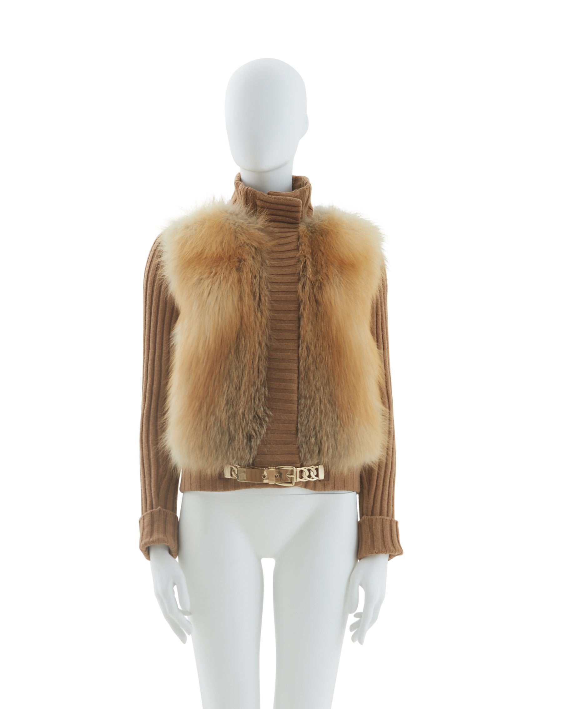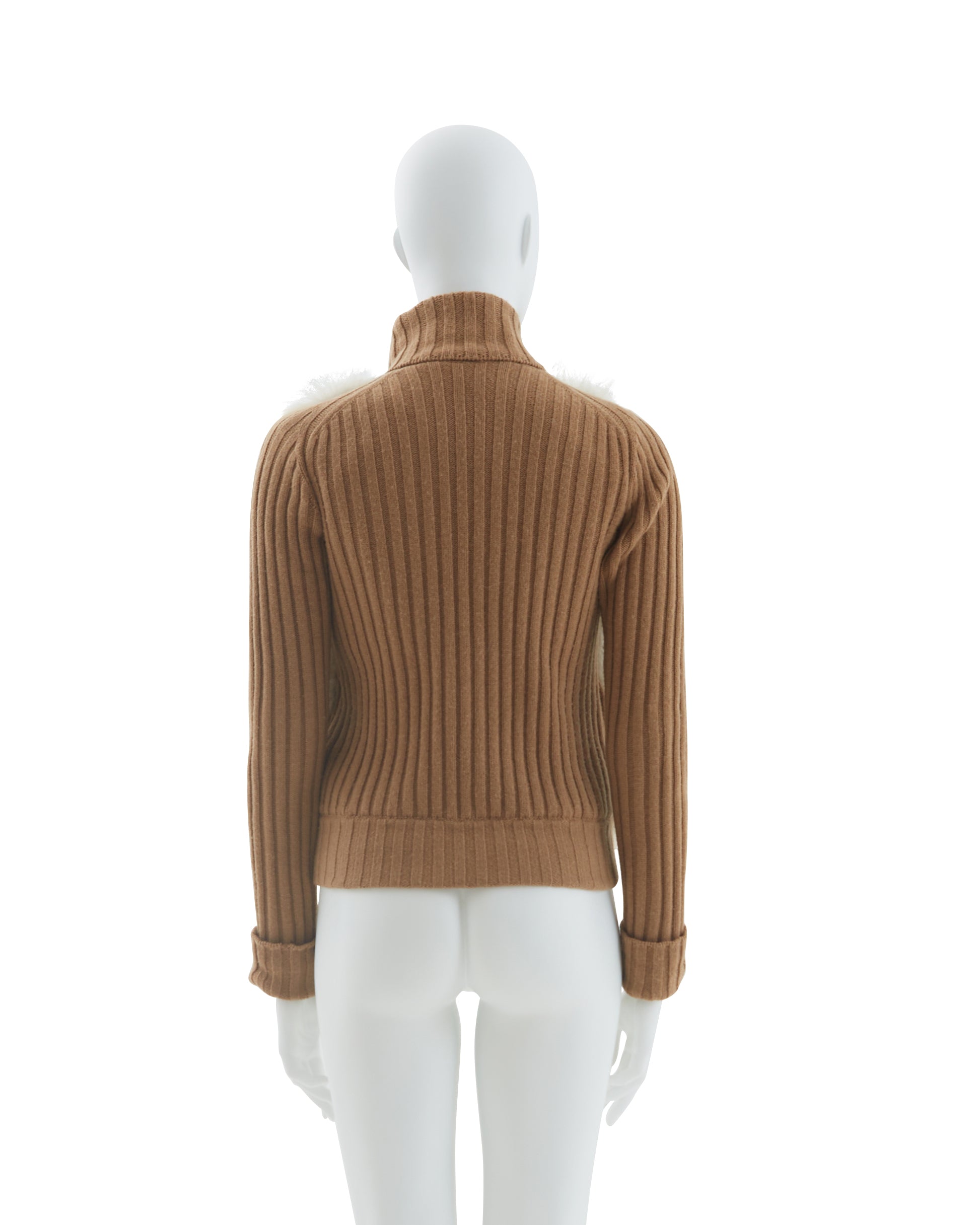 - Camel fox fur knitted cardigan