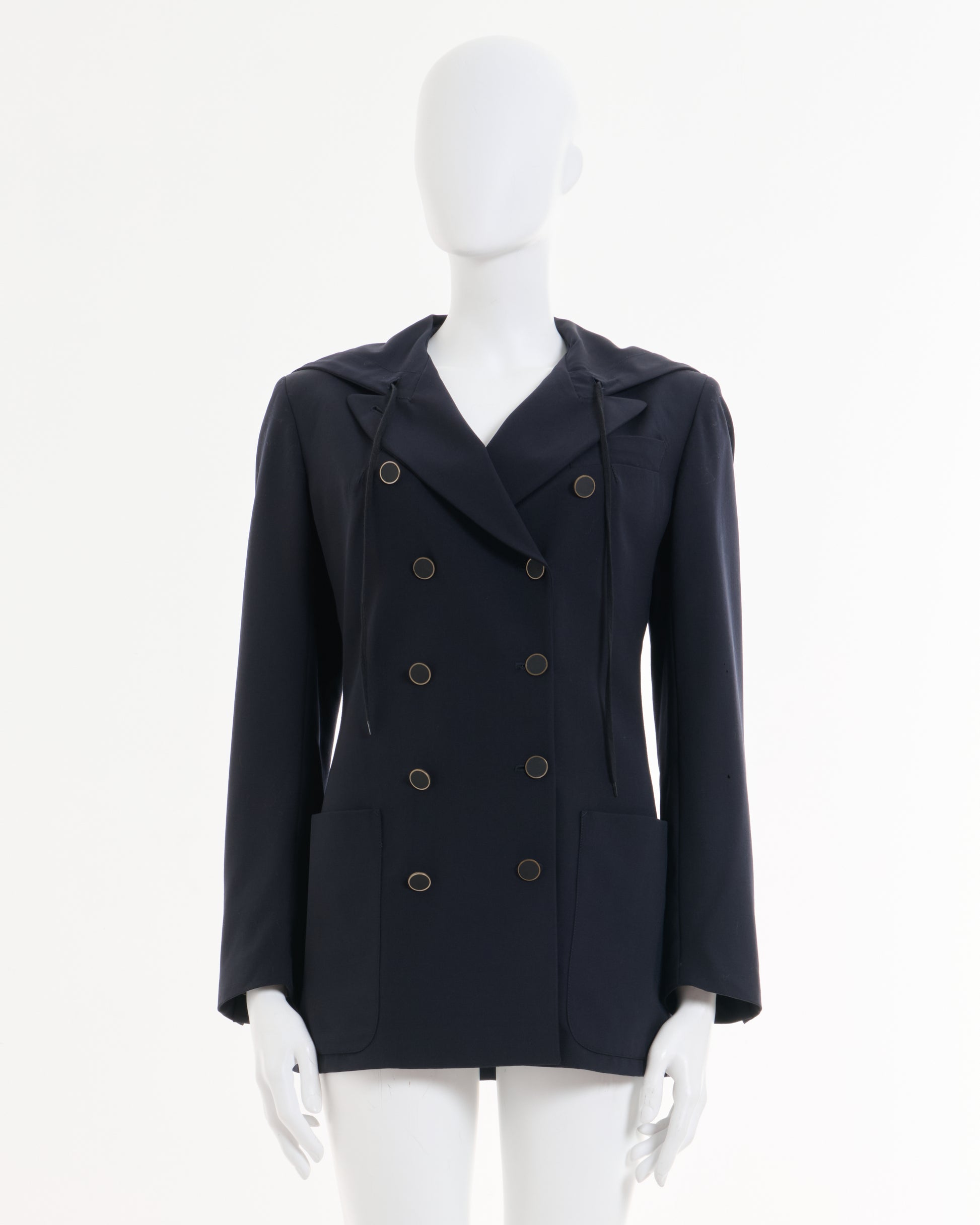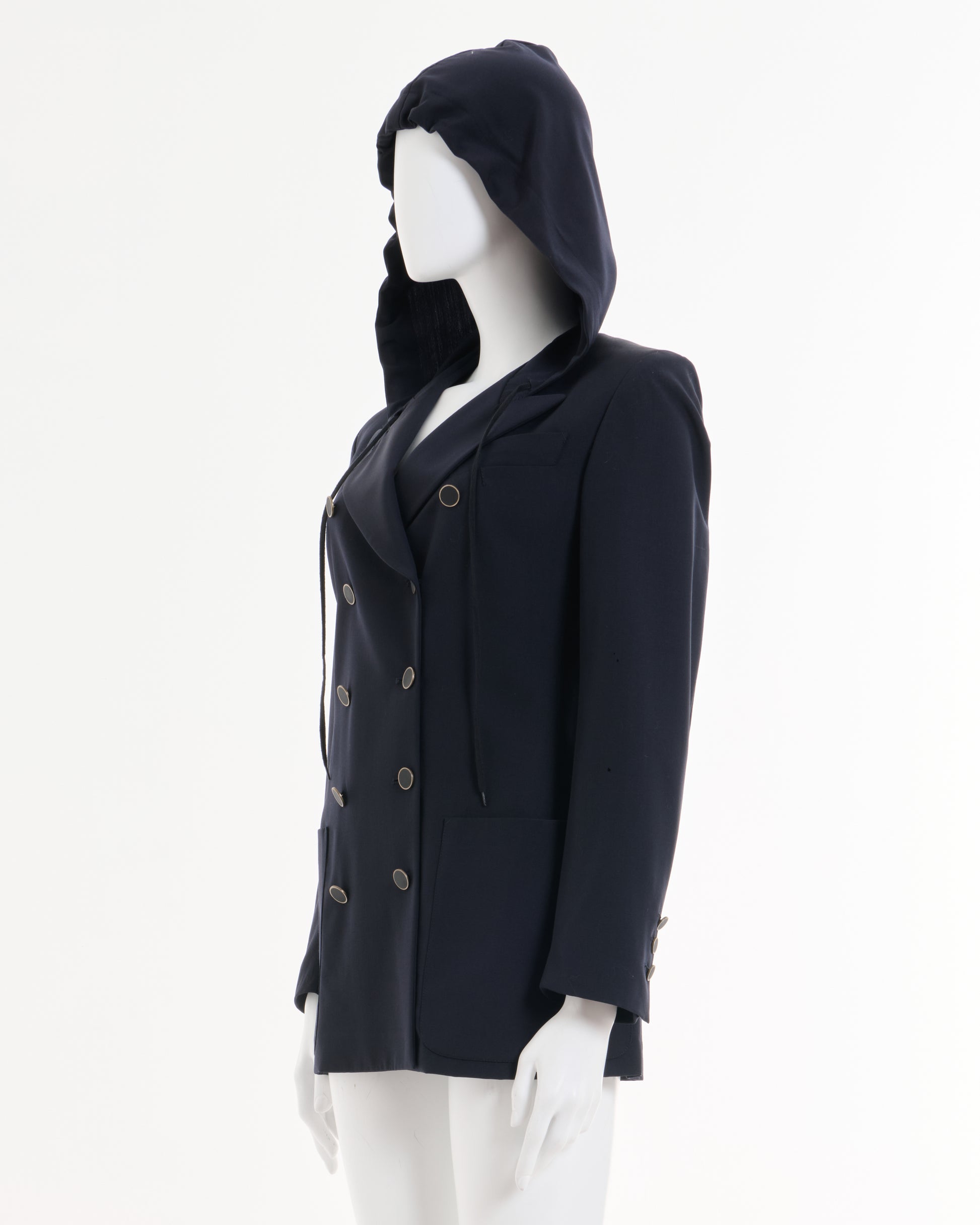- Jean Paul Gaultier Blue Double Breasted Hooded Blazer