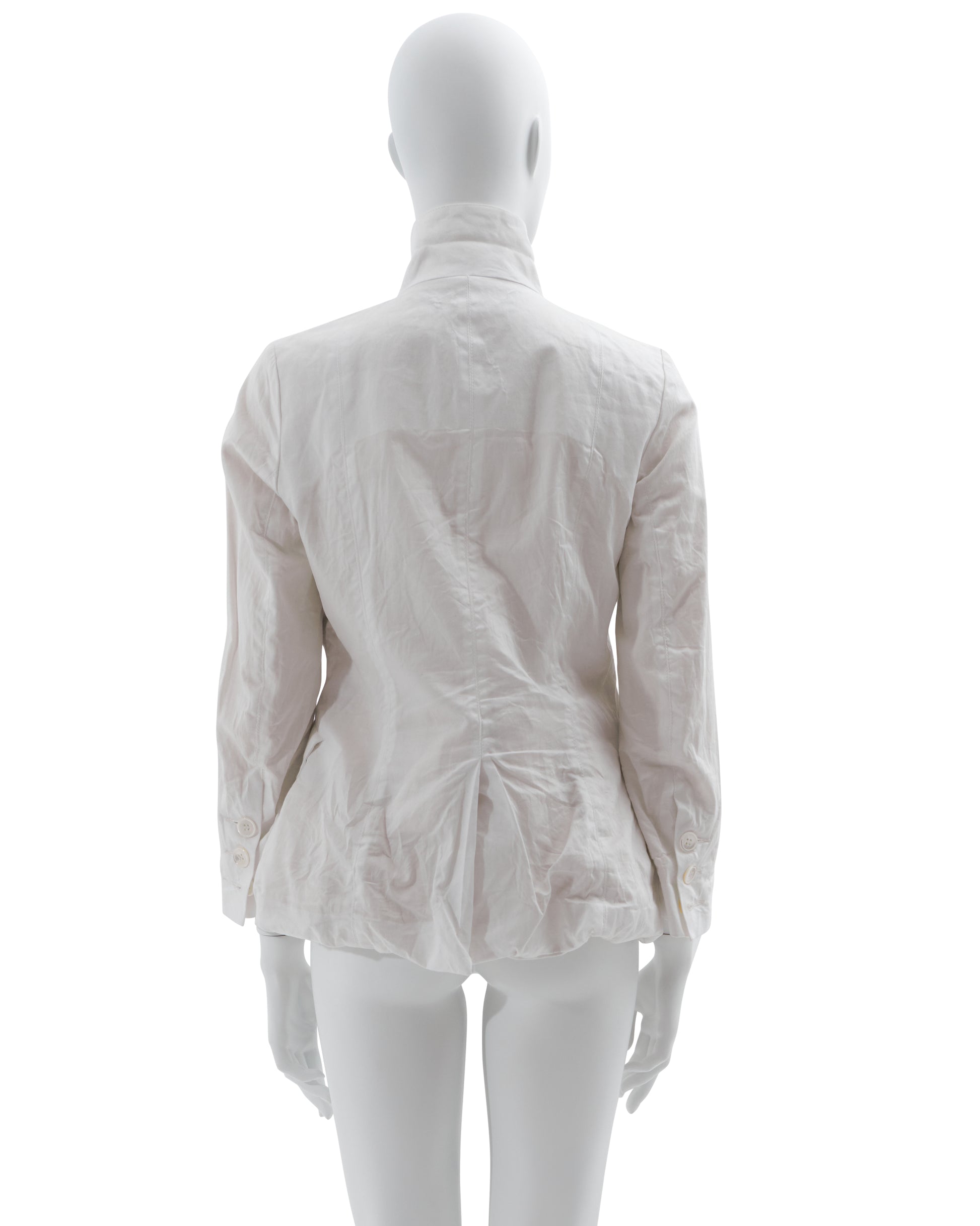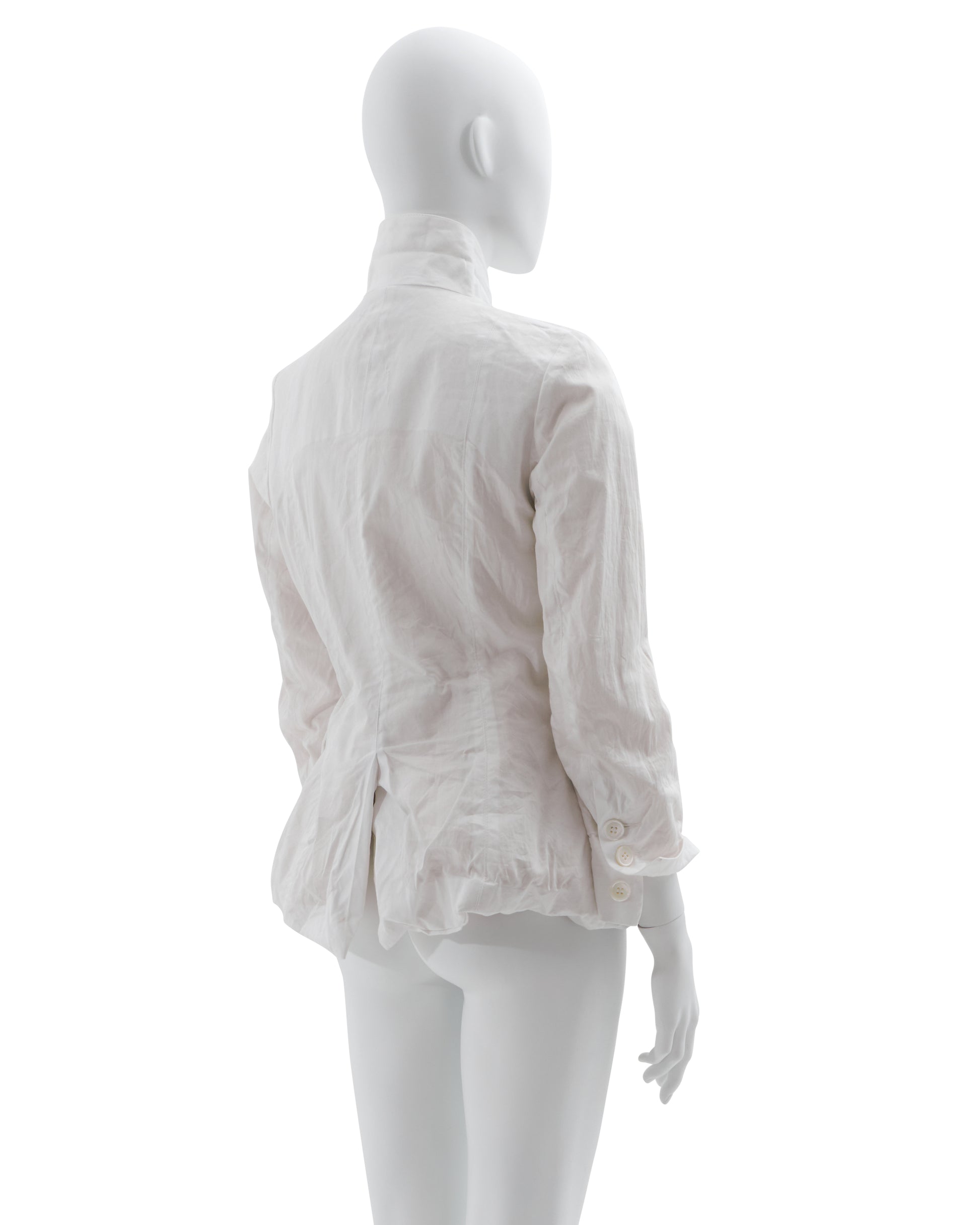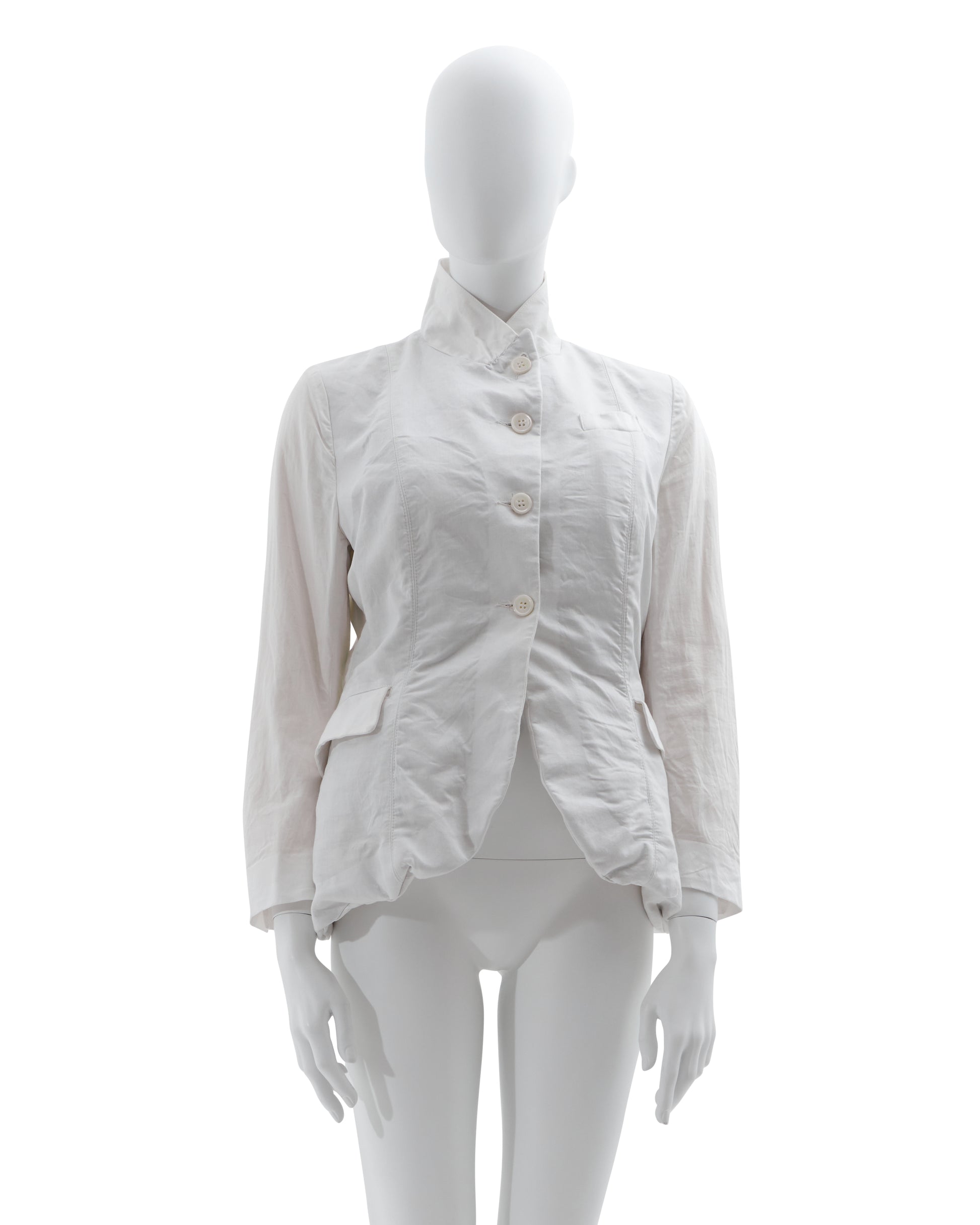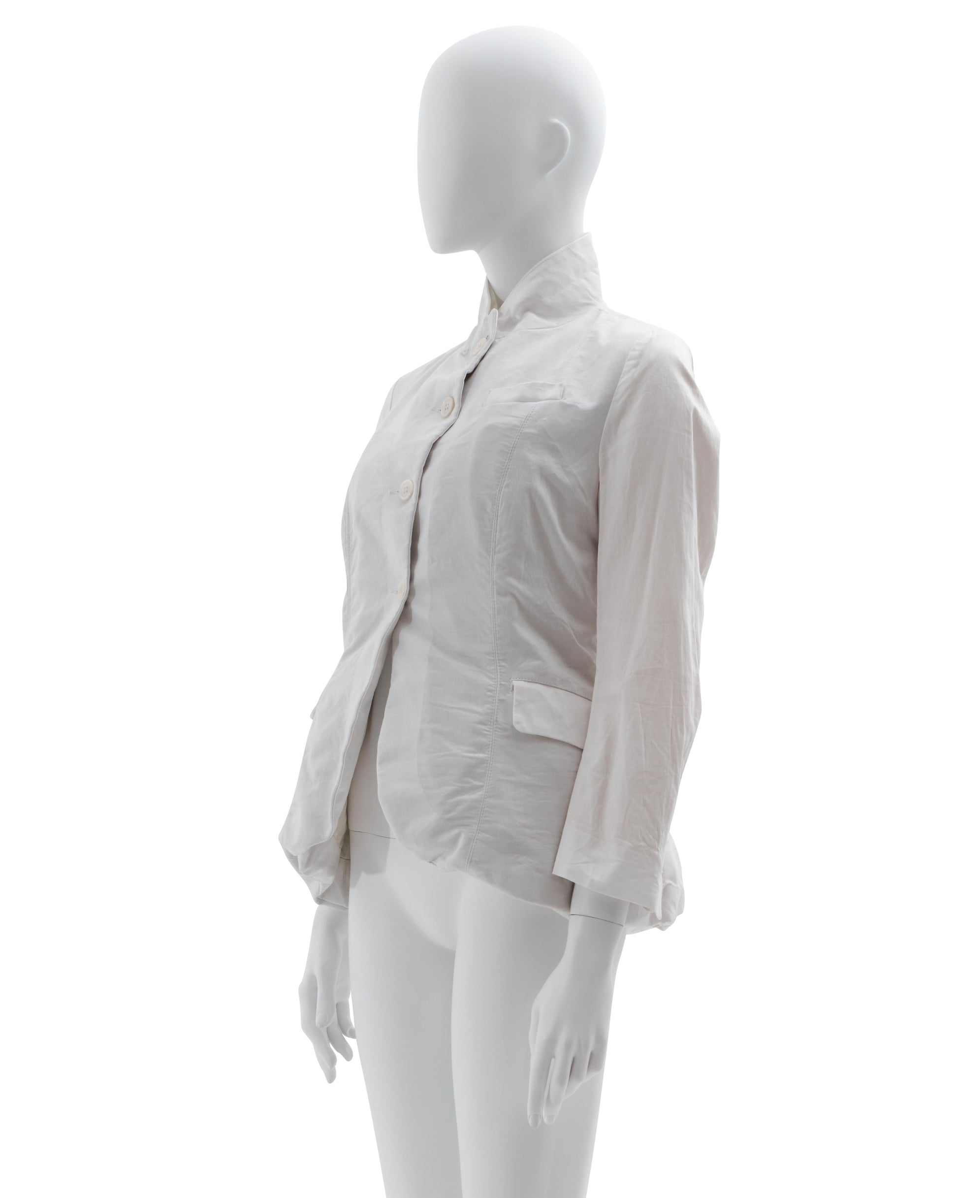 - The jacket features front flip flap pockets, buttoned cuffs and split back hem