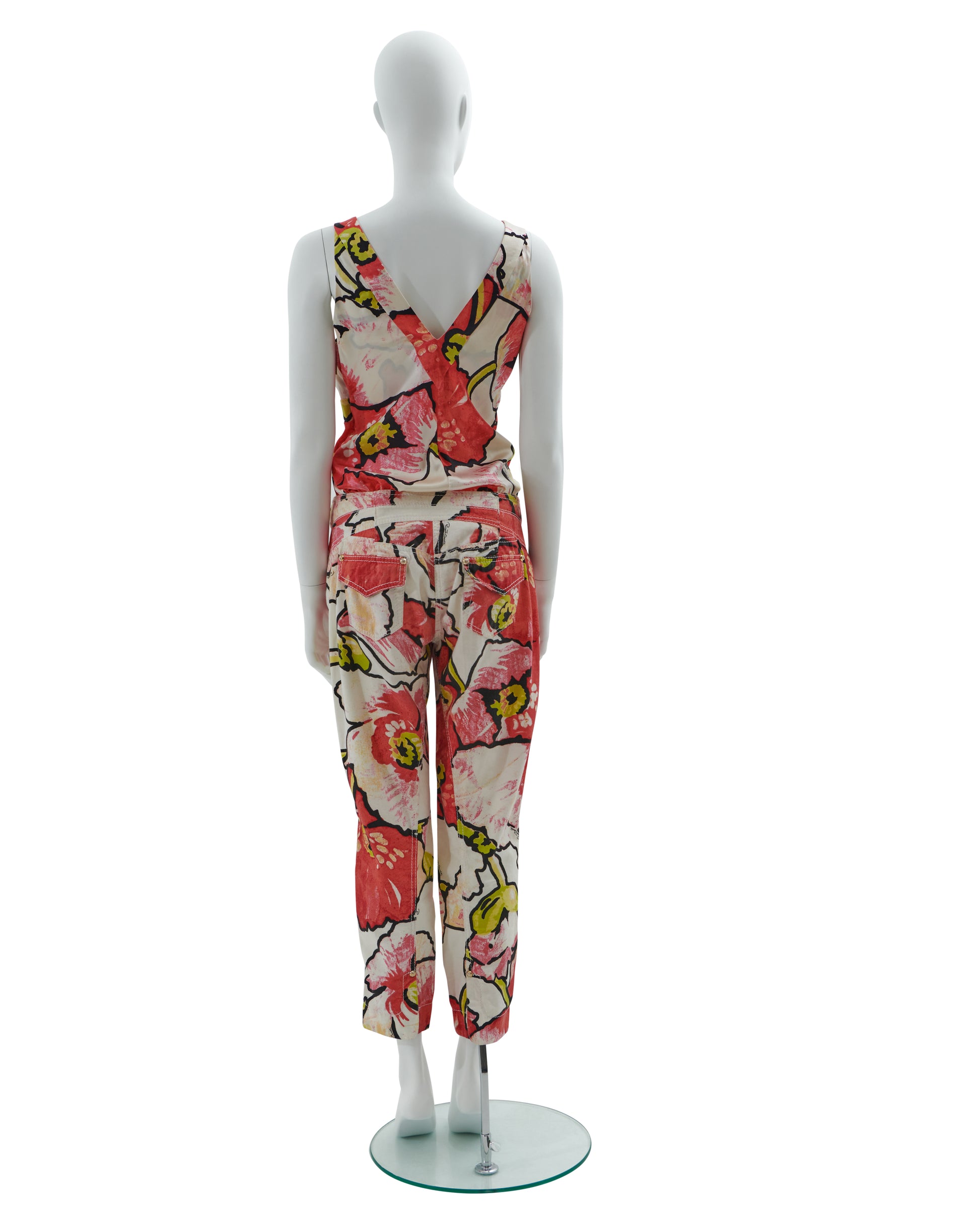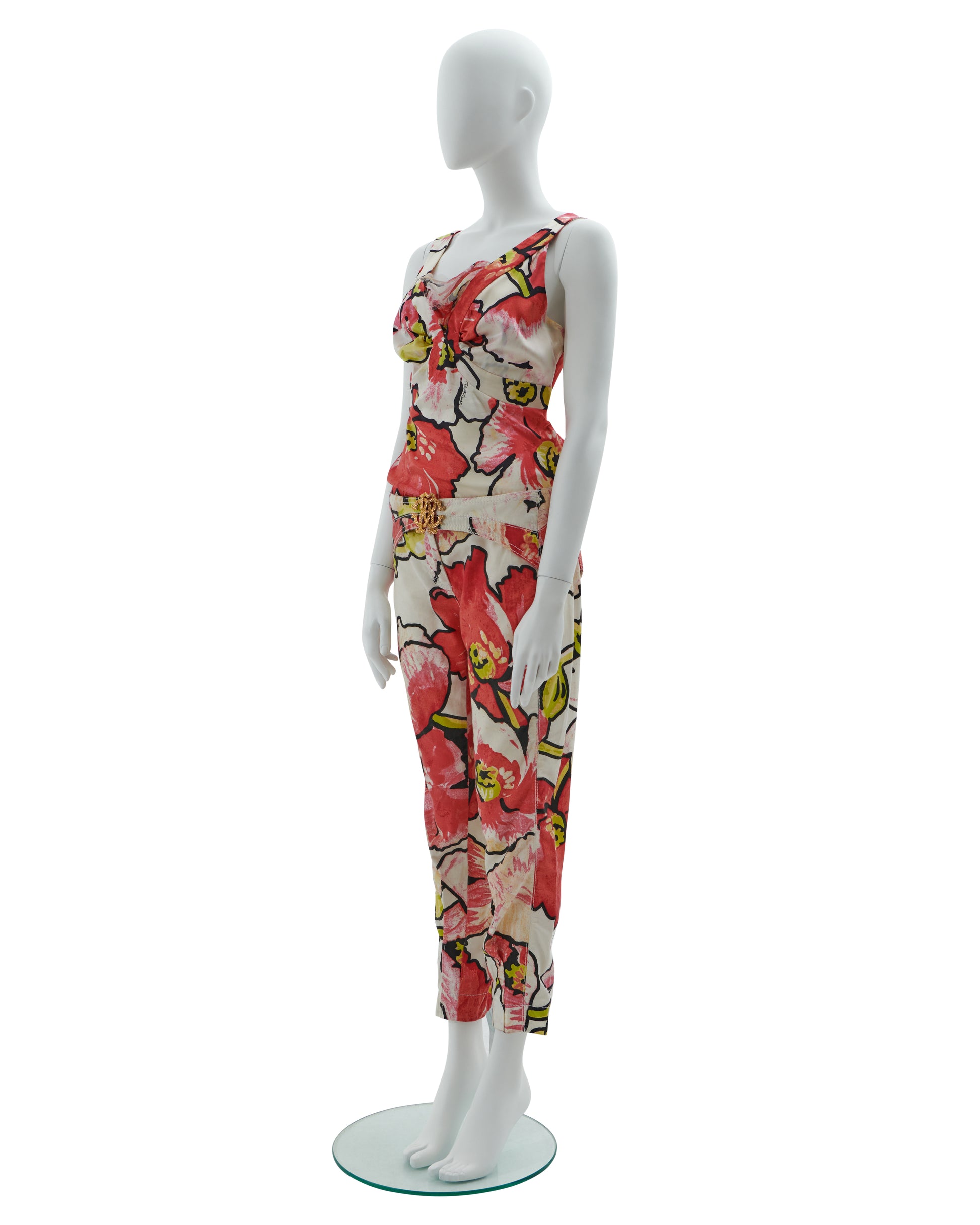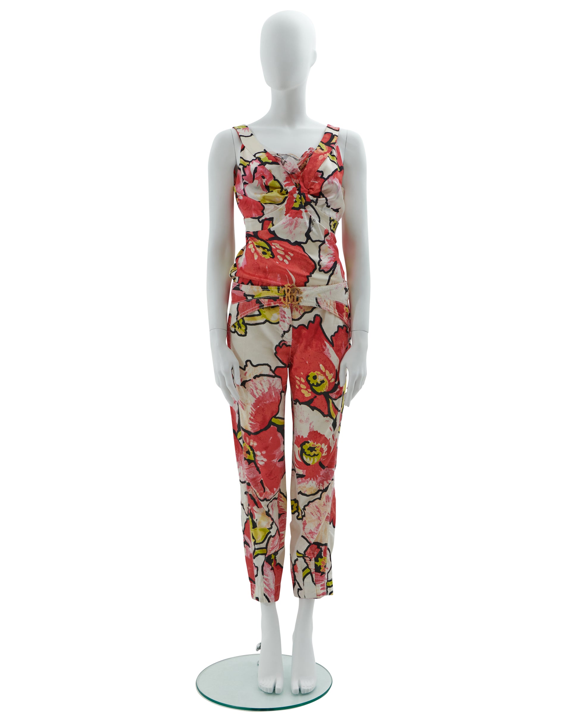 - Roberto Cavalli red floral print top and pants set