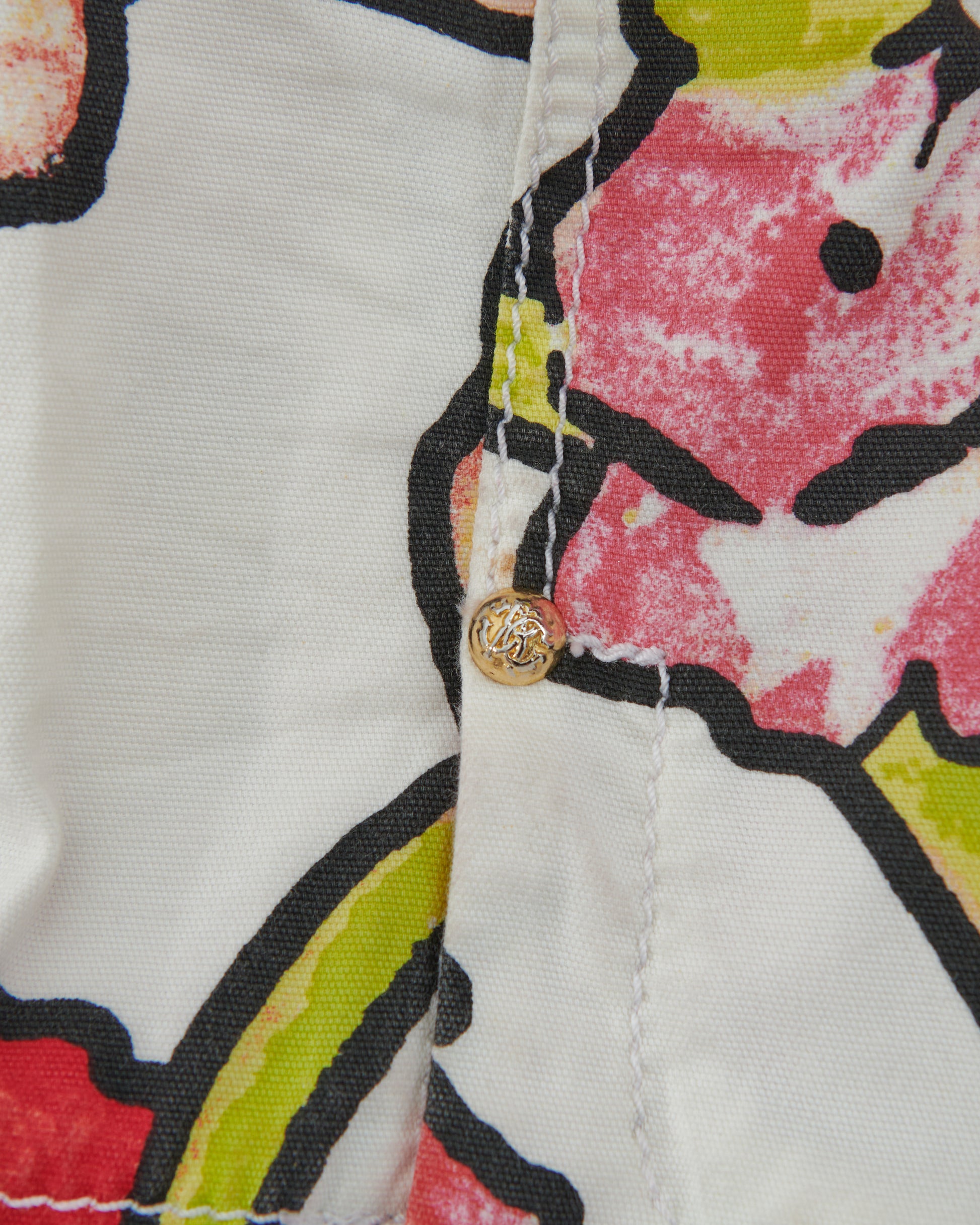 - Cotton printed denim pants with an attached logo gold plated belt