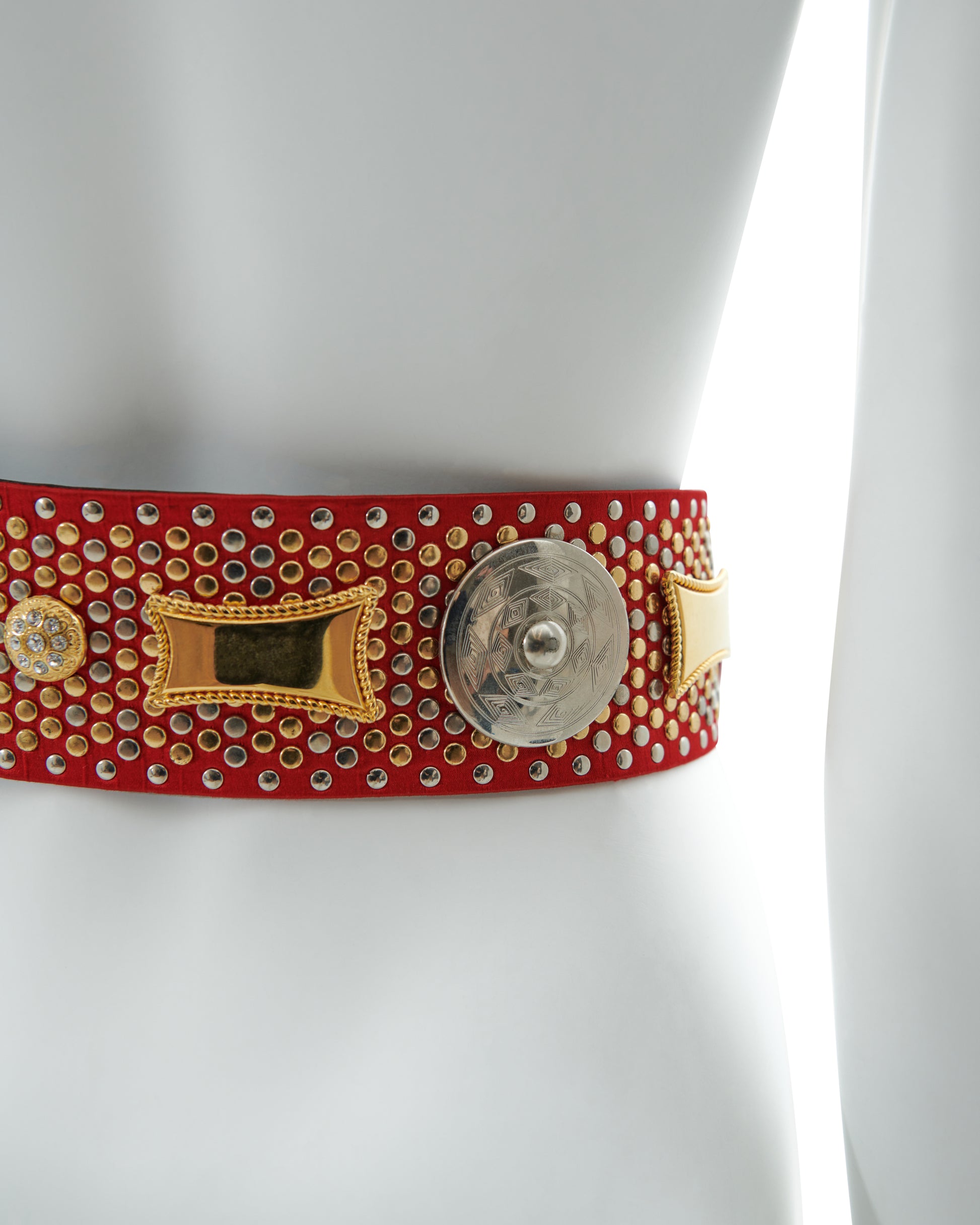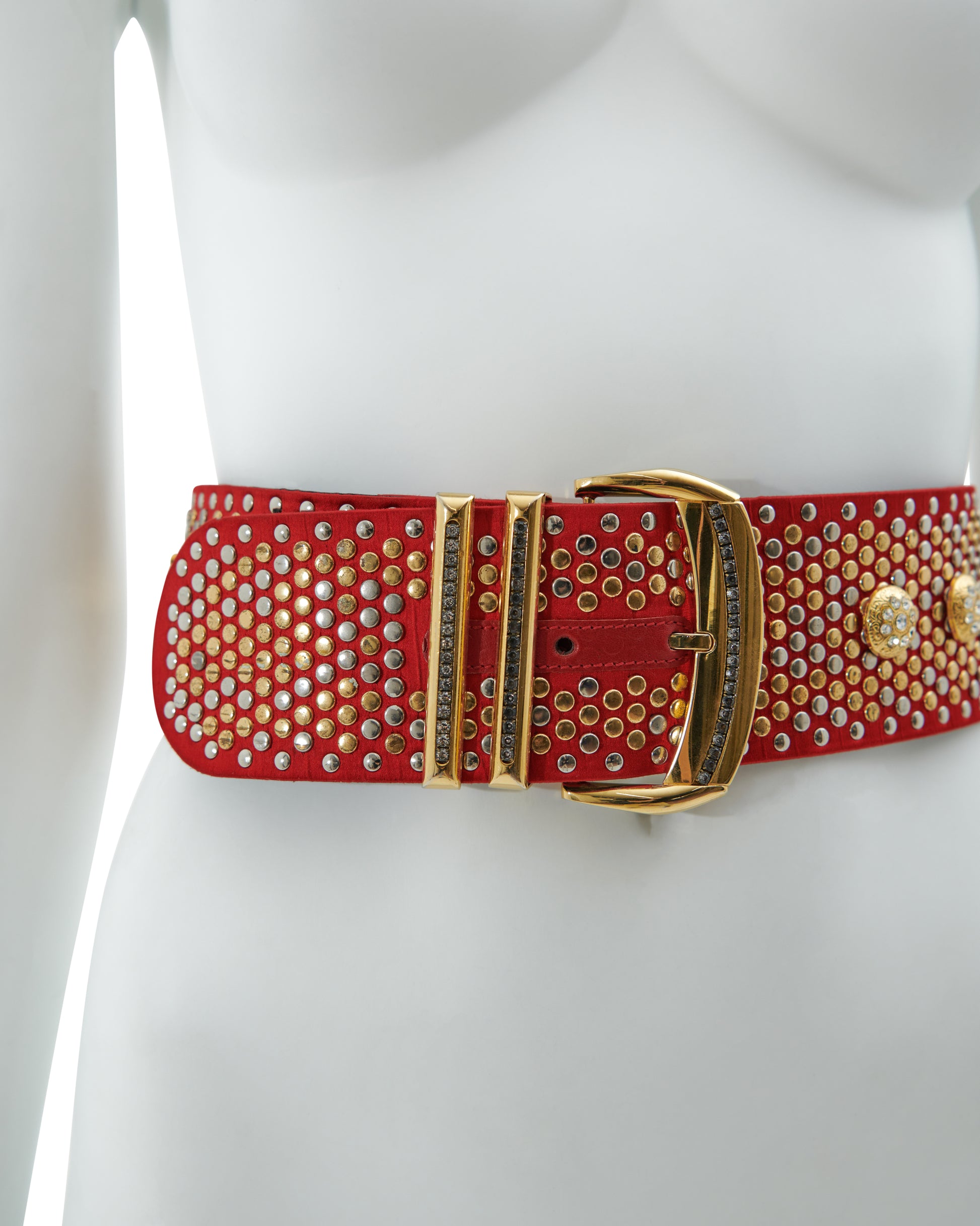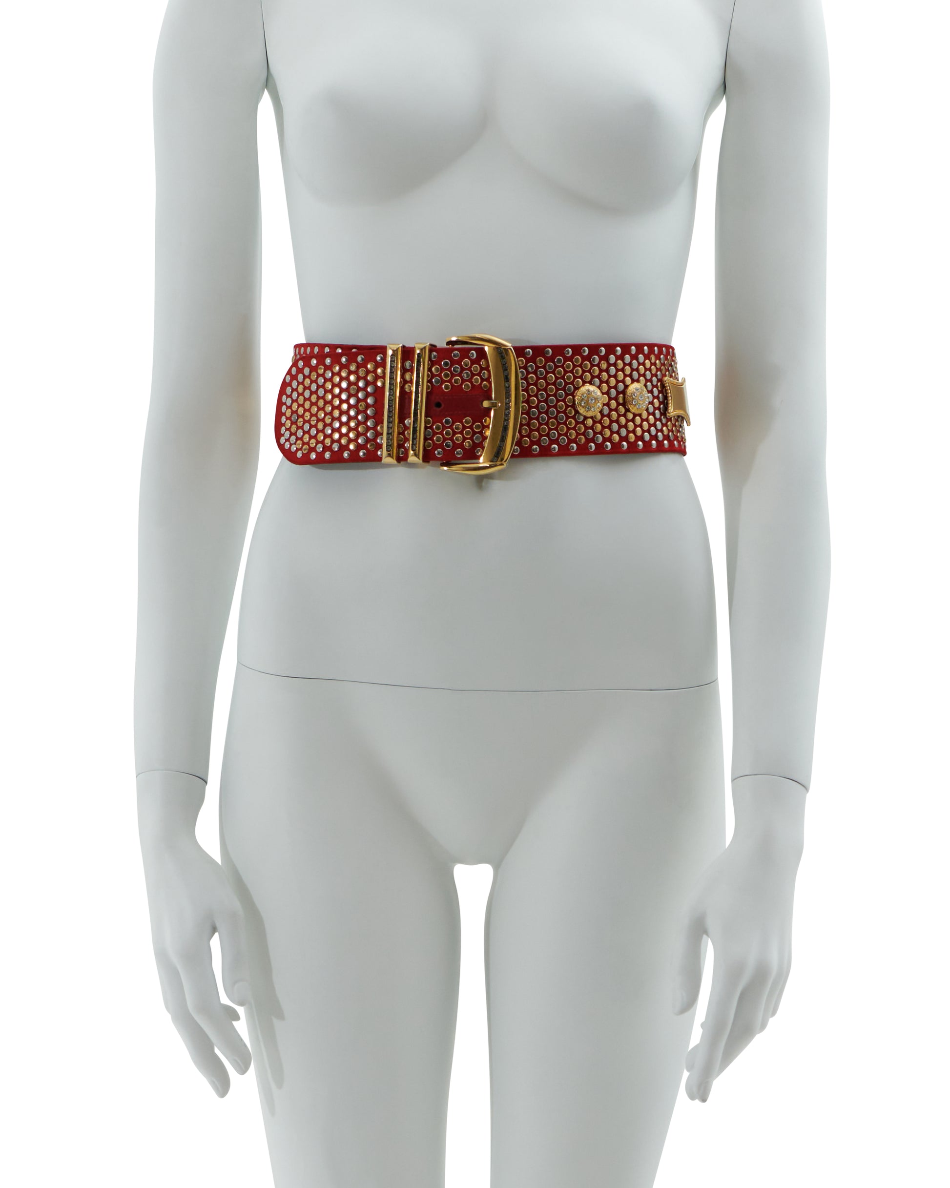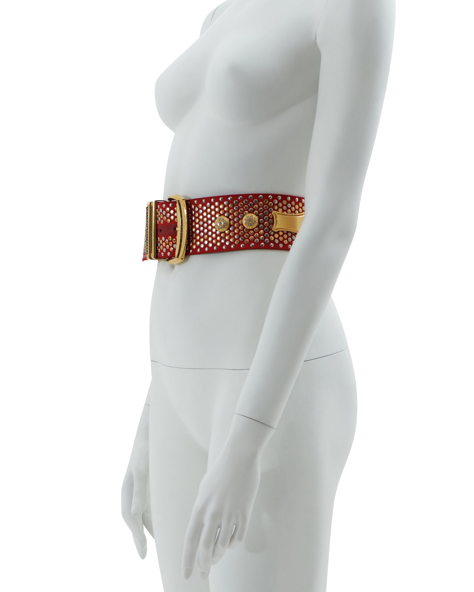 - Made of thick red cotton and leather featuring a gold-tone buckle embellished with black and white Swarovski