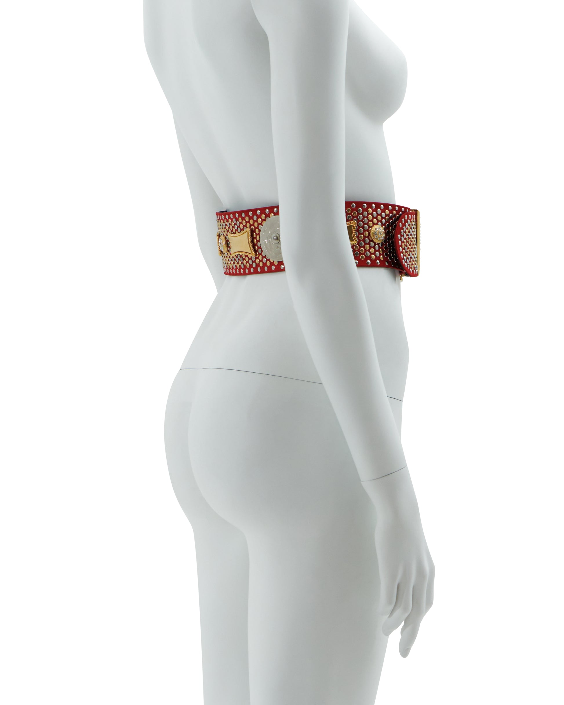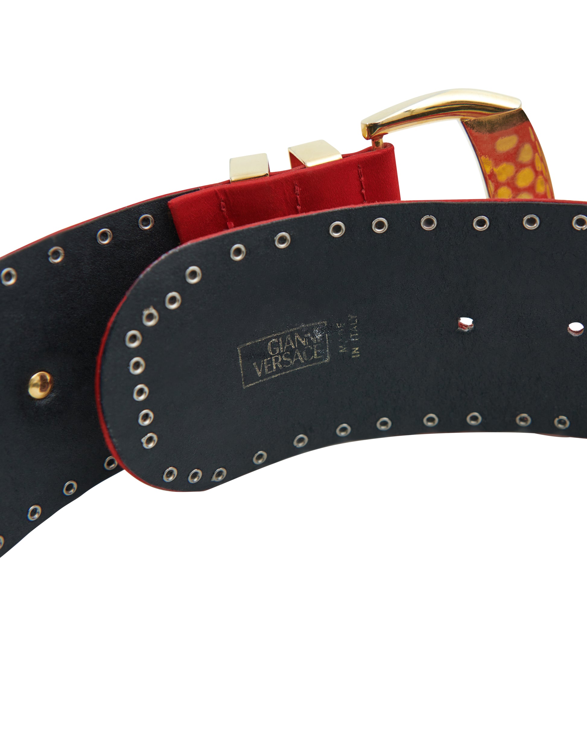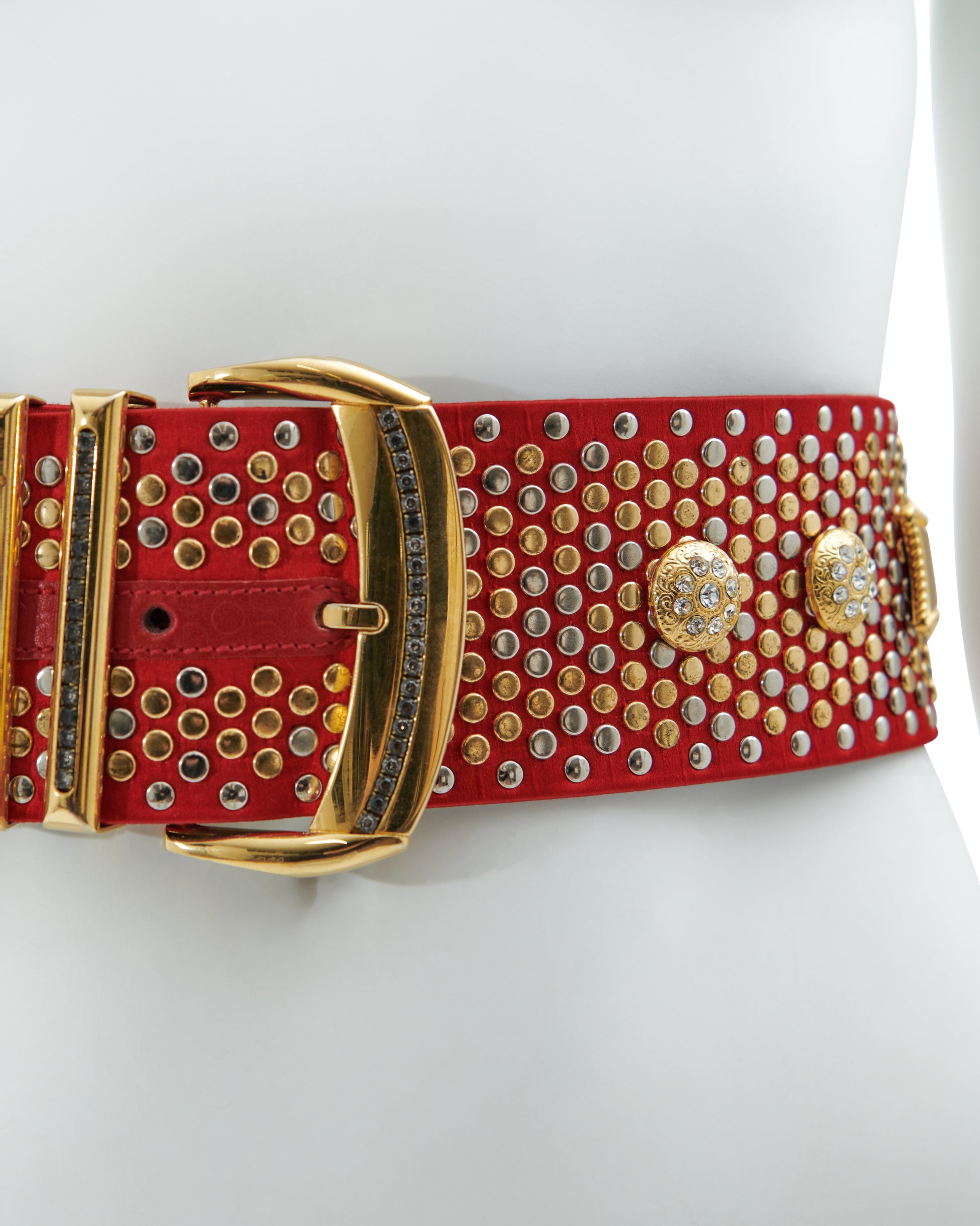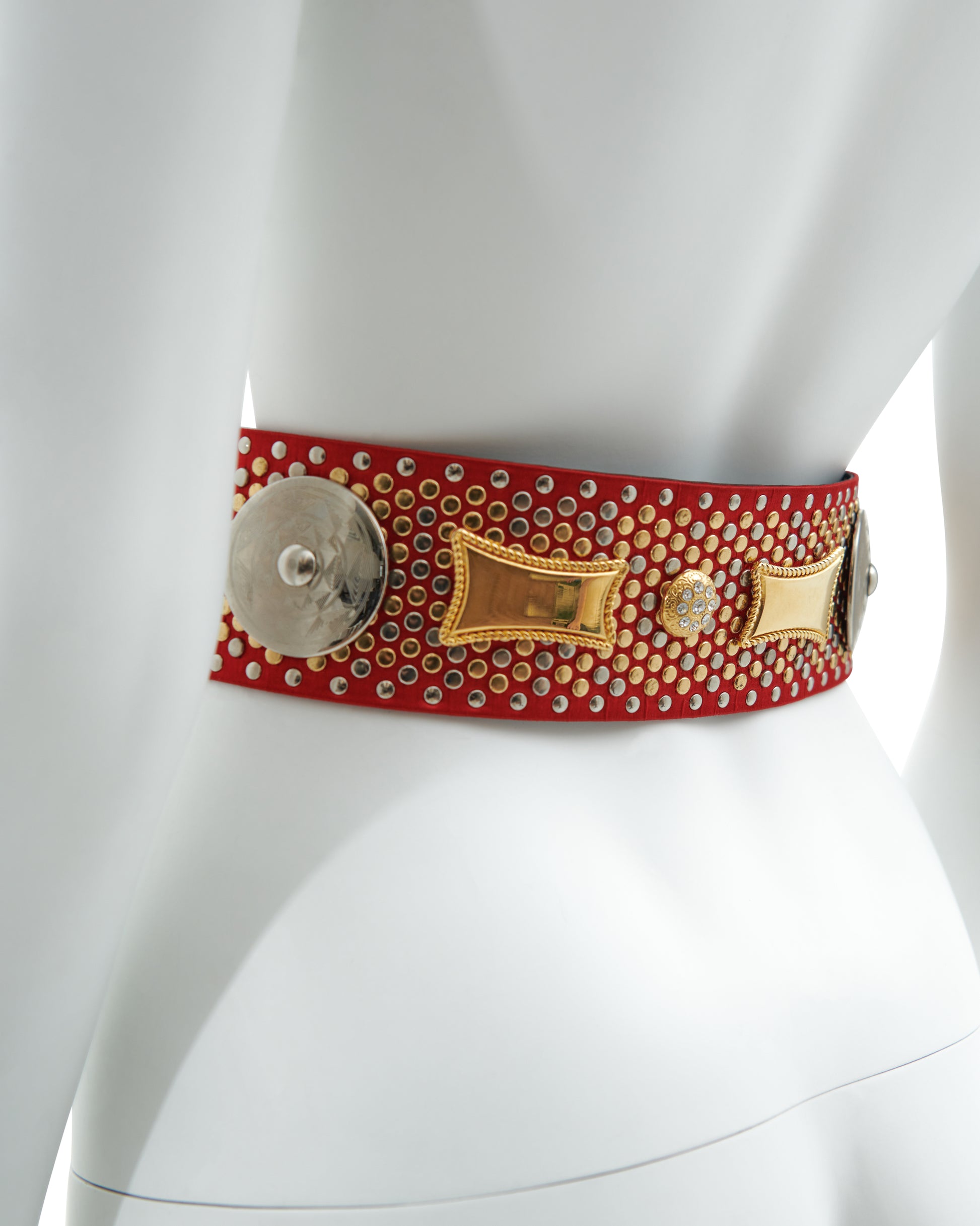 - Made of thick red cotton and leather featuring a gold-tone buckle embellished with black and white Swarovski