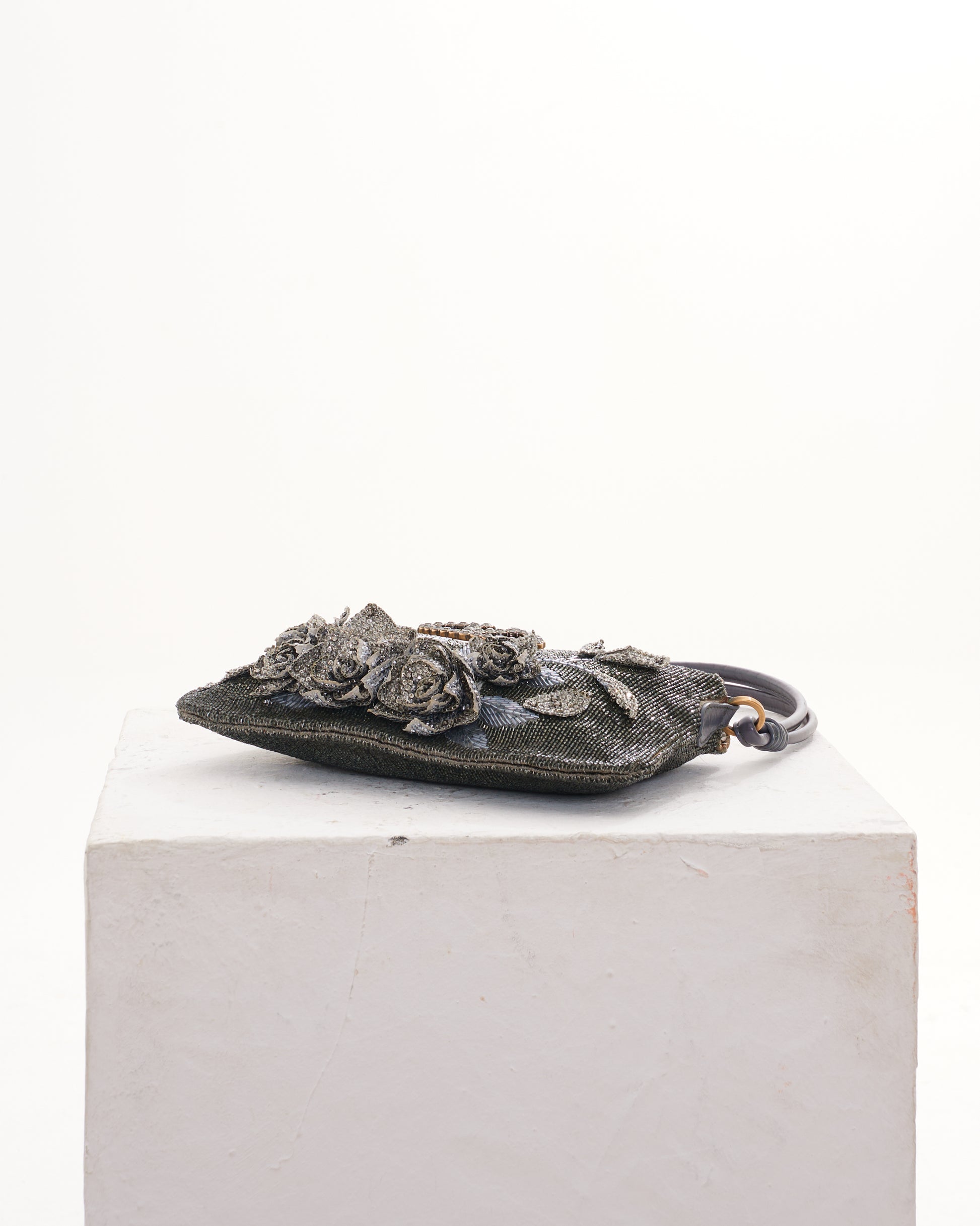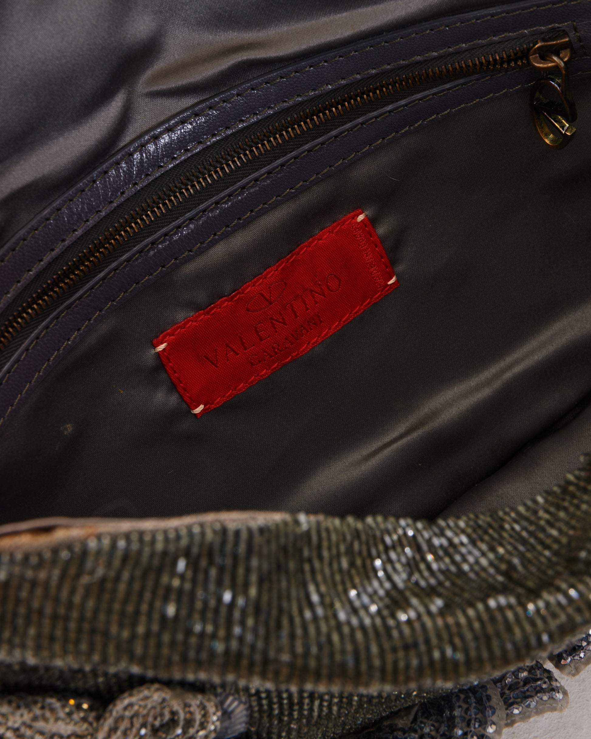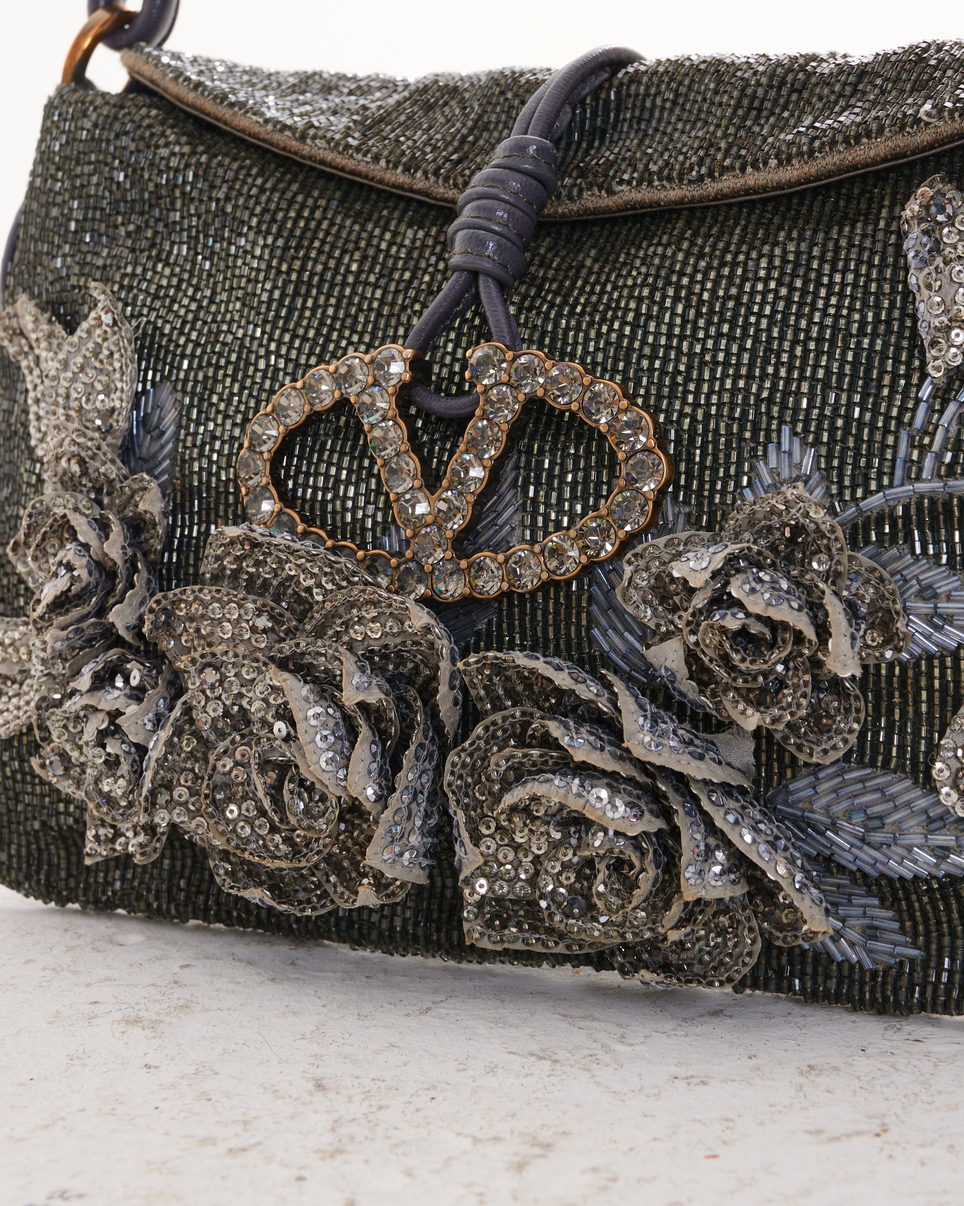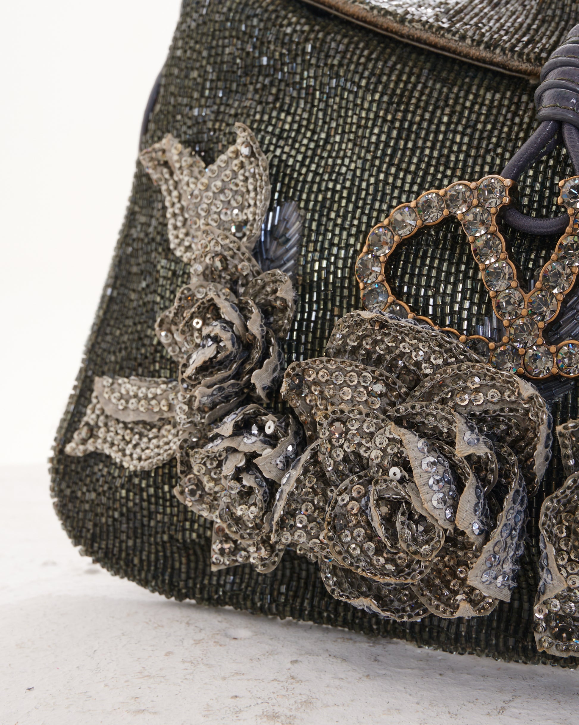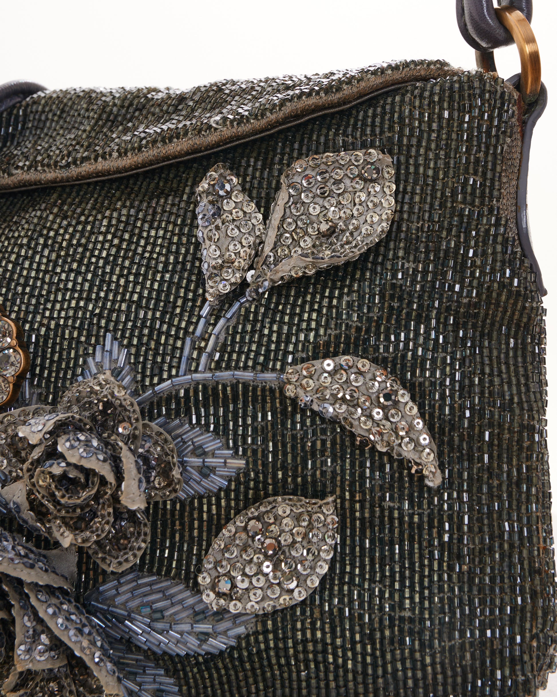 - Grey Beaded and Embroidered Satin Flap Evening Bag