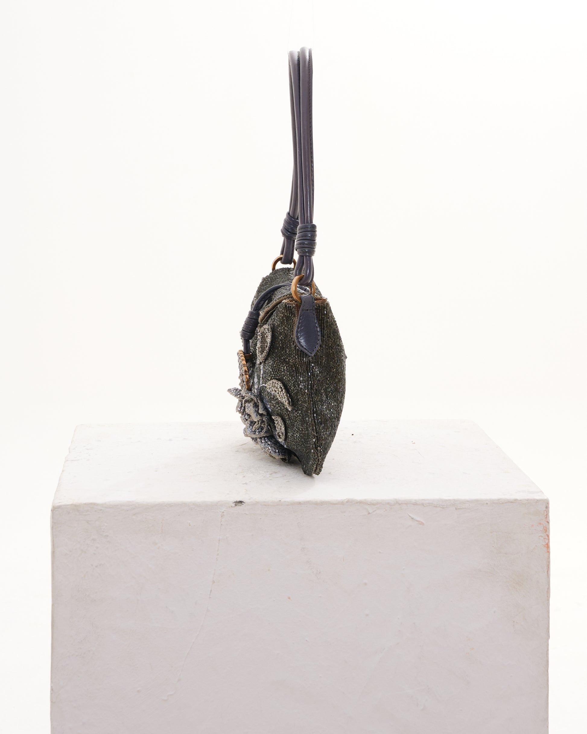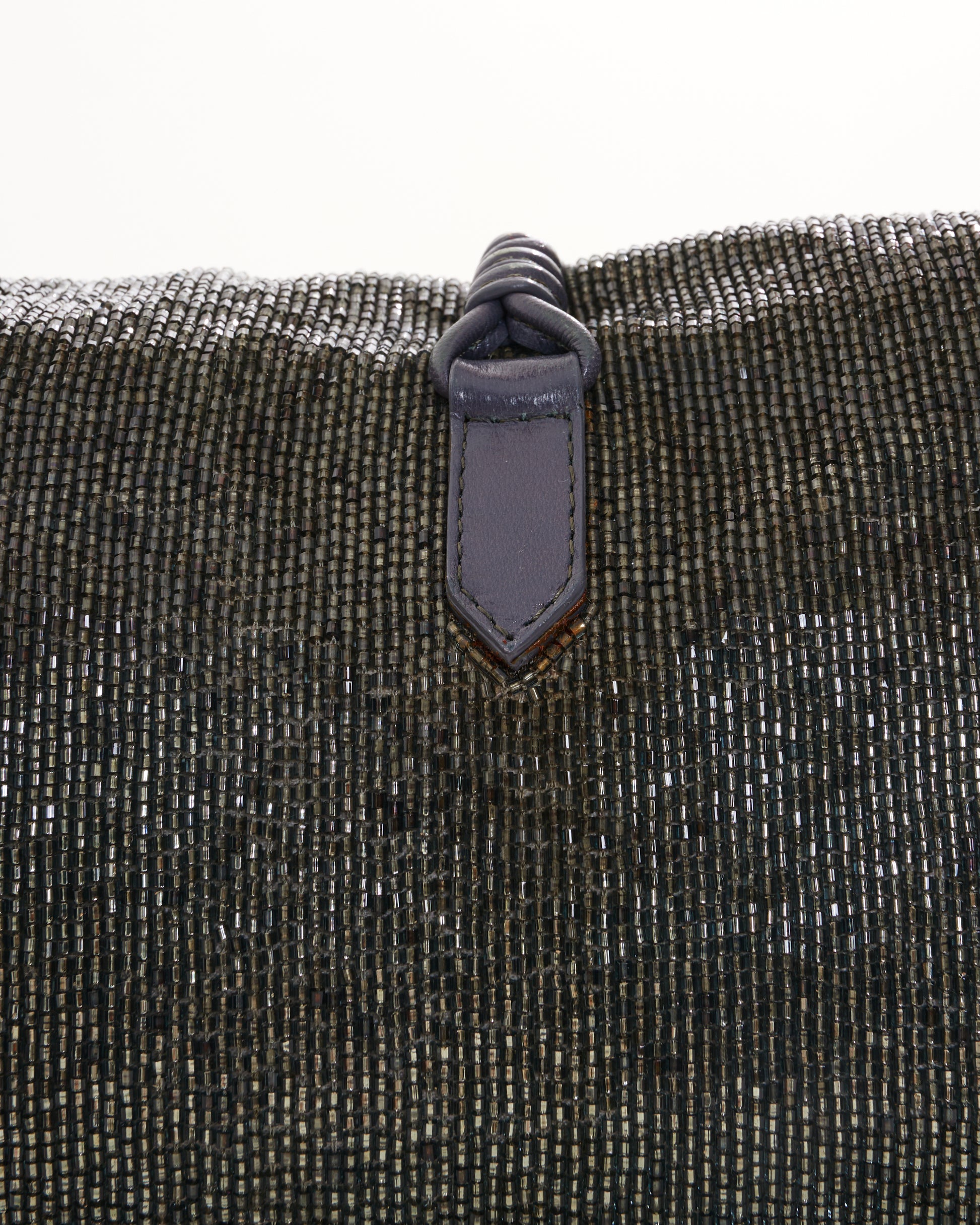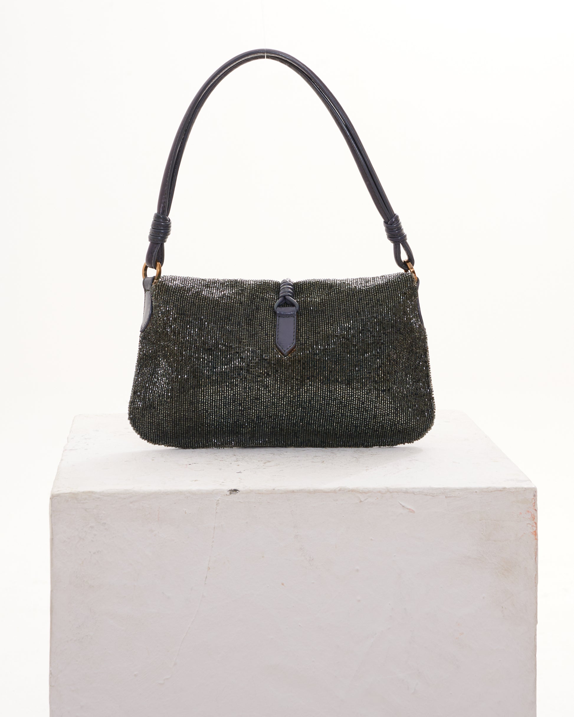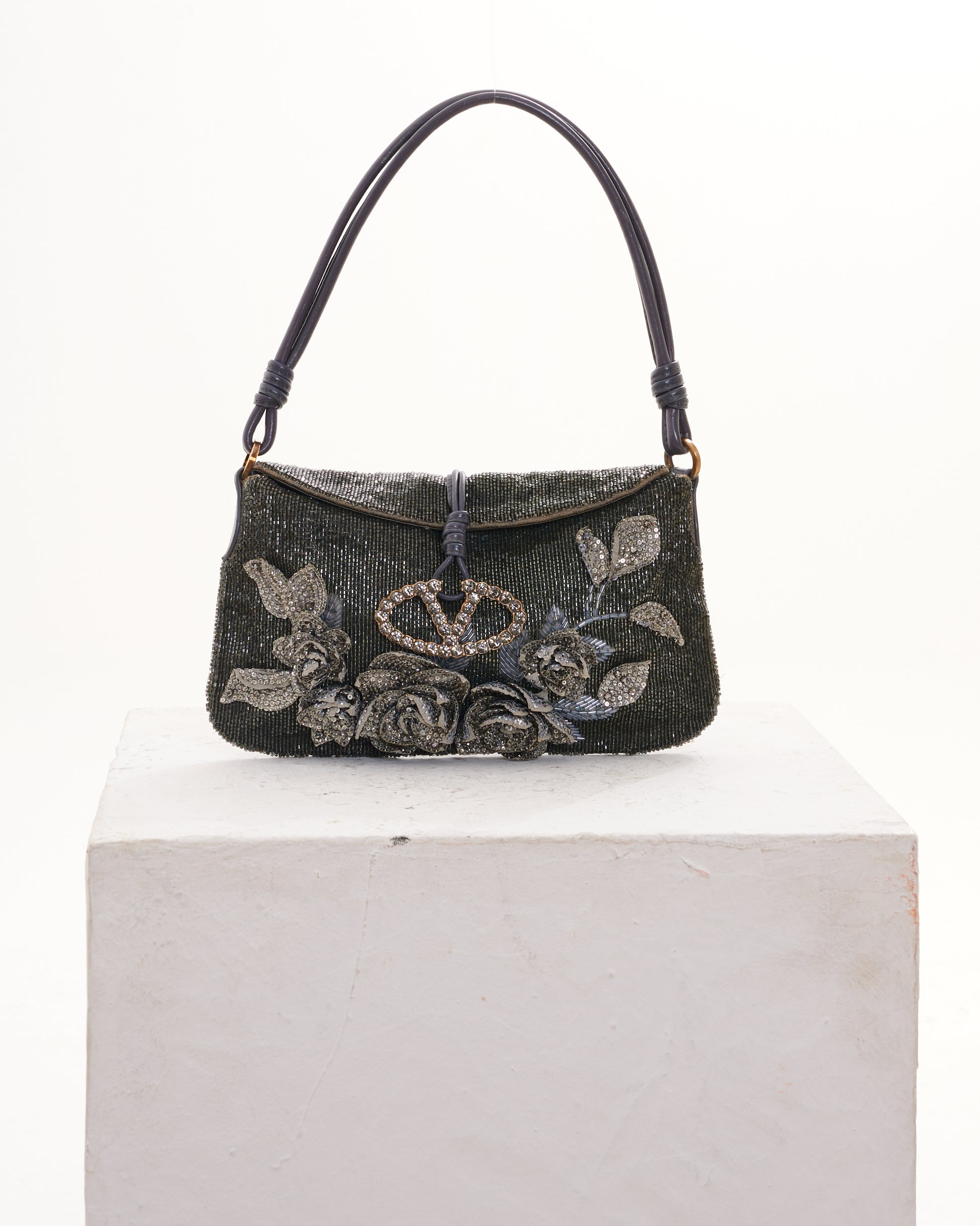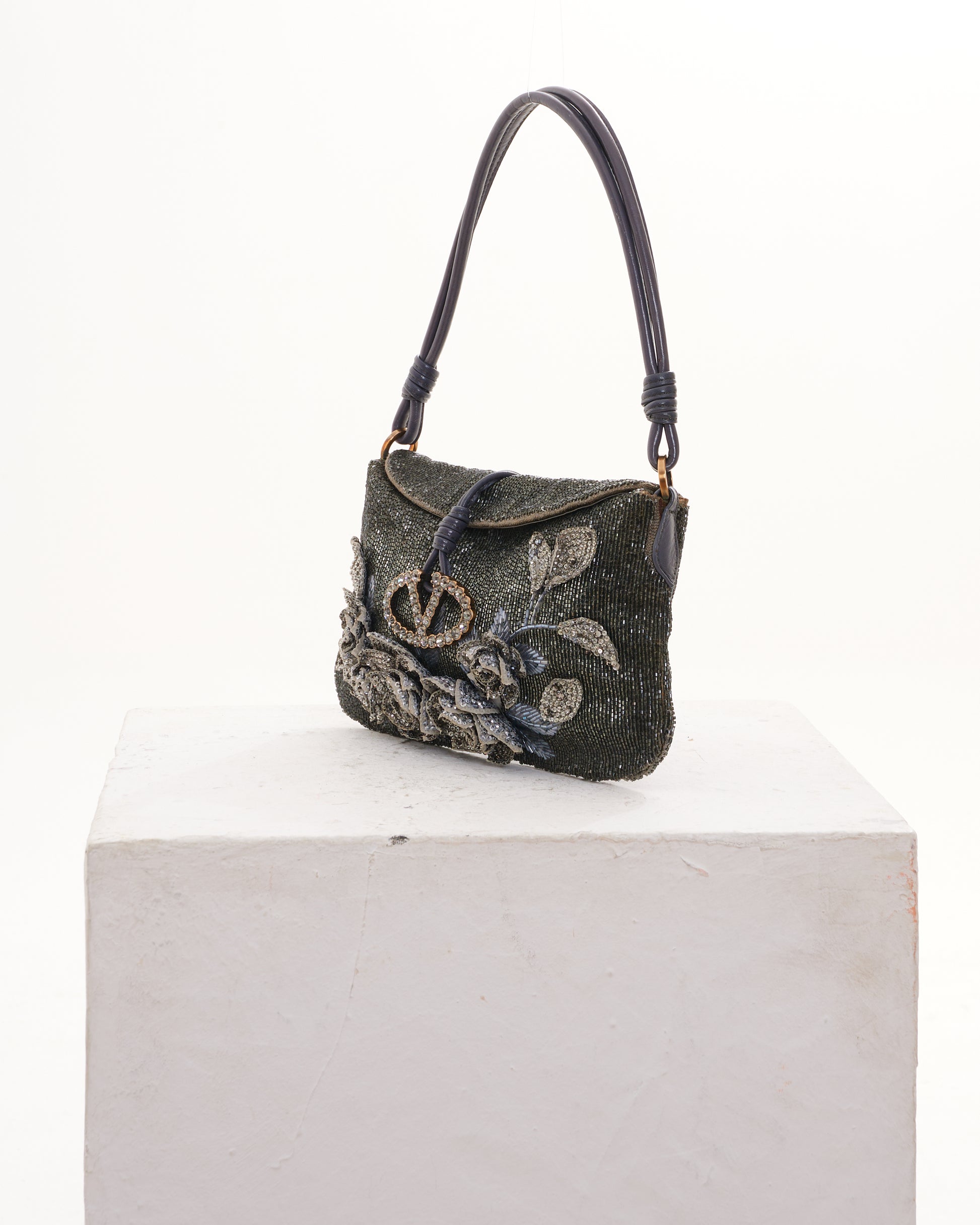 - Grey Beaded and Embroidered Satin Flap Evening Bag
