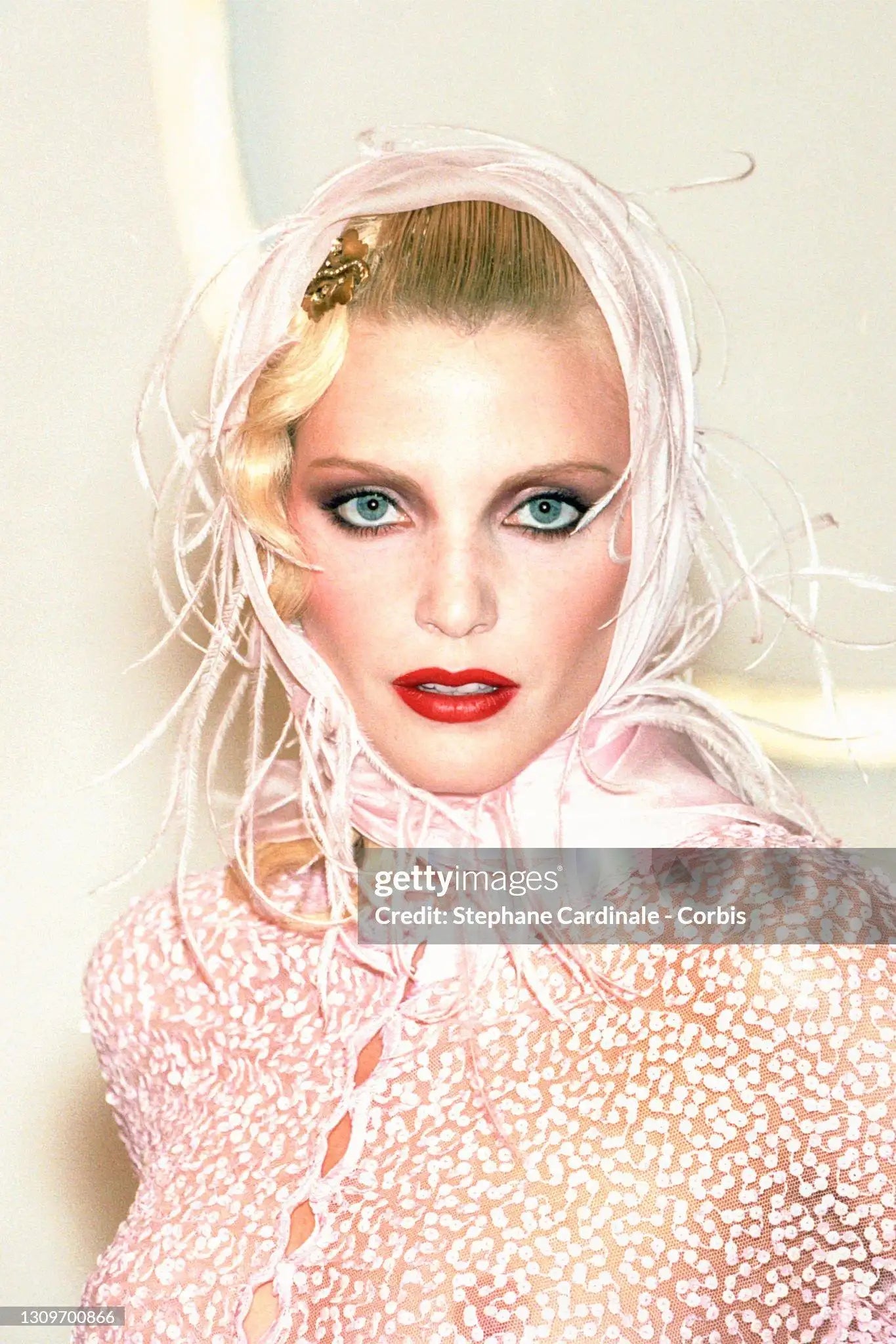 - Pink Silky Organza Feathers Foulard