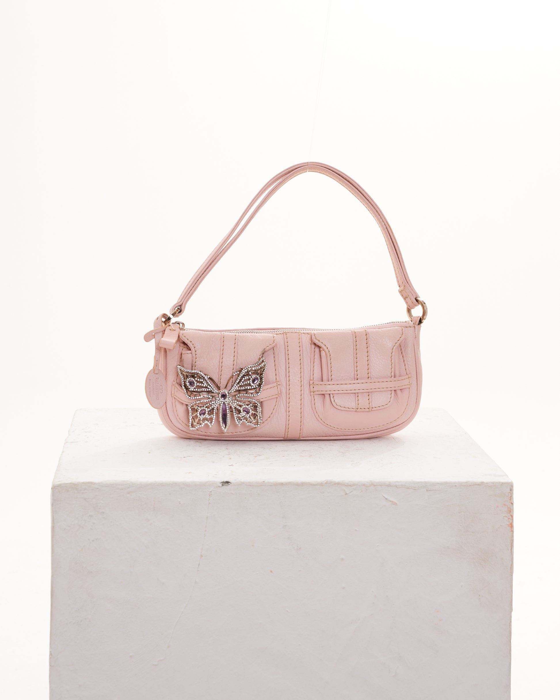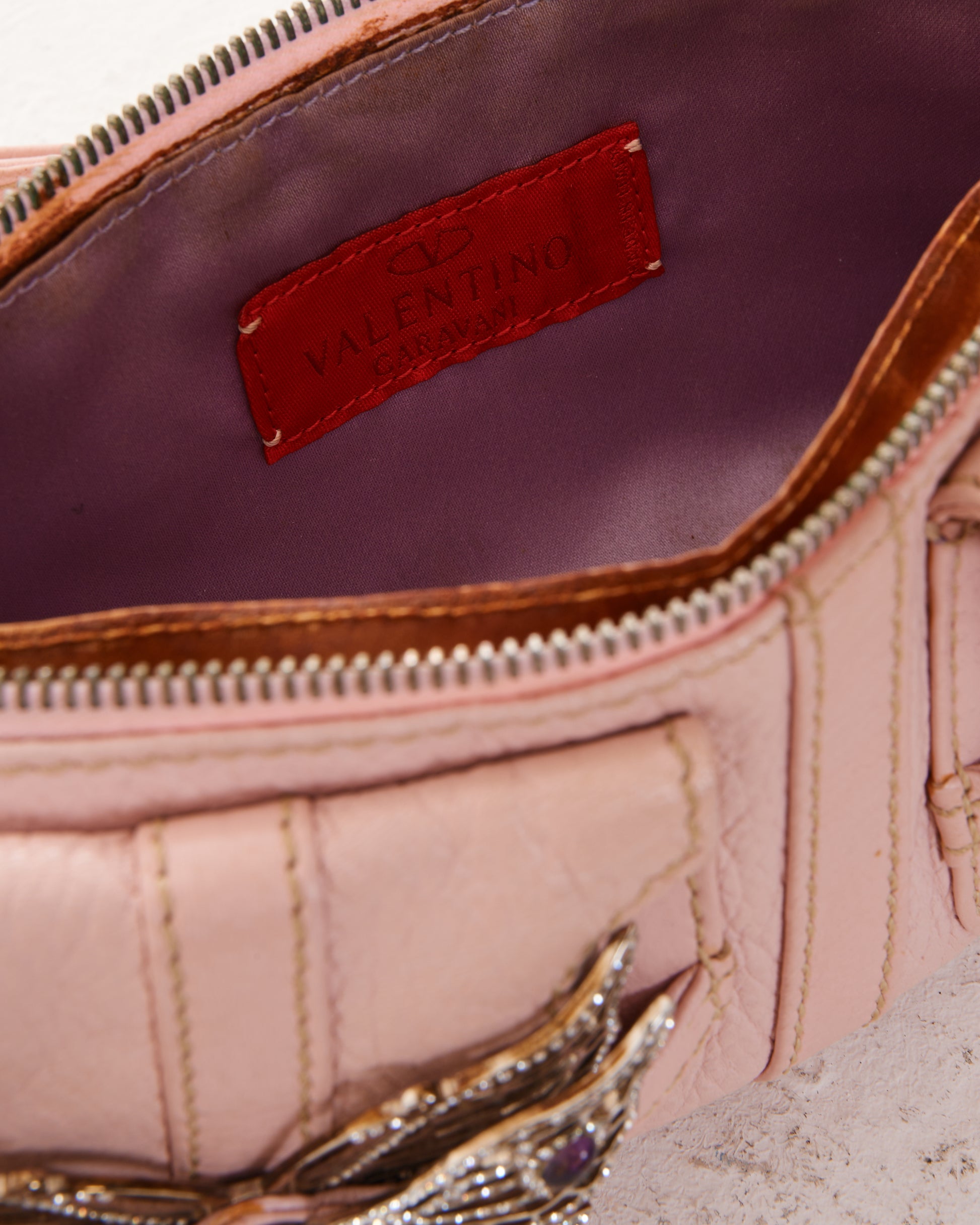 - It has its own original linen champagne-colored pouchette with the red Valentino silk label