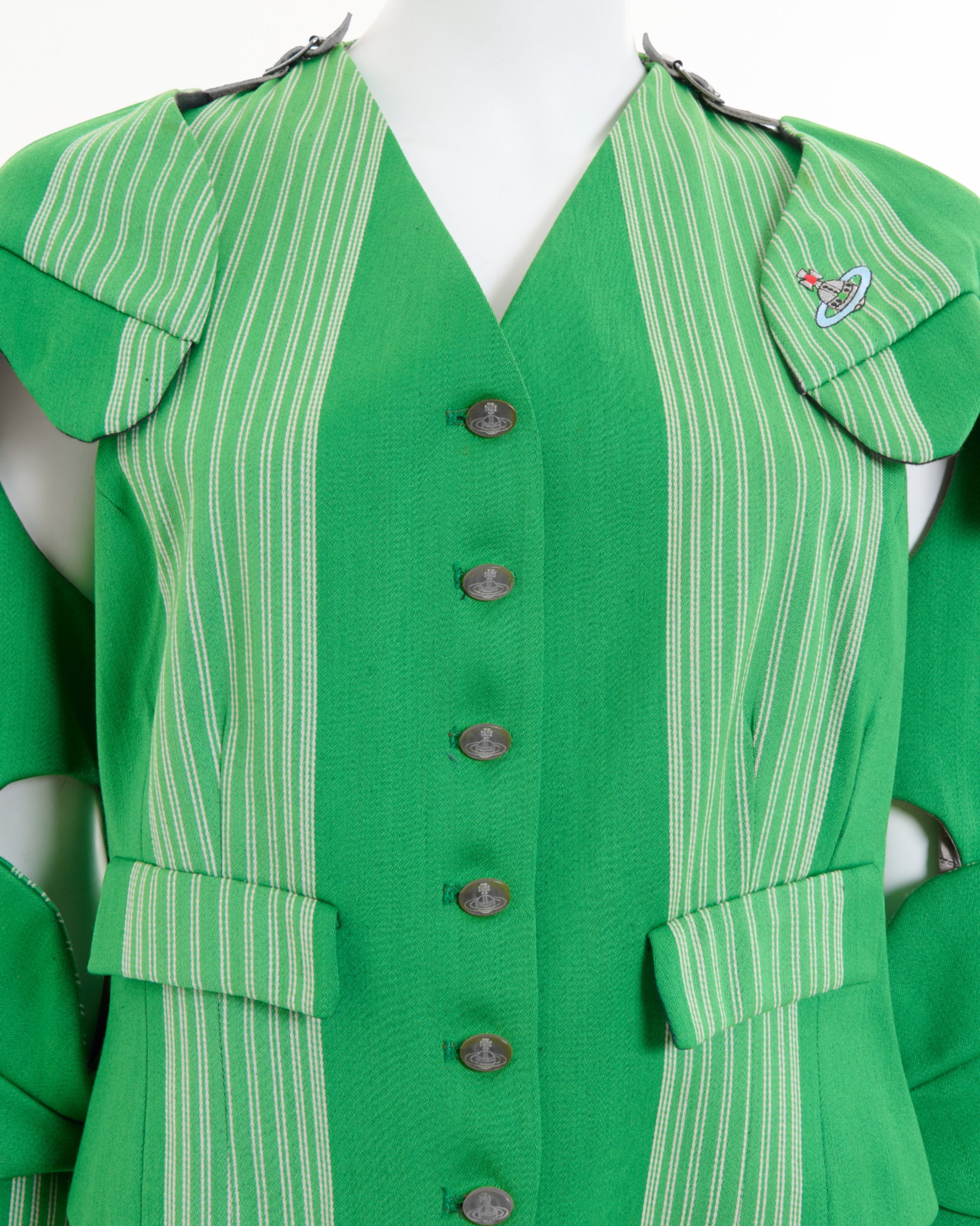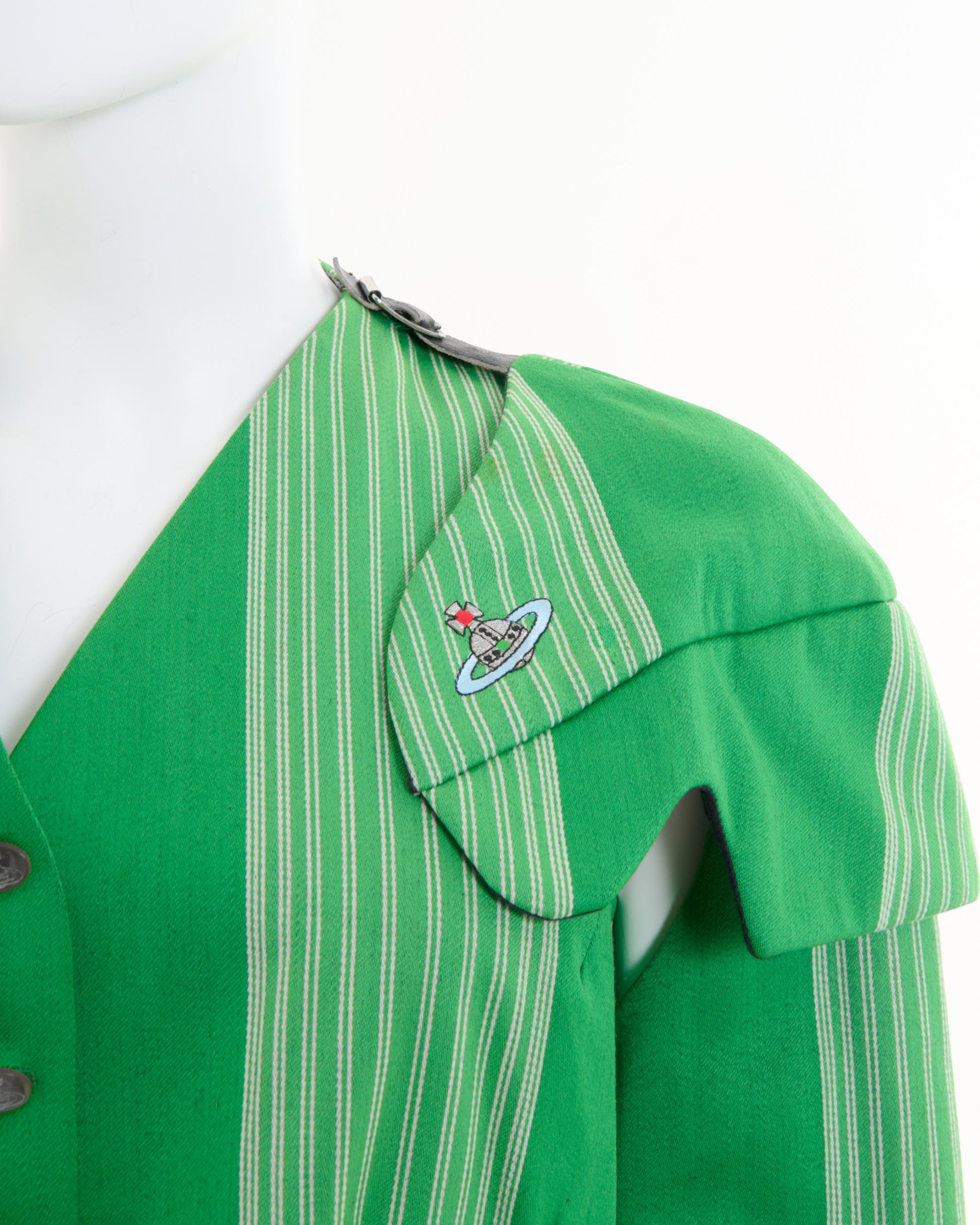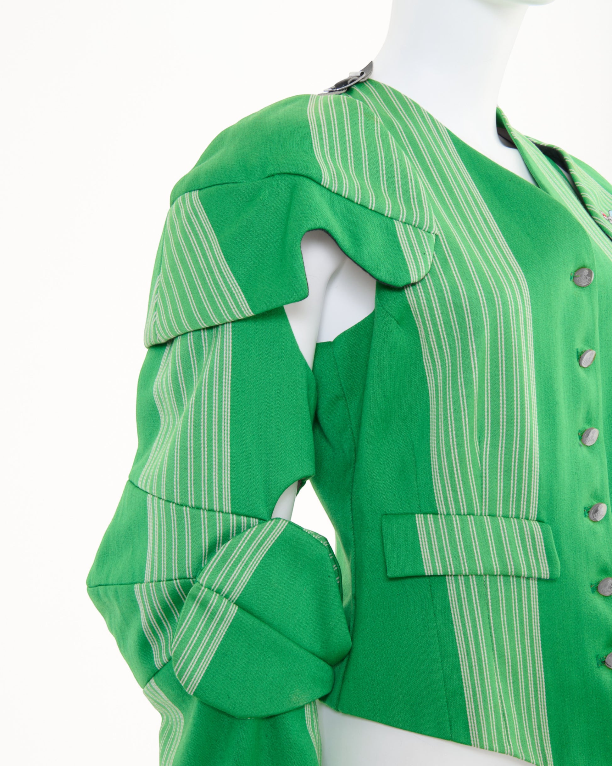 - A Rare Vintage Vivienne Westwood Green Striped Armour Jacket